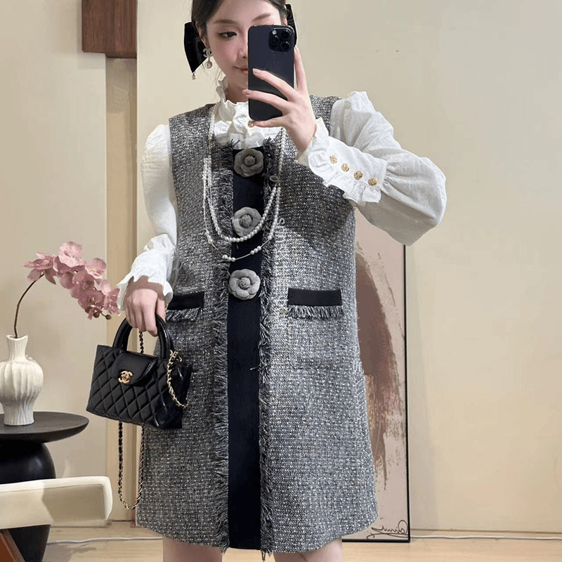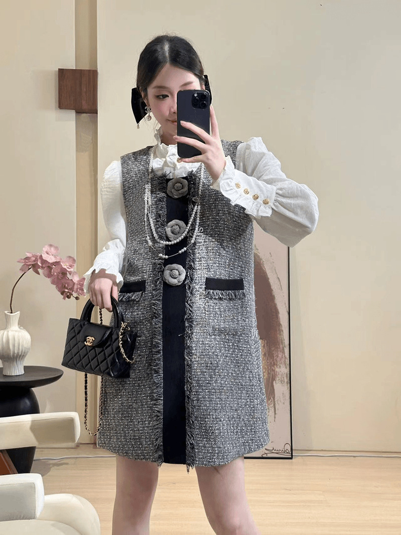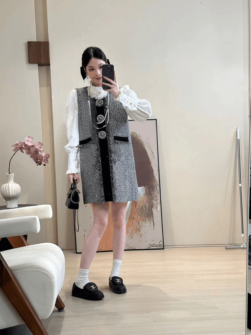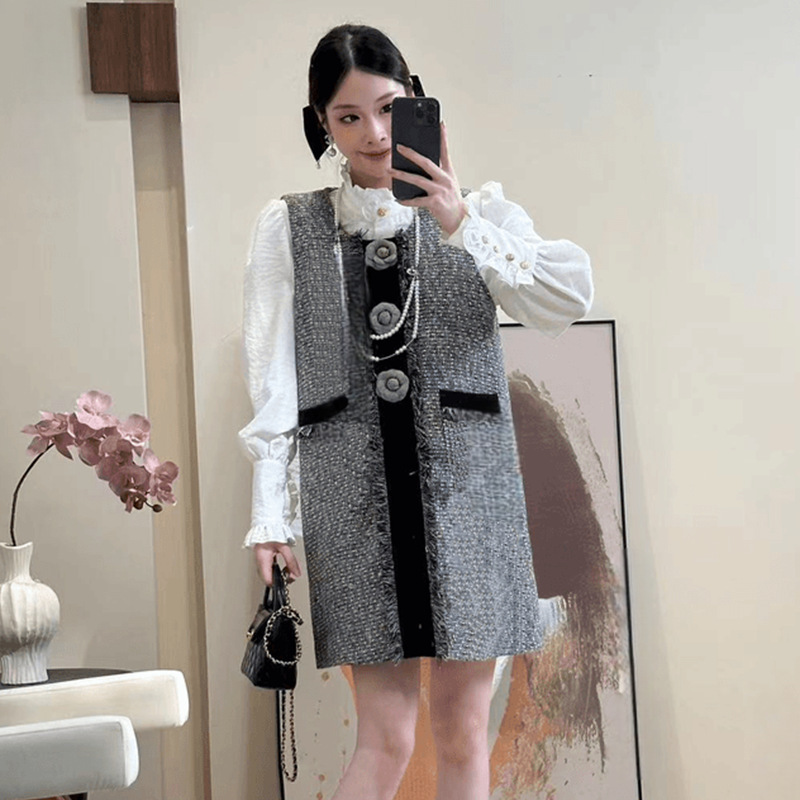 *o-ha-you*【FLKDYU500】羅馬假期直筒背心裙短裙白月光襯衣套裝小眾兩件套