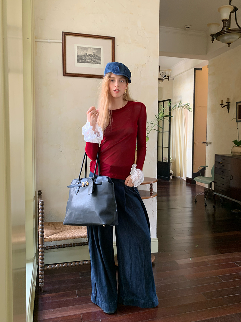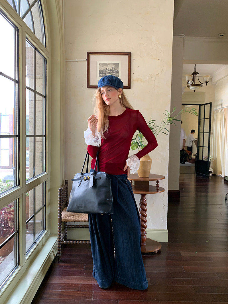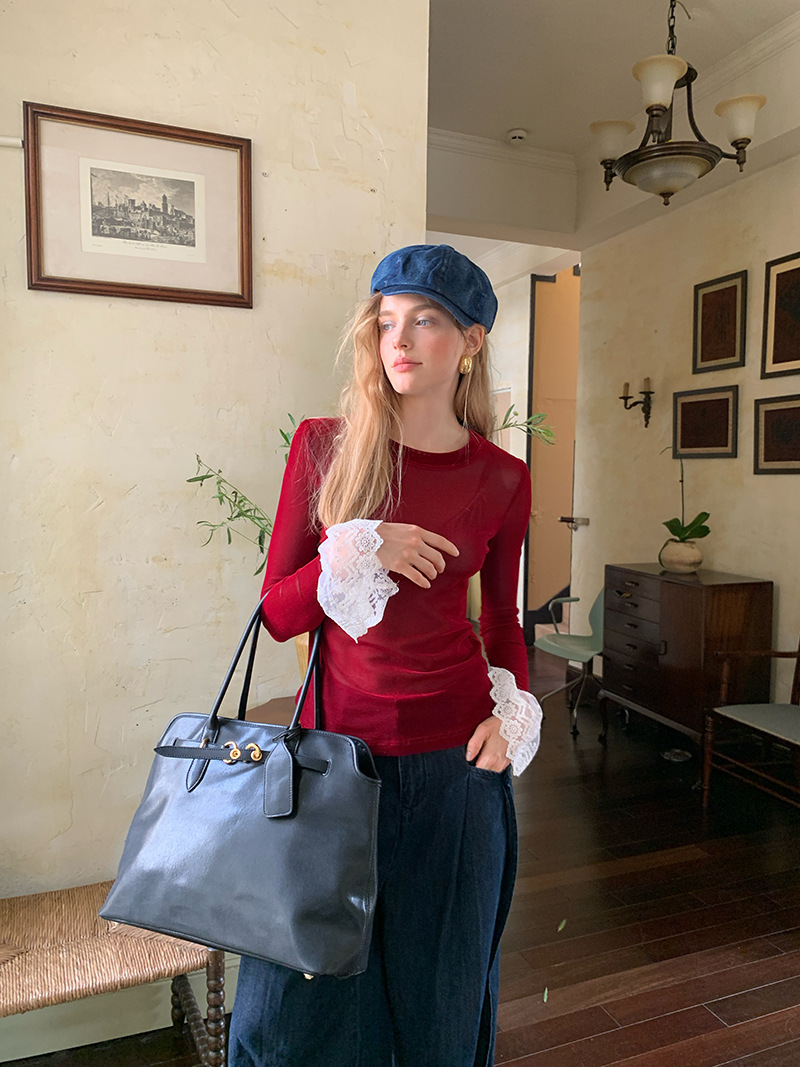*o-ha-you*【FLKDYU705】糖水日記上衣修身甜美公主百搭打底衫長袖棉質T恤秋季ins-2色