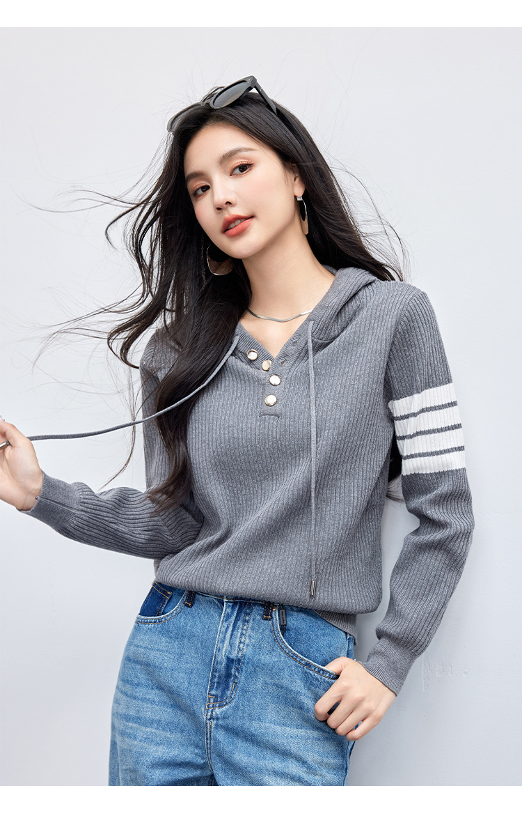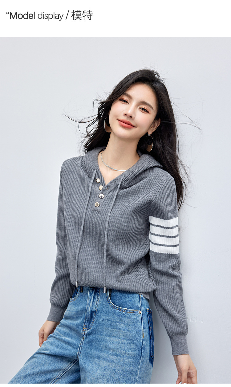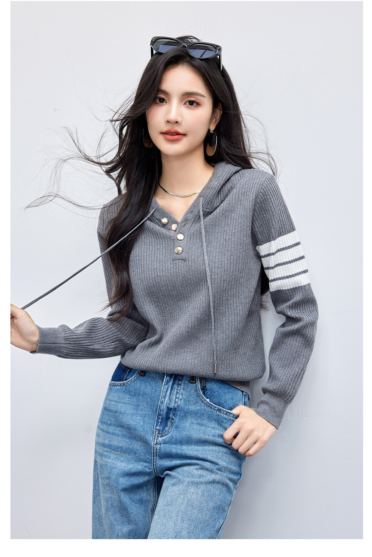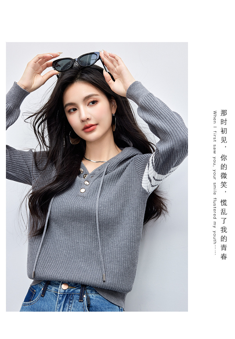 *o-ha-you*【FLKG00201】秋季新款半開鈕扣連帽舒適羊毛針織打底衫