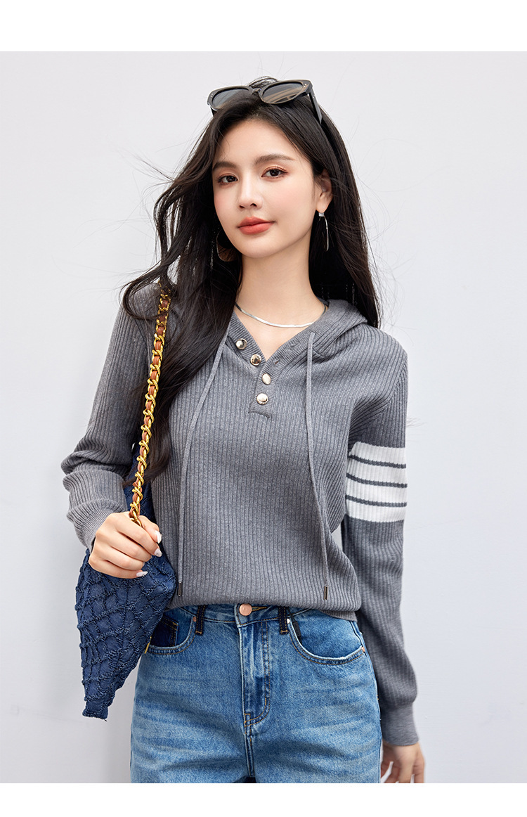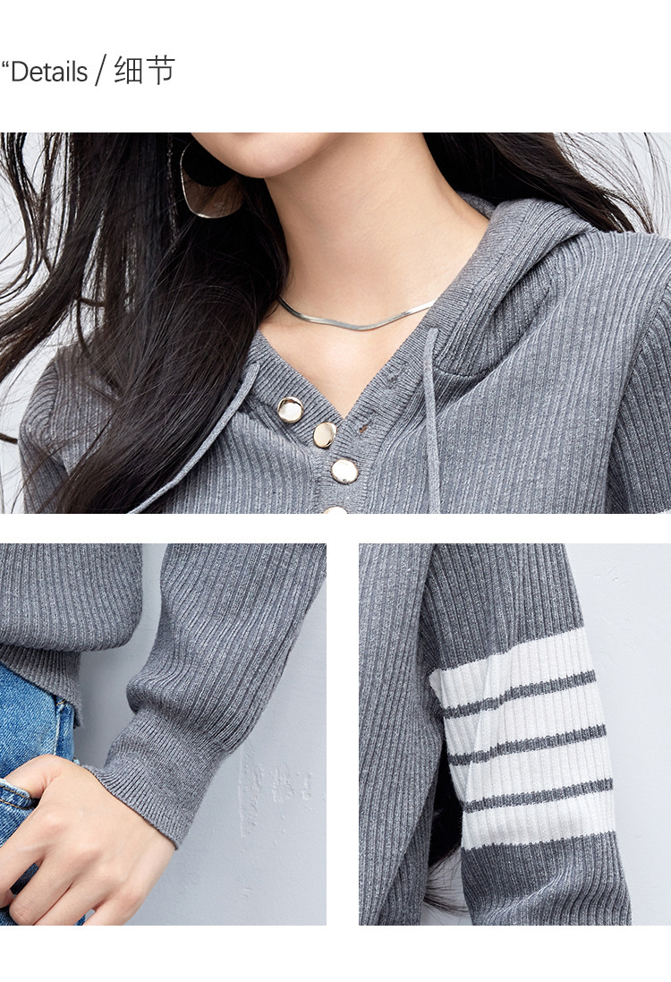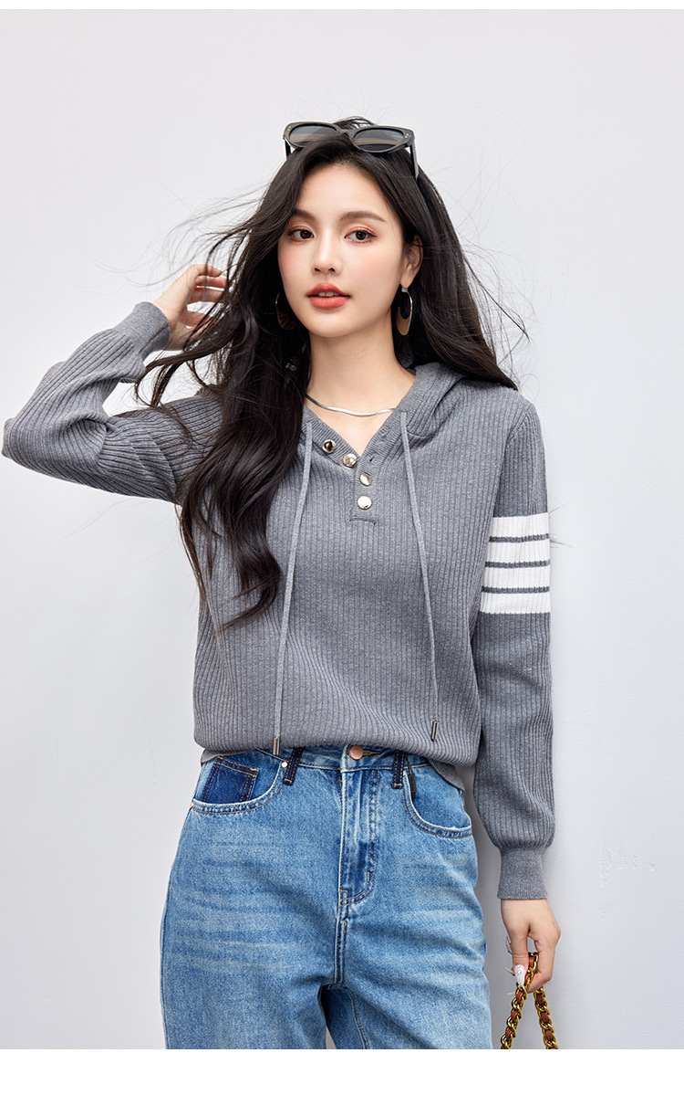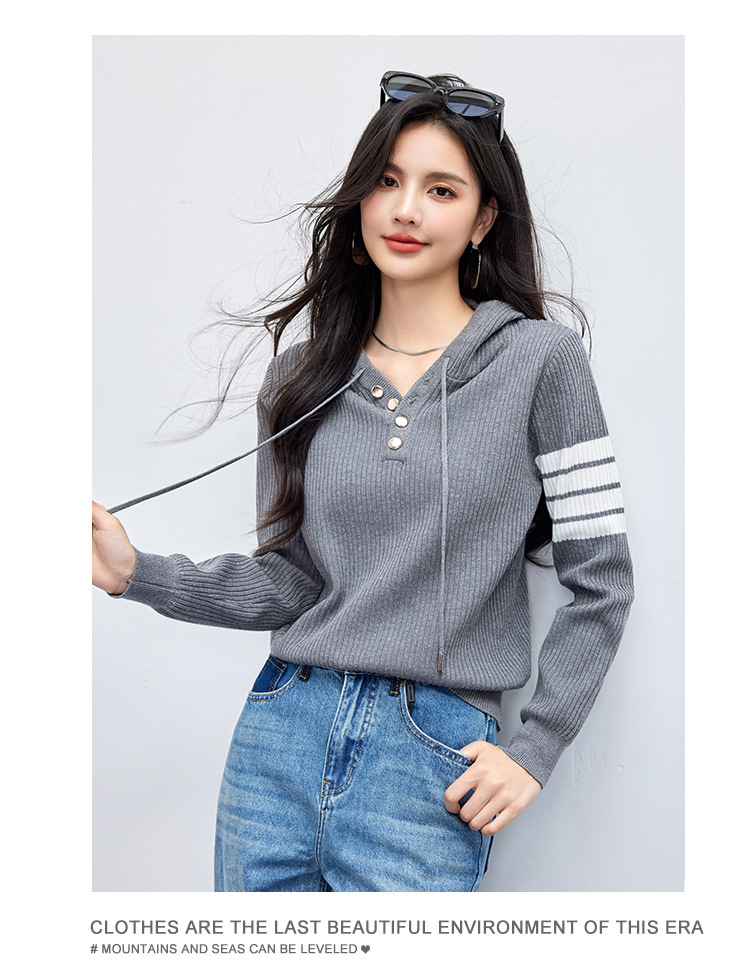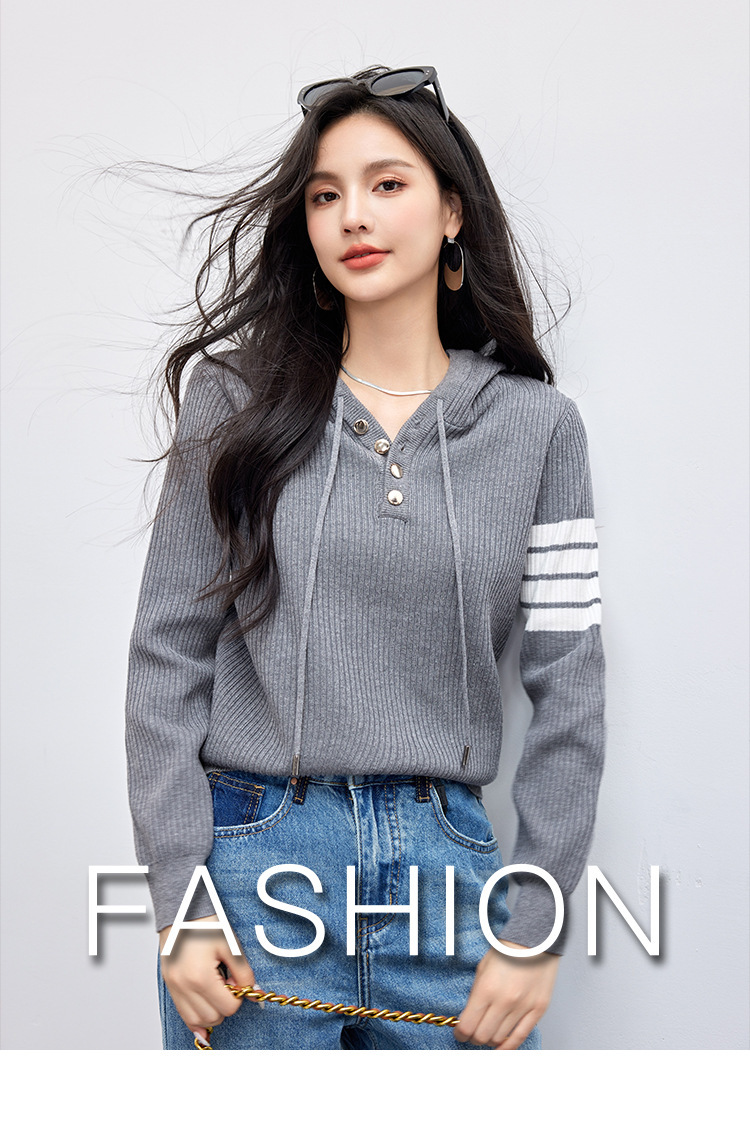 *o-ha-you*【FLKG00201】秋季新款半開鈕扣連帽舒適羊毛針織打底衫