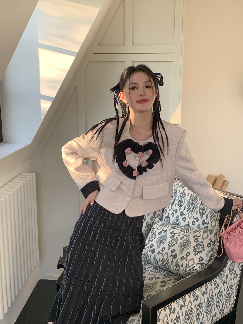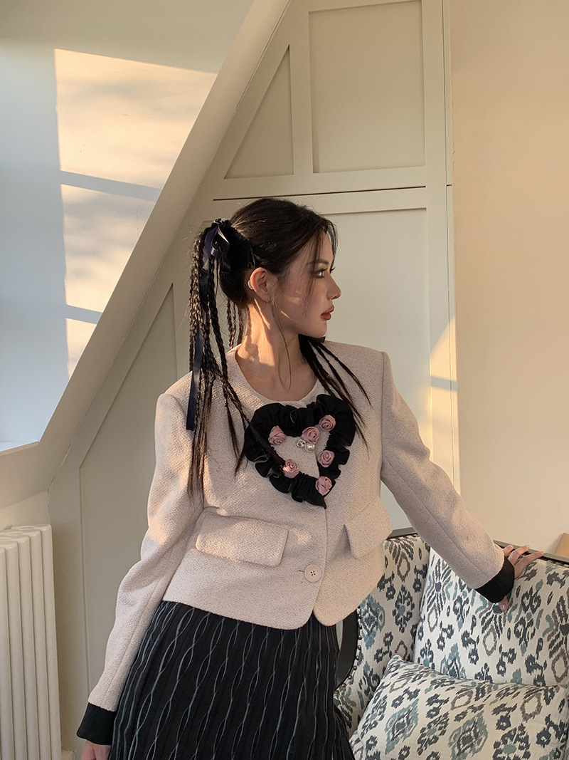 *o-ha-you*【FLKM08040】秋季外套荷葉邊立體花朵愛心外套2023小眾甜美少女上衣