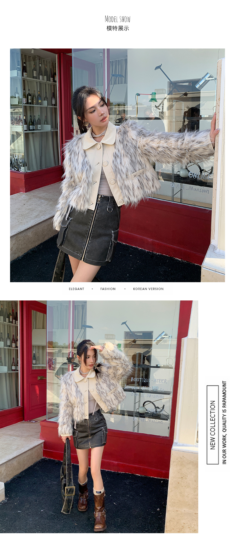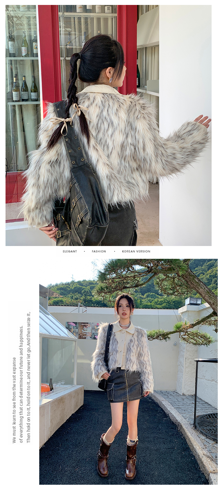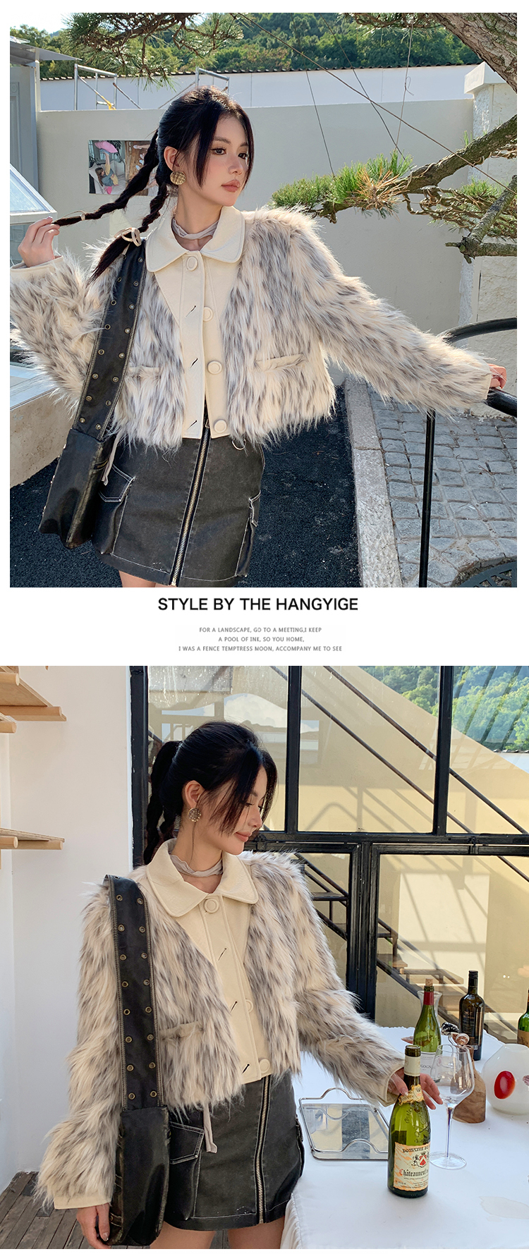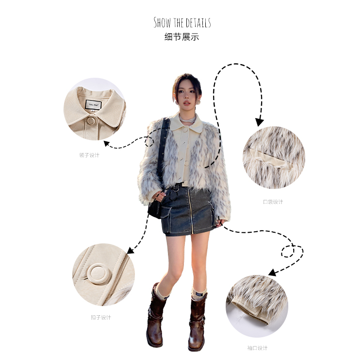 *o-ha-you*【FLKM10619】冬季質感皮毛一體暈染工藝短款環保皮草毛毛外套