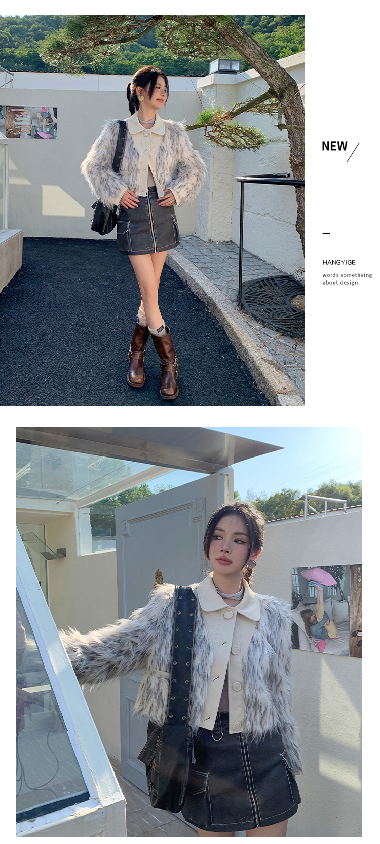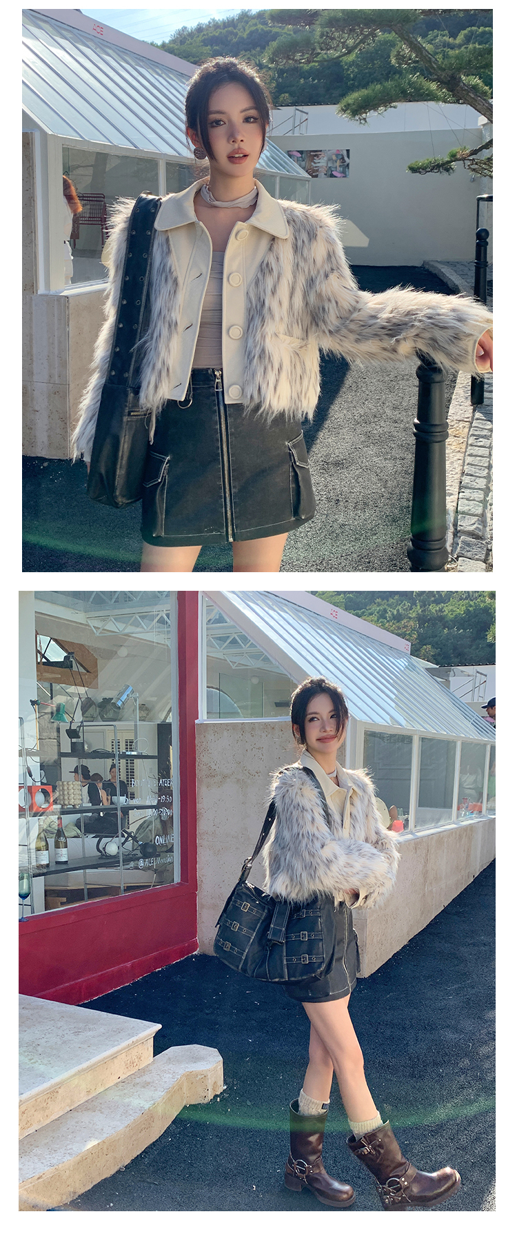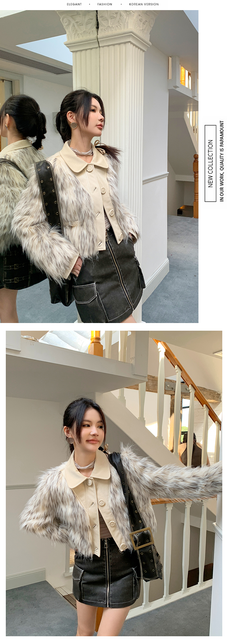 *o-ha-you*【FLKM10619】冬季質感皮毛一體暈染工藝短款環保皮草毛毛外套