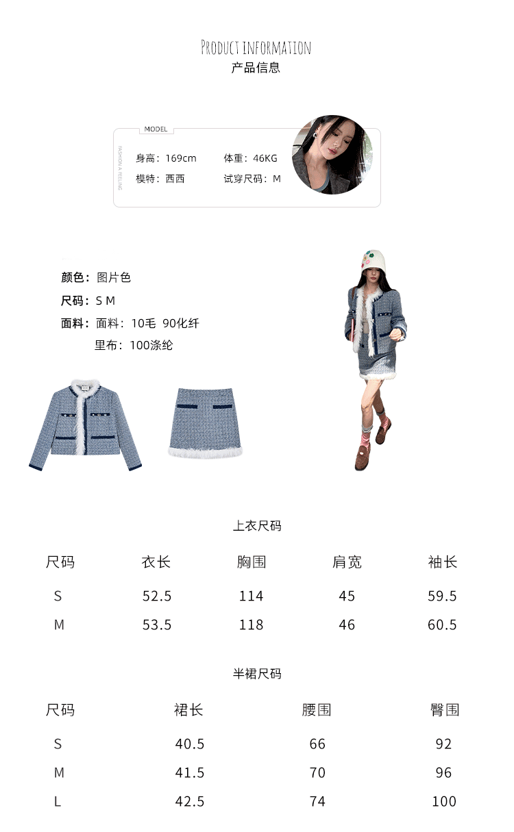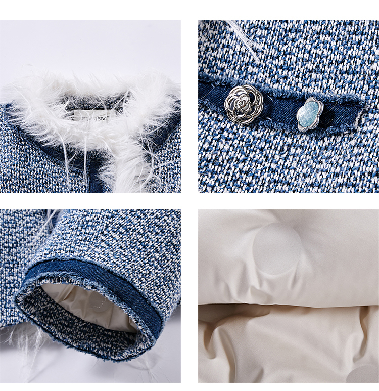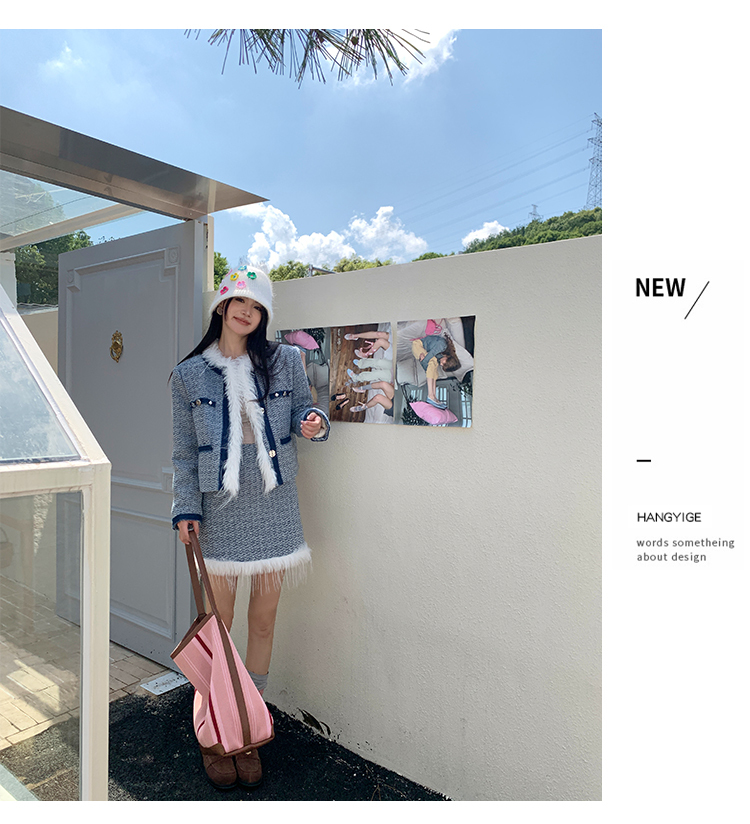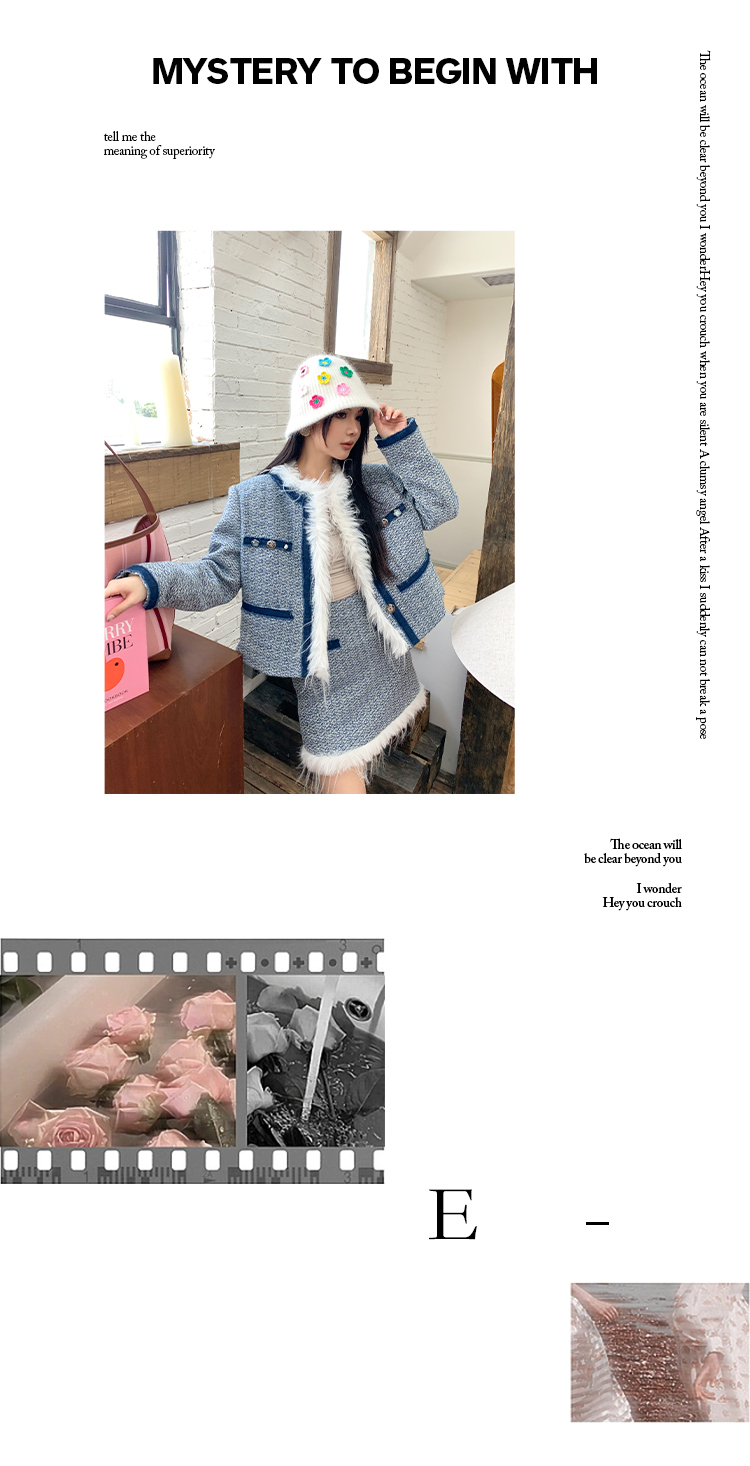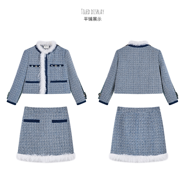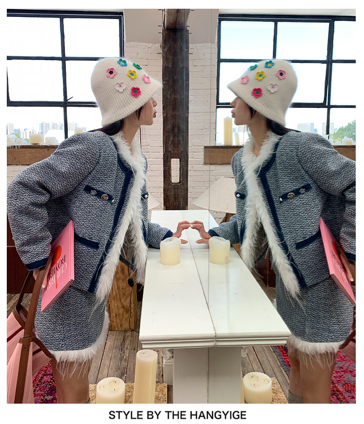 *o-ha-you*【FLKM10637】復古法師冬毛領小香粗花呢羽絨外套高腰半身裙套裝