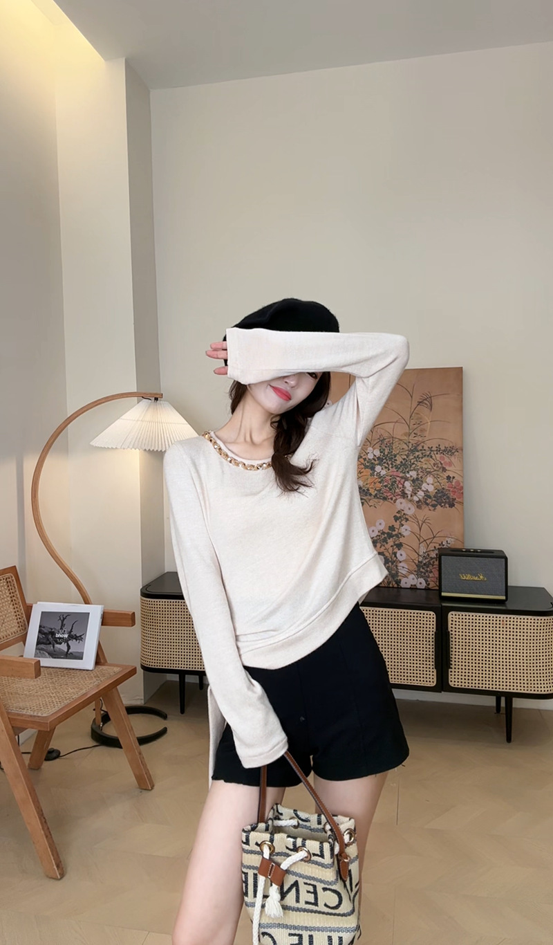 *o-ha-you*【FLKN0037】隨性鬆弛打底衫秋季新款百搭彈性純色上衣小眾設計