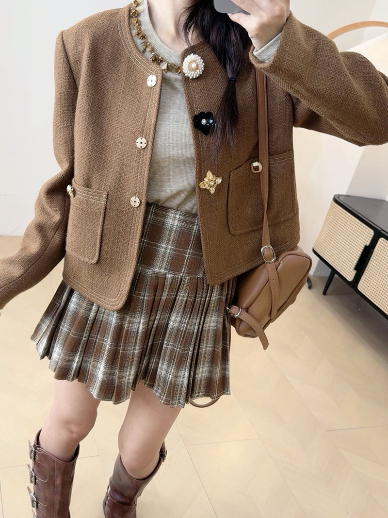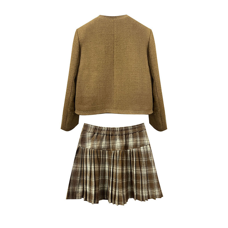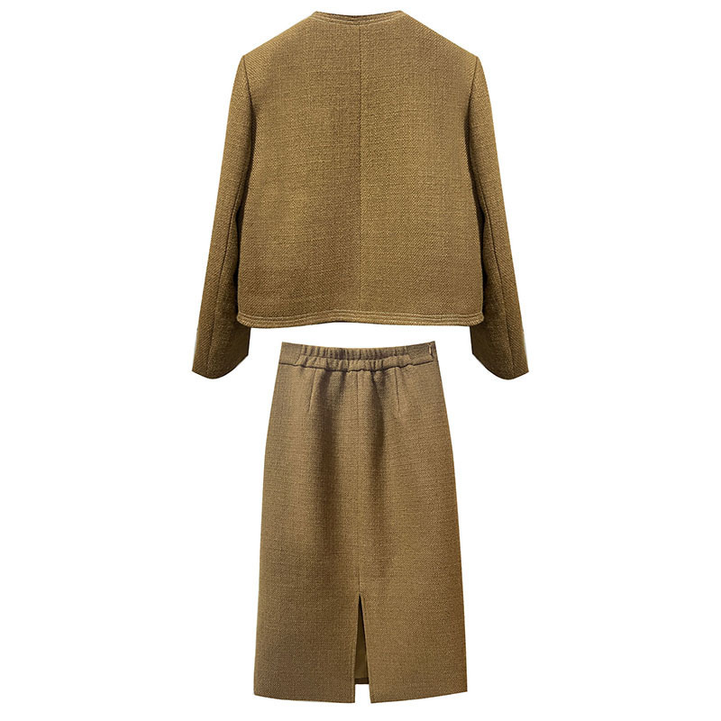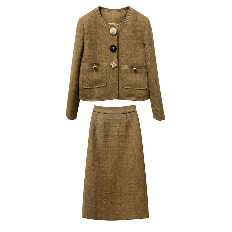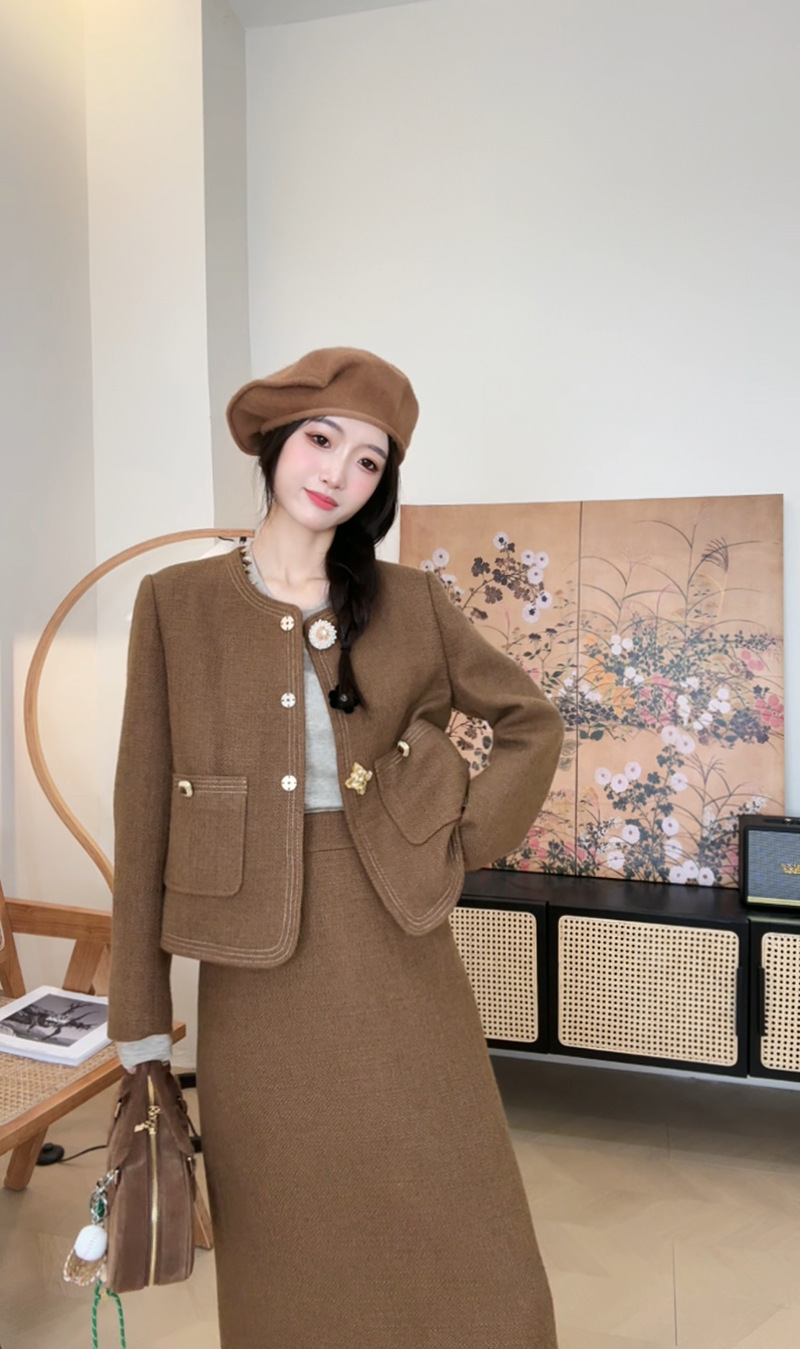 *o-ha-you*【FLKN0080】夢境交錯套裝復古咖色顯白小眾設計感半身裙兩件套秋季新款
