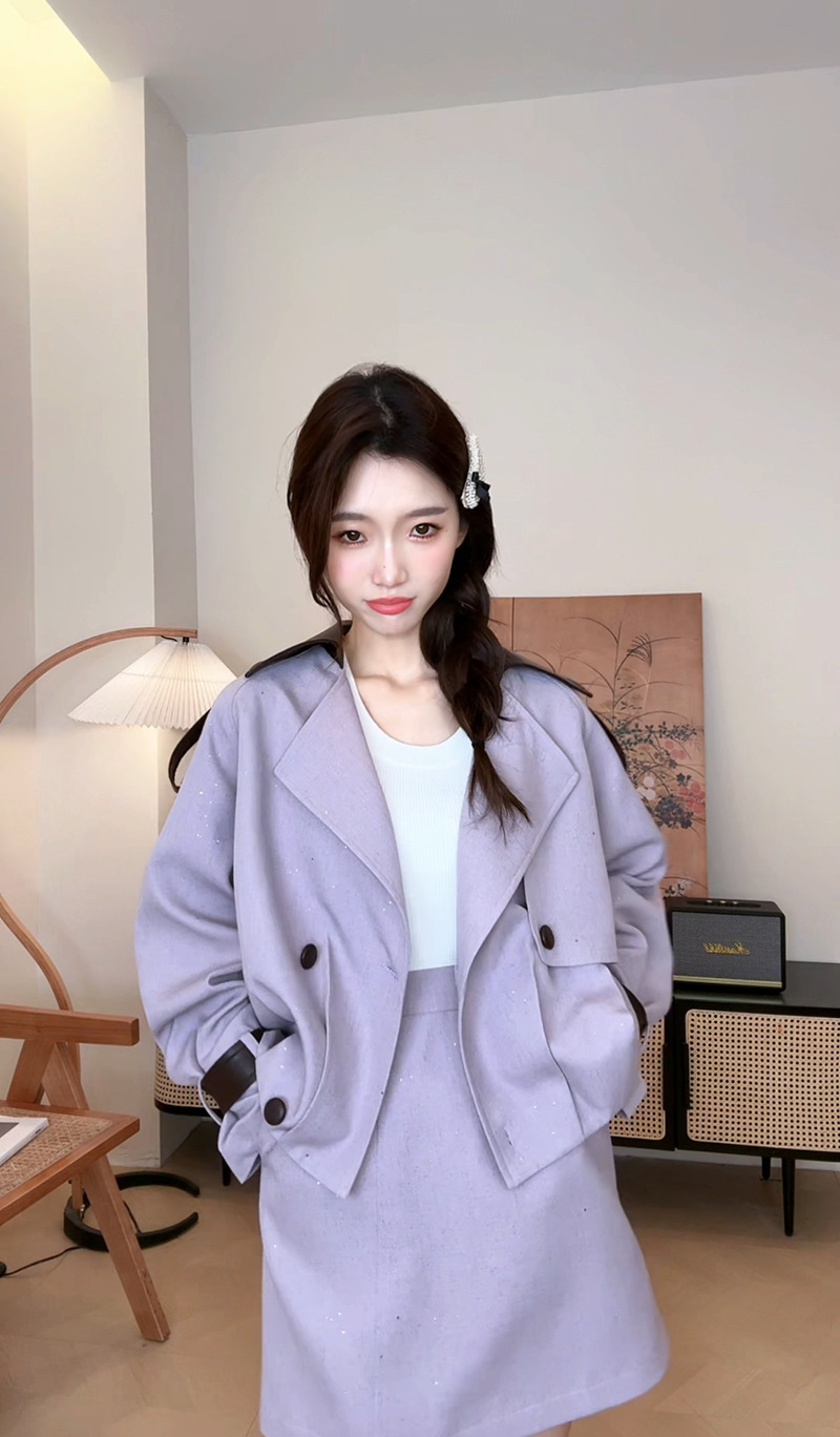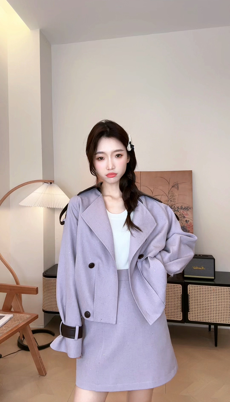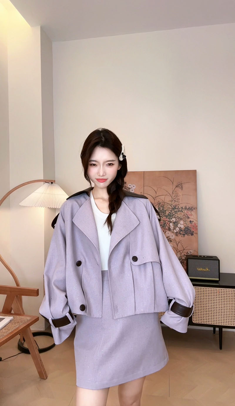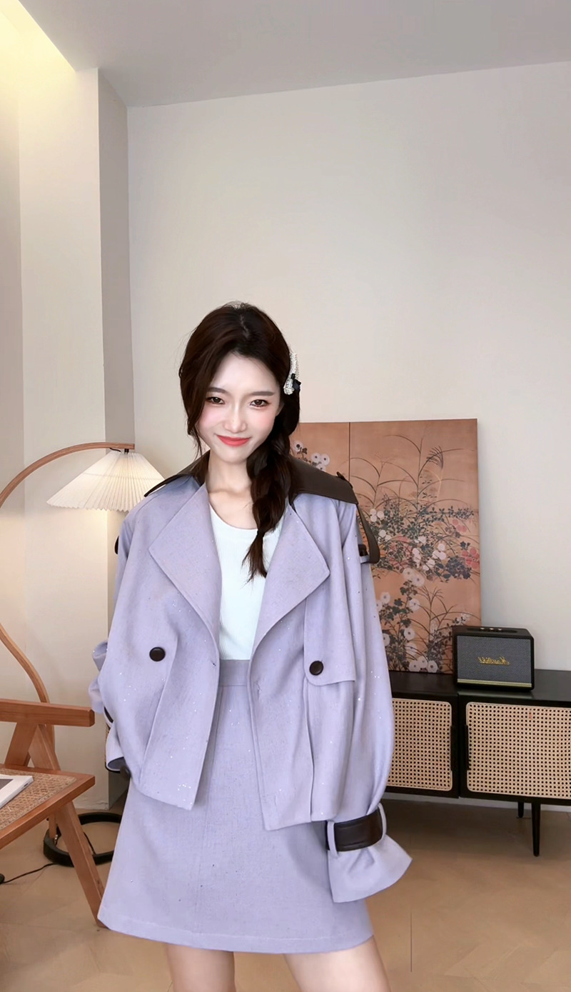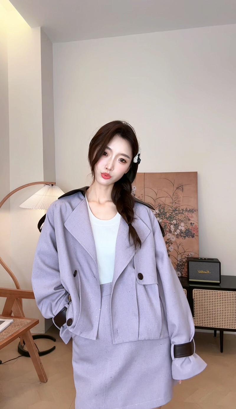*o-ha-you*【FLKN00903】北島套裝紫色皮衣半身短裙西裝外套長袖小眾設計感秋季