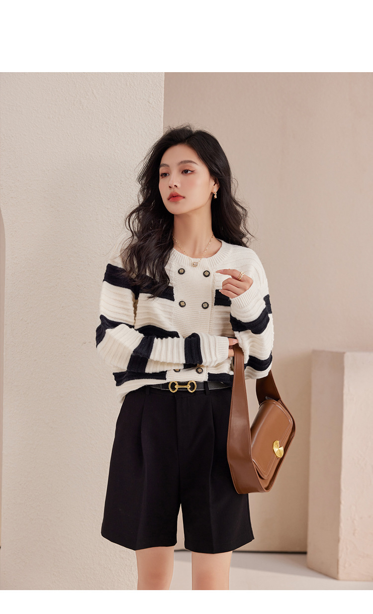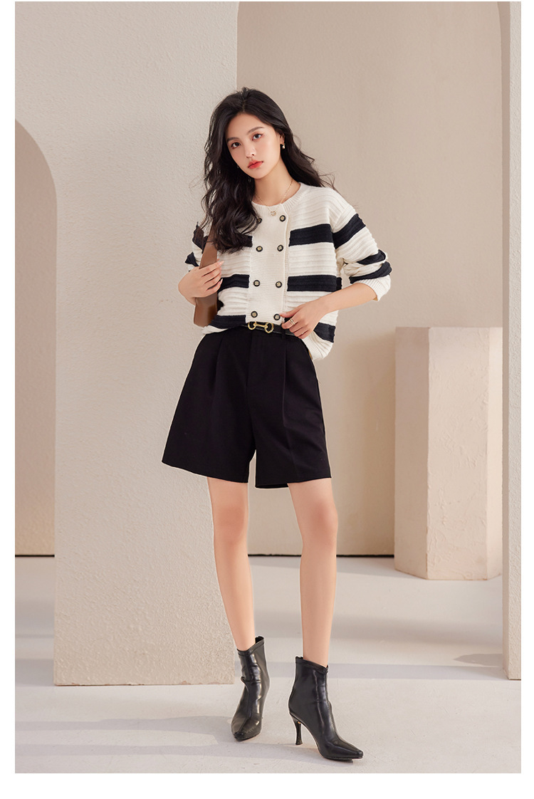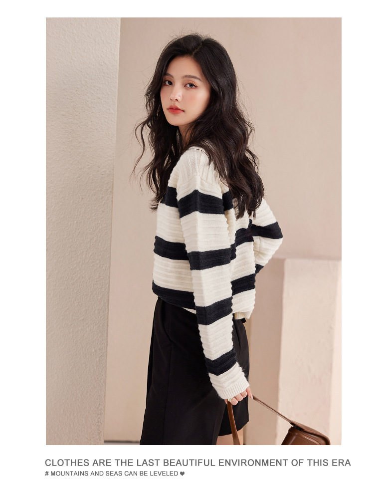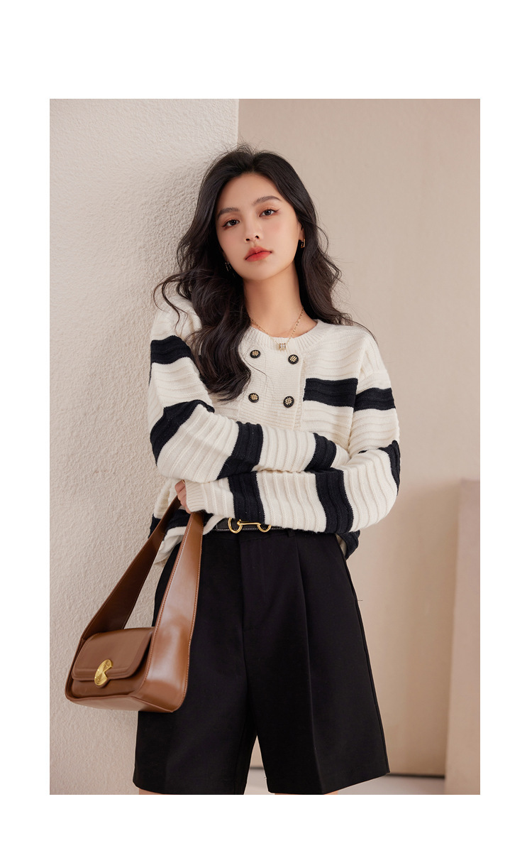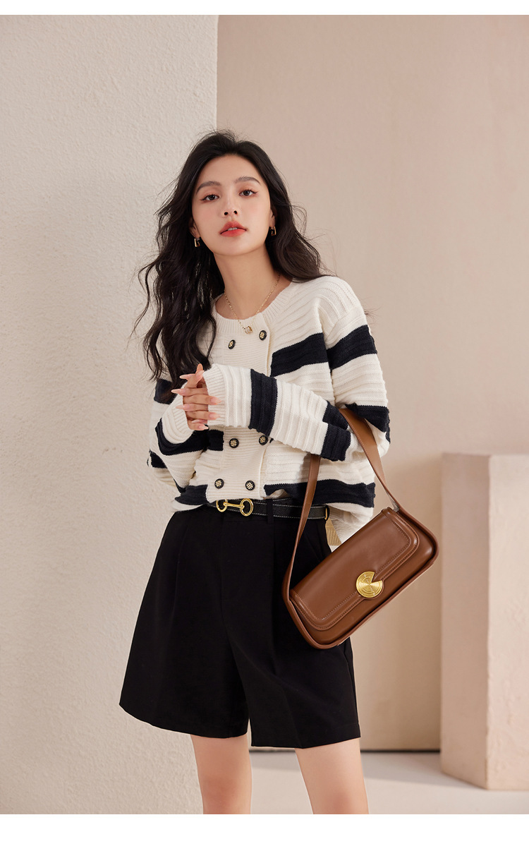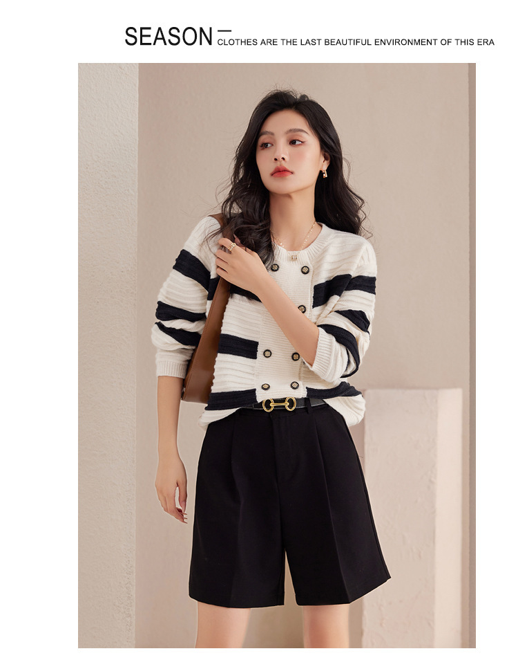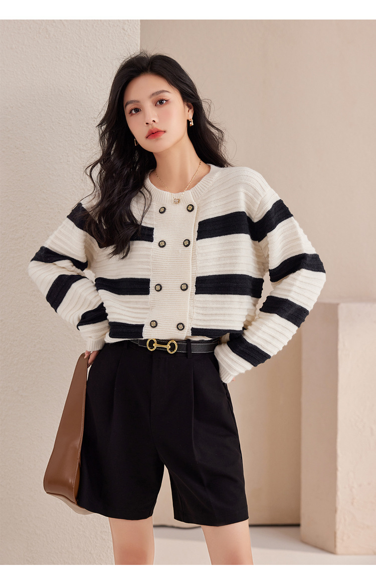 *o-ha-you*【FLKO30105】秋法式名媛小香風撞色條紋溜肩針織開襟衫優雅上衣外穿外套