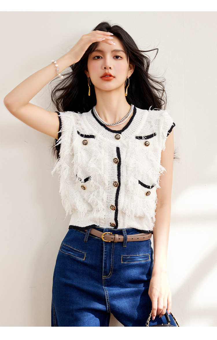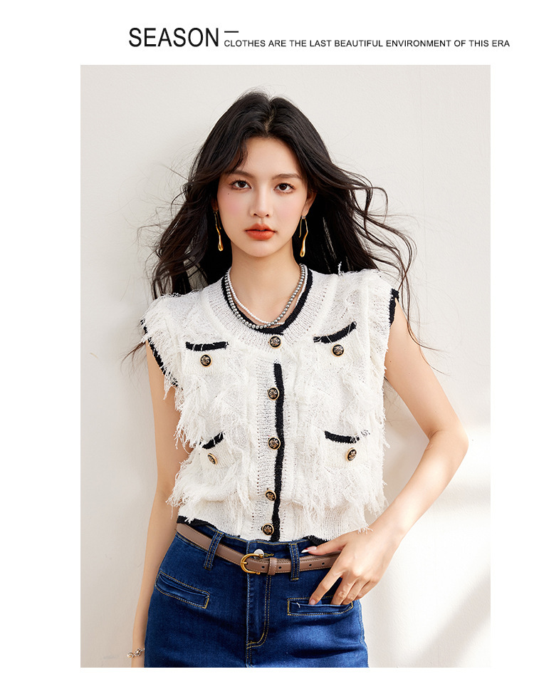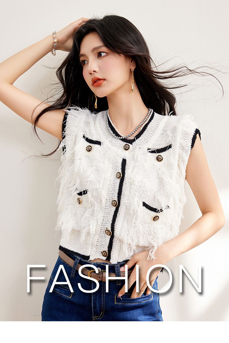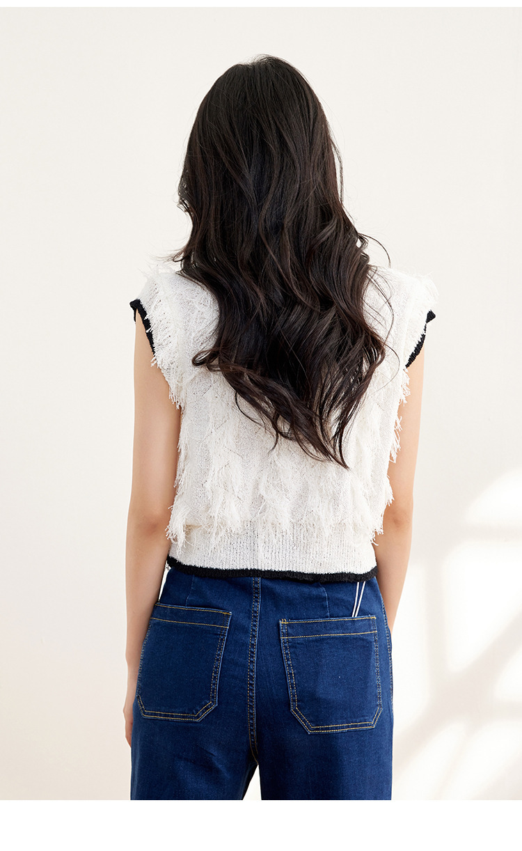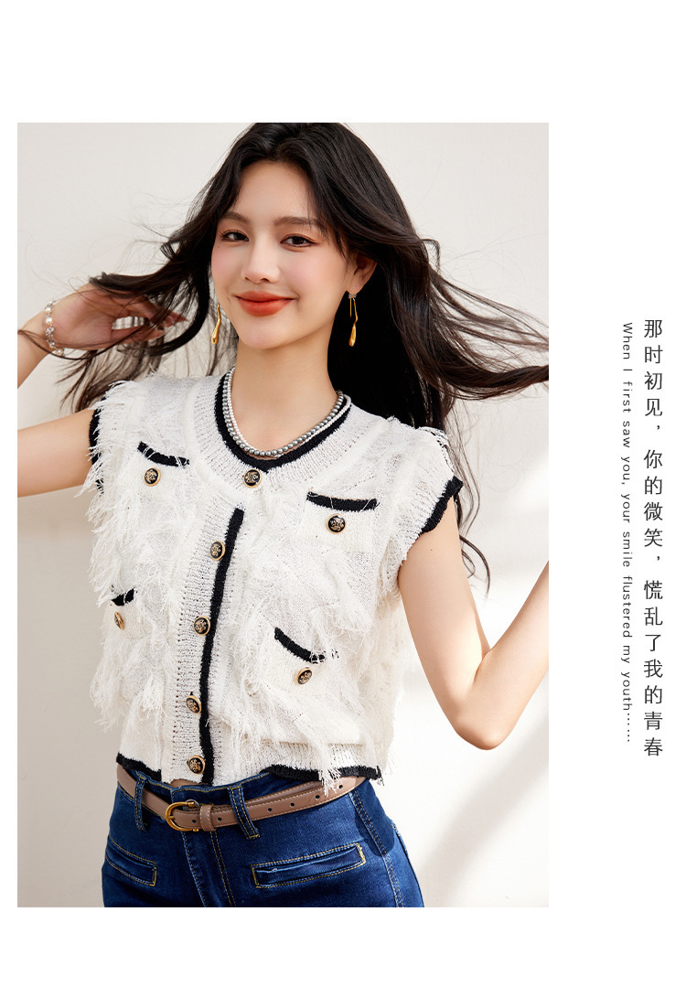 *o-ha-you*【FLKO30289】夏季法式名媛小香風貴婦毛毛流蘇設計感小個子無袖上衣