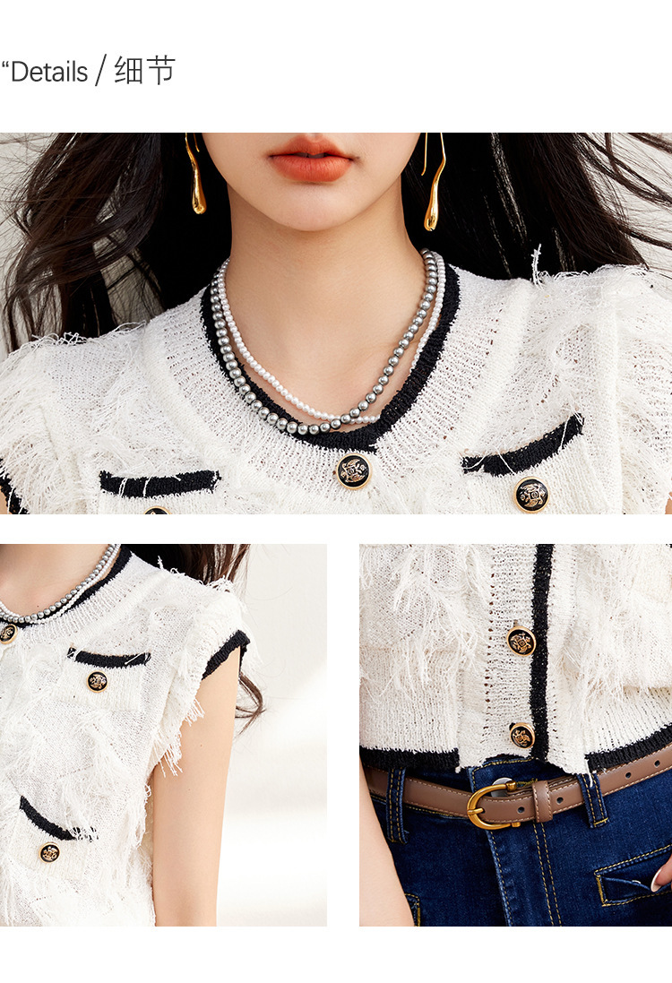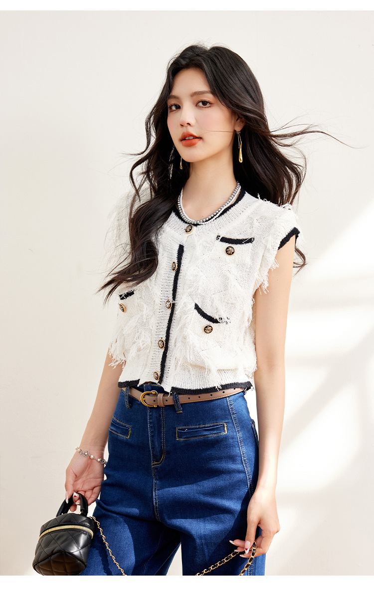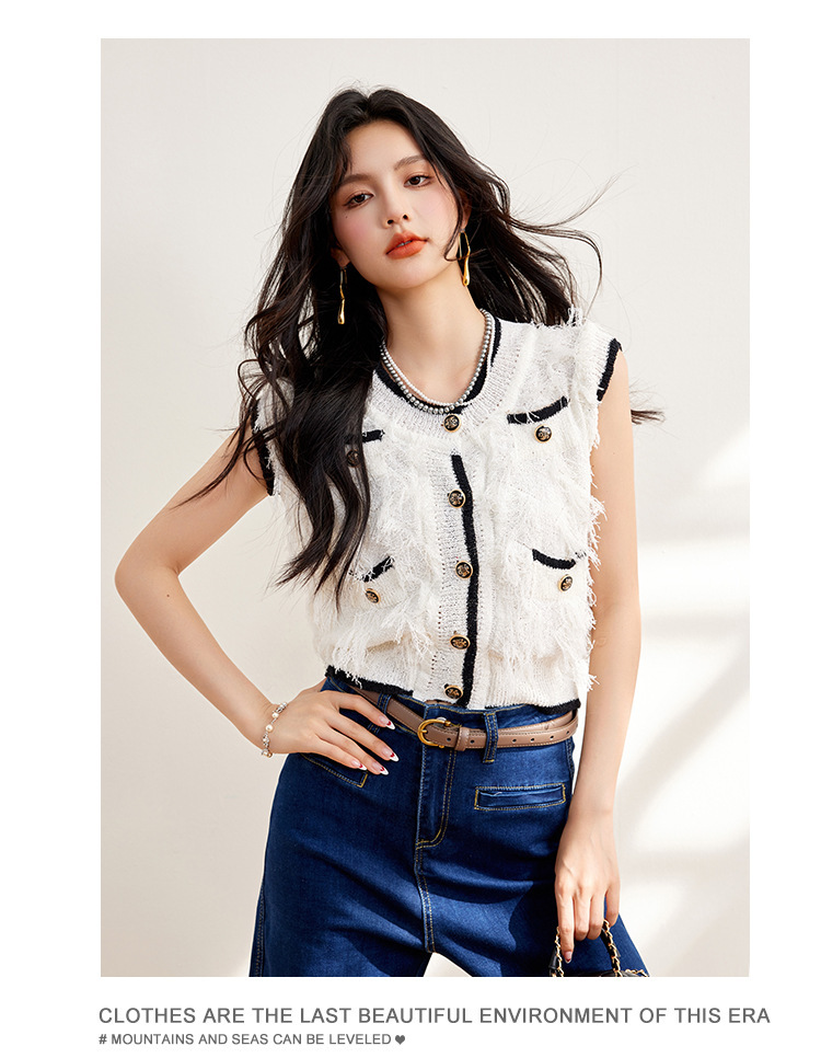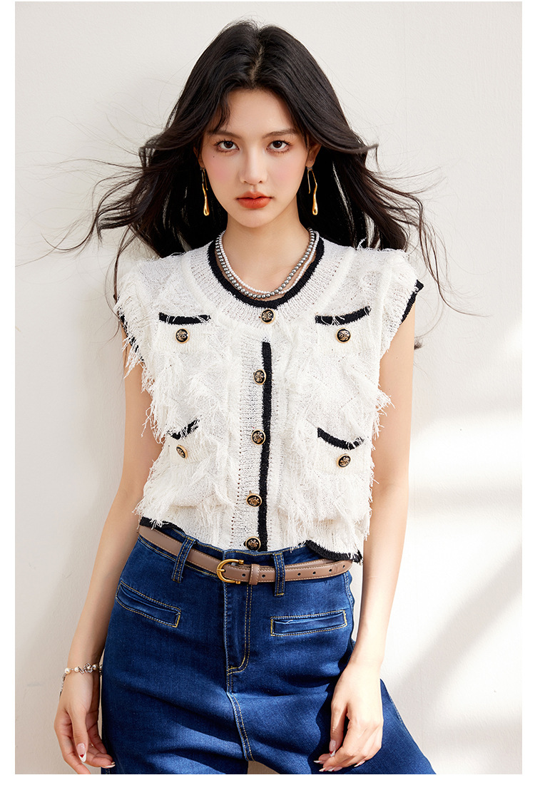 *o-ha-you*【FLKO30289】夏季法式名媛小香風貴婦毛毛流蘇設計感小個子無袖上衣