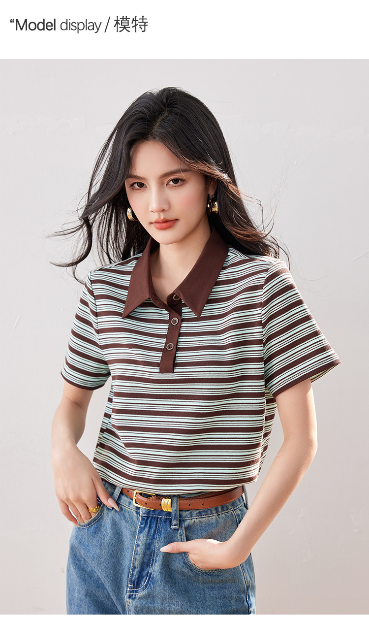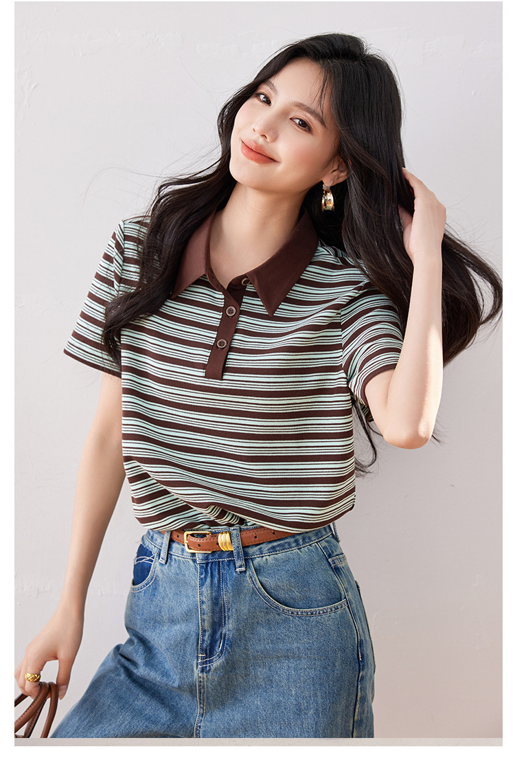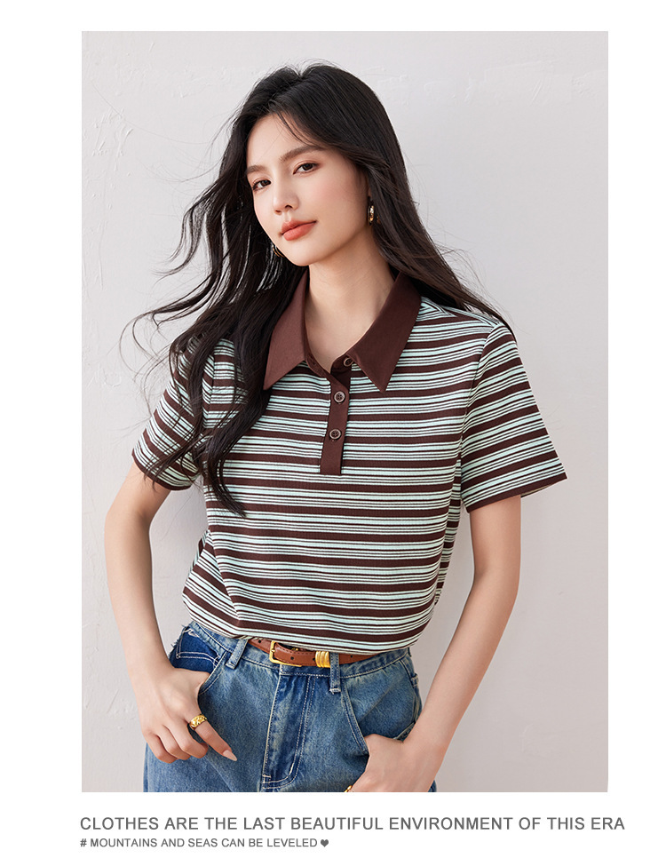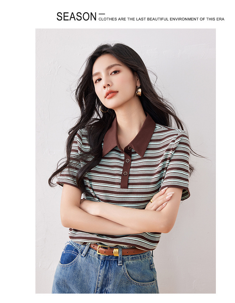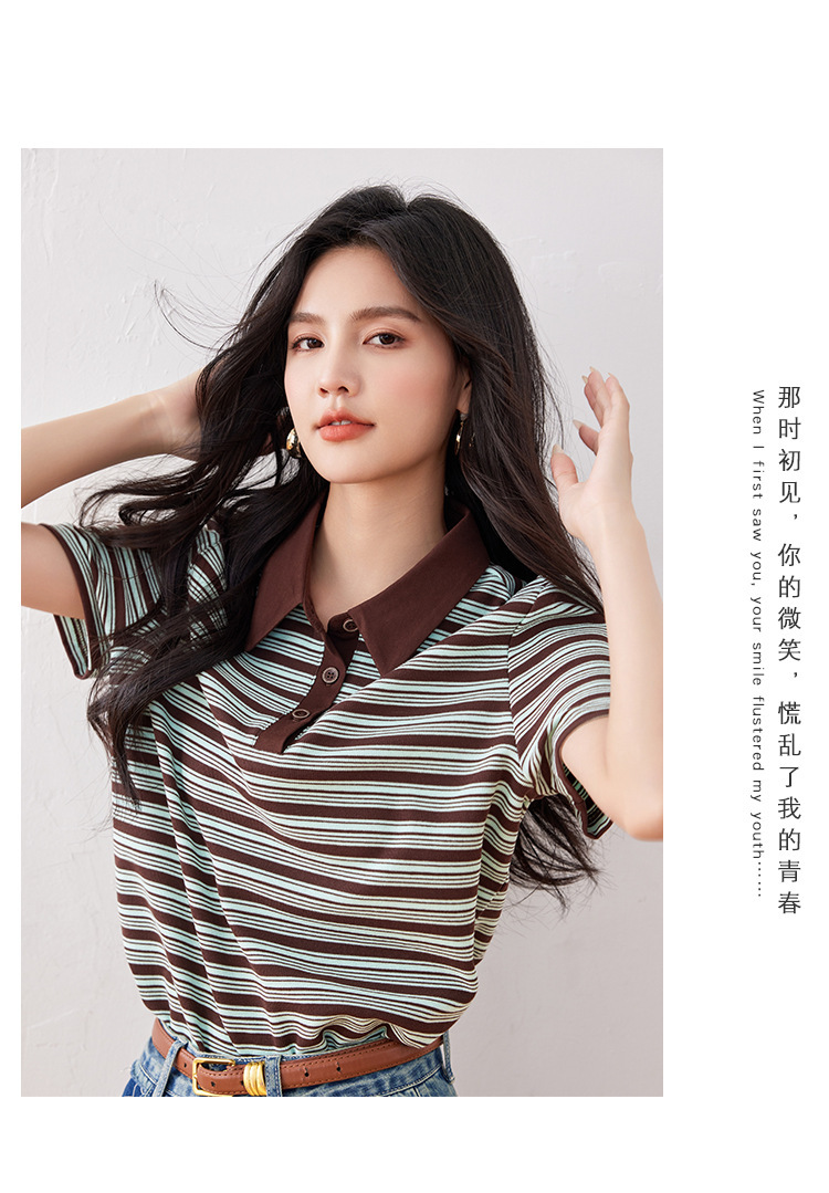 *o-ha-you*【FLKO30332】撞色小個子休閒百搭復古條紋Polo衫夏季款寬鬆T恤顯瘦ins