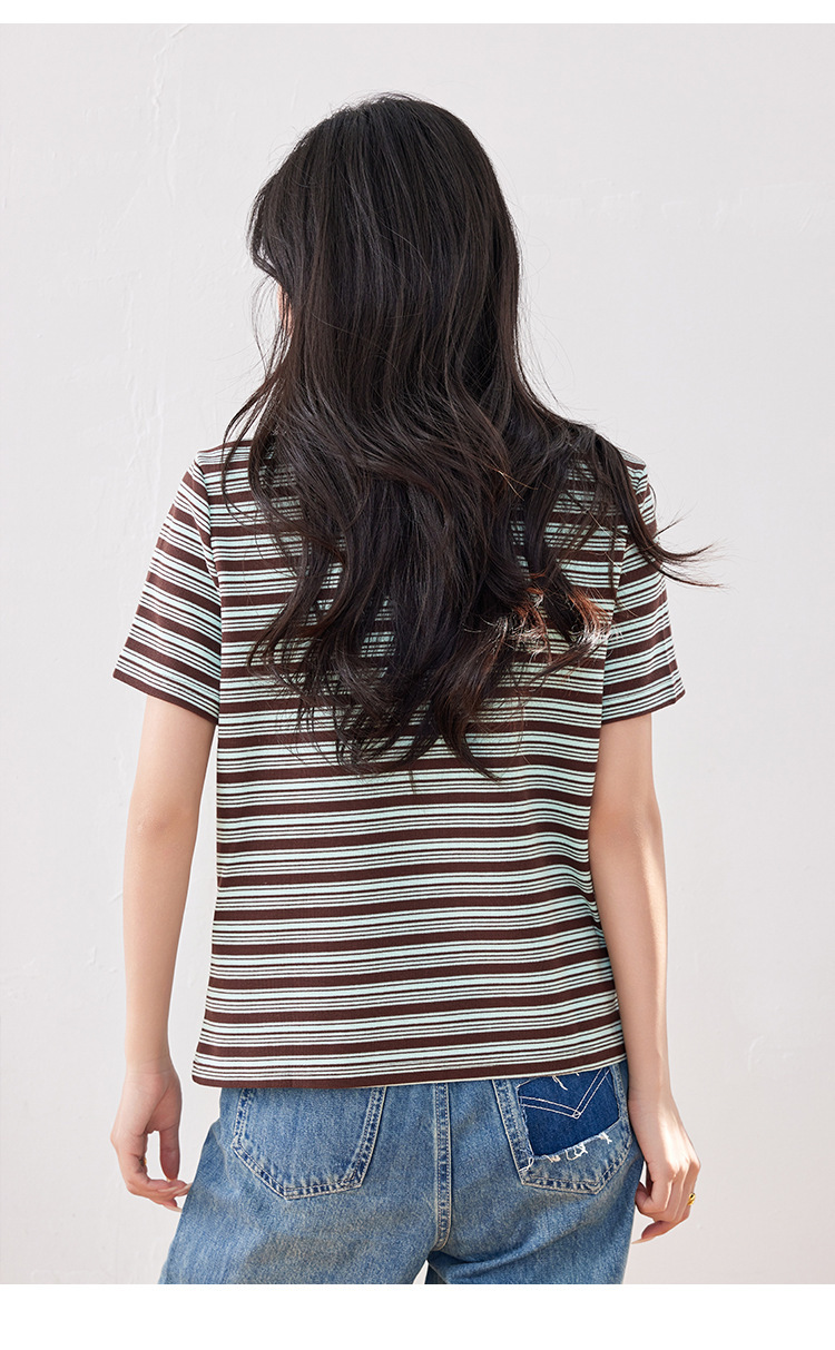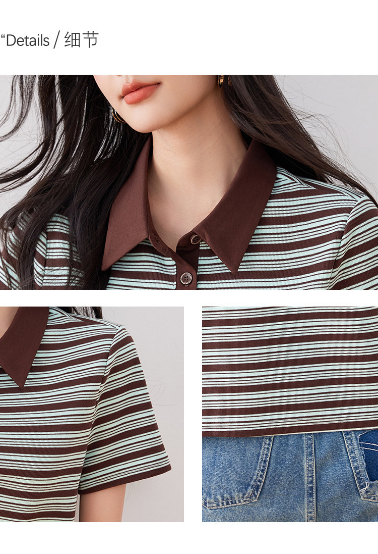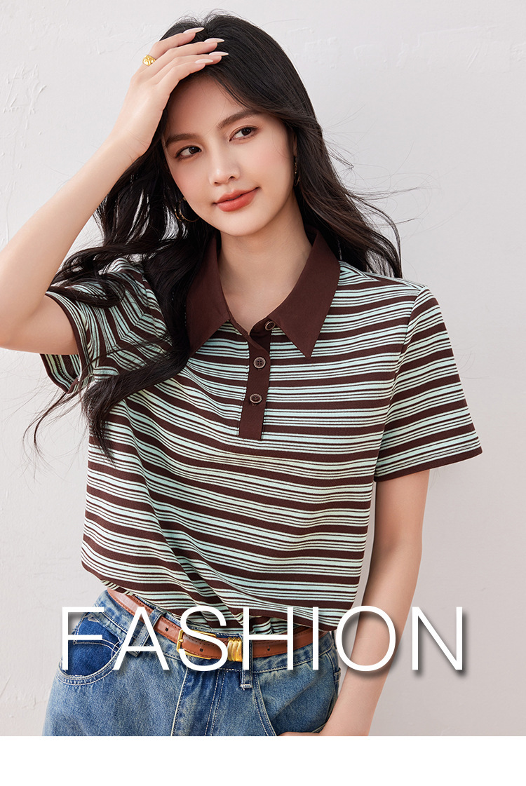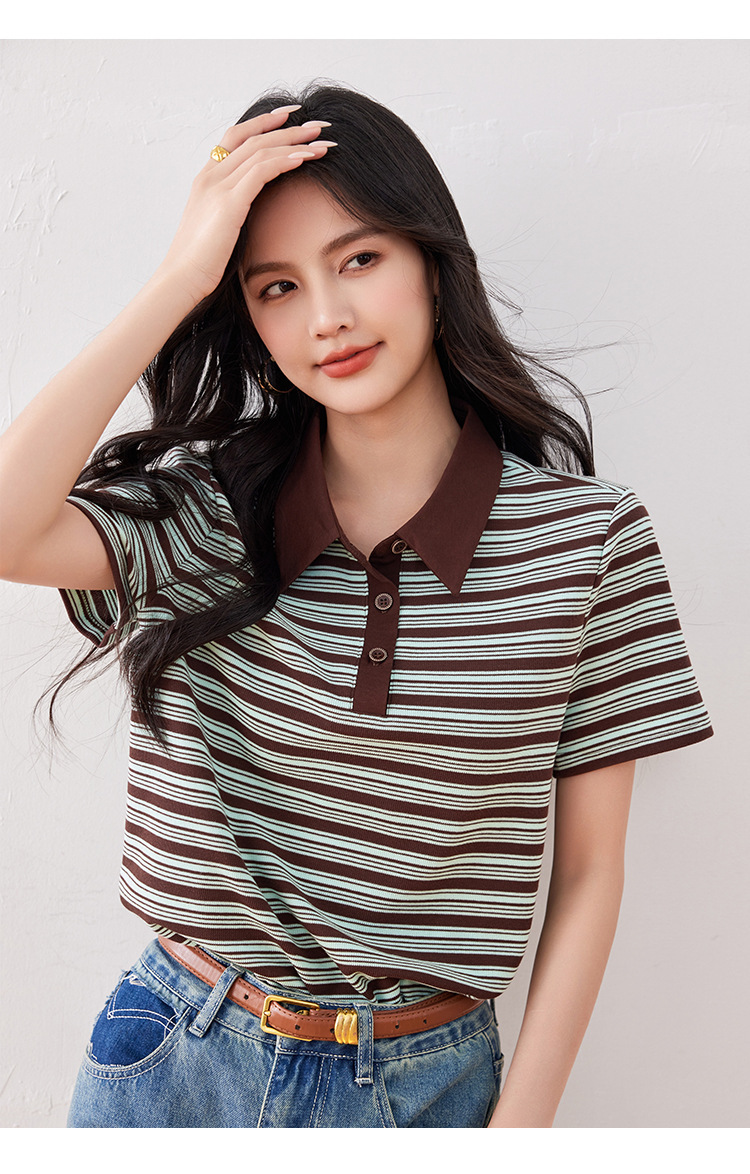 *o-ha-you*【FLKO30332】撞色小個子休閒百搭復古條紋Polo衫夏季款寬鬆T恤顯瘦ins