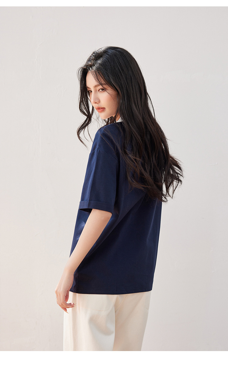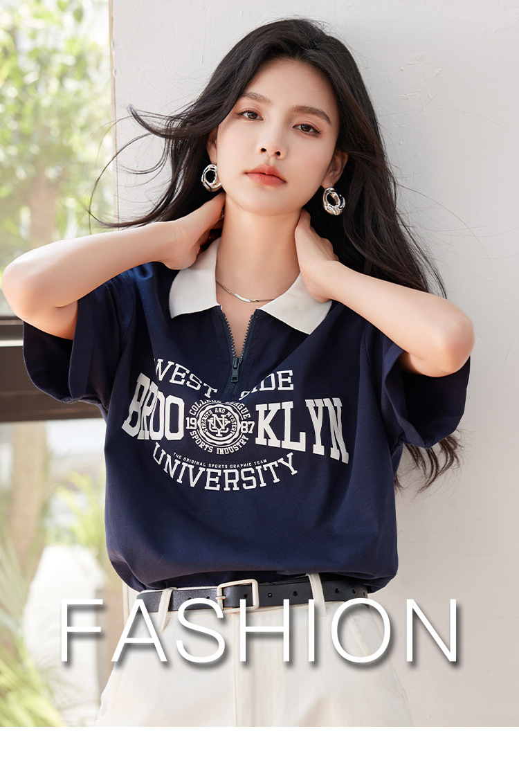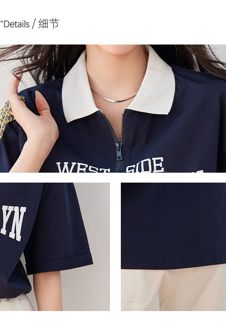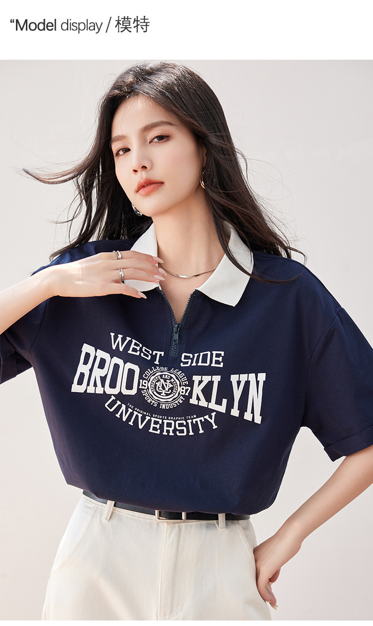 *o-ha-you*【FLKO30336】英文字母美式復古翻領T恤短袖藏青設計感拉鍊polo衫上衣