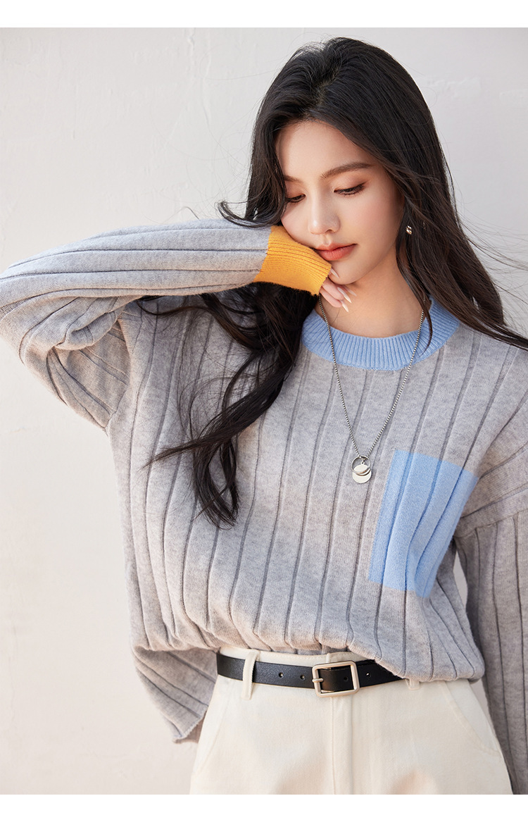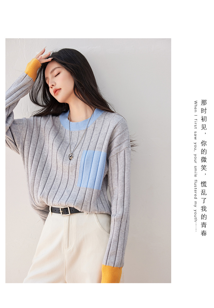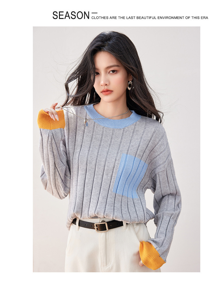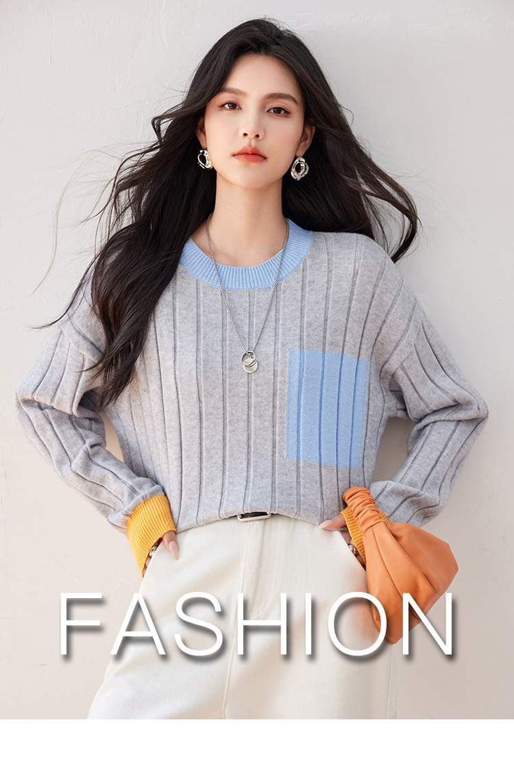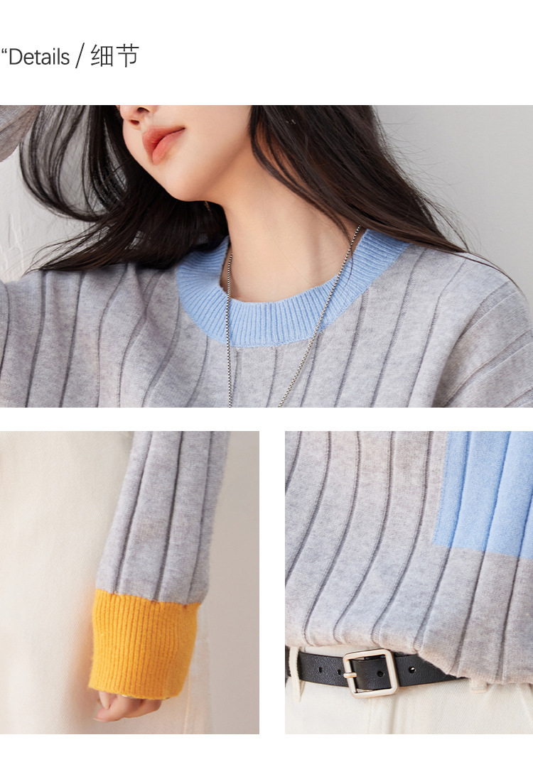 *o-ha-you*【FLKO30361】秋季2024新款拼色圓領百搭條紋氣質針織衫上衣