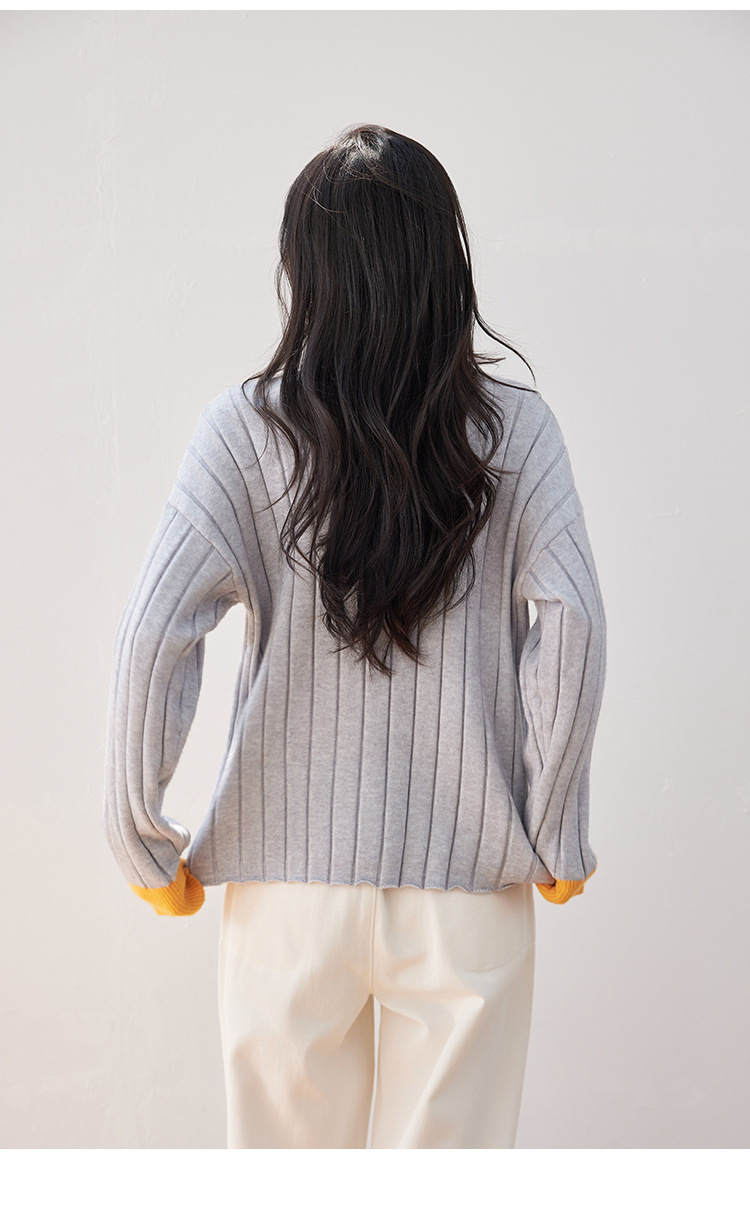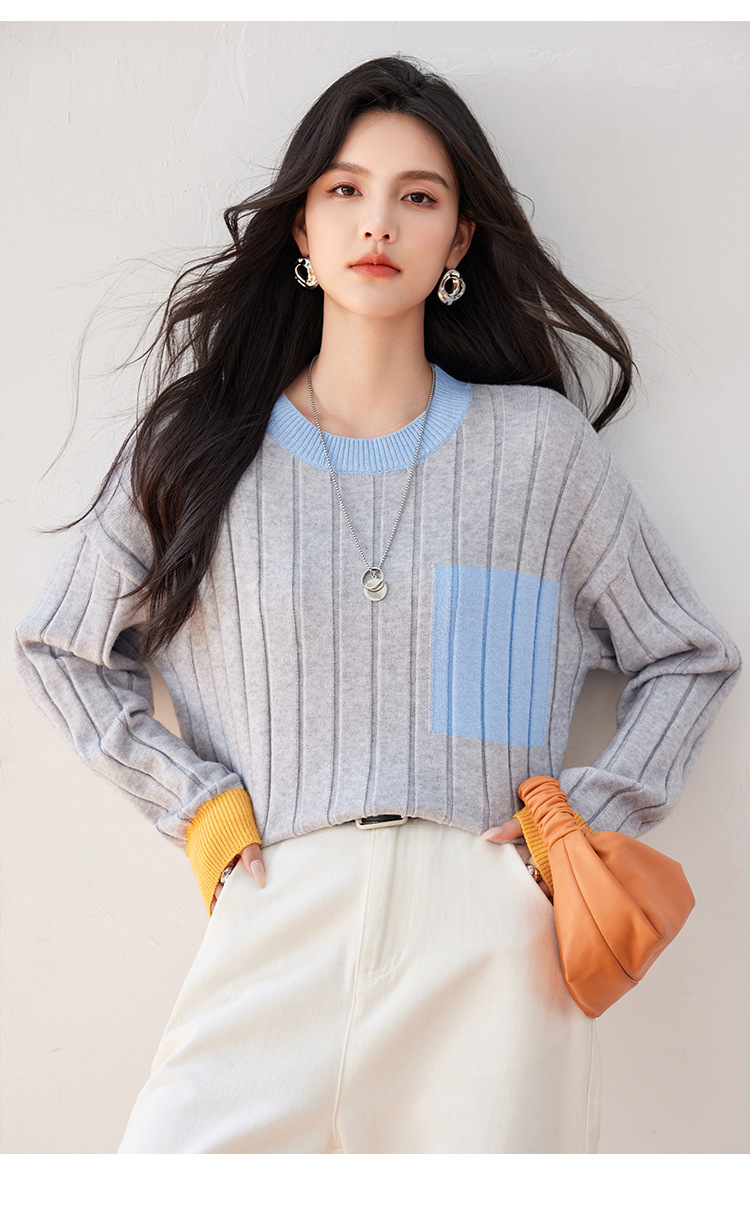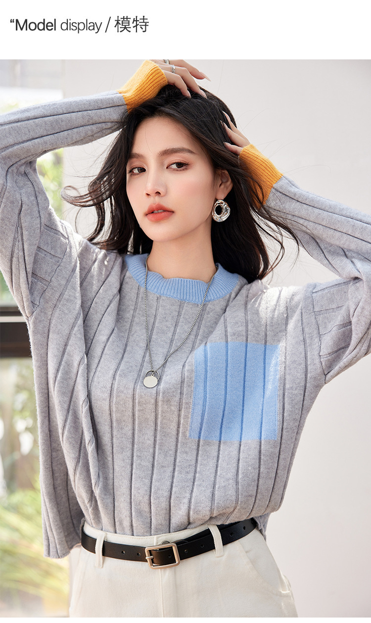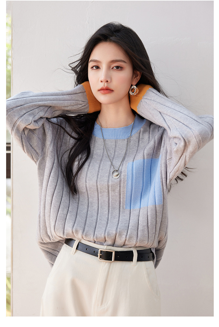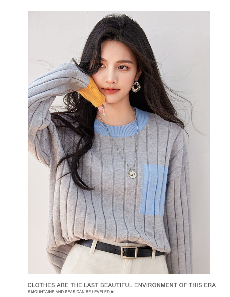 *o-ha-you*【FLKO30361】秋季2024新款拼色圓領百搭條紋氣質針織衫上衣