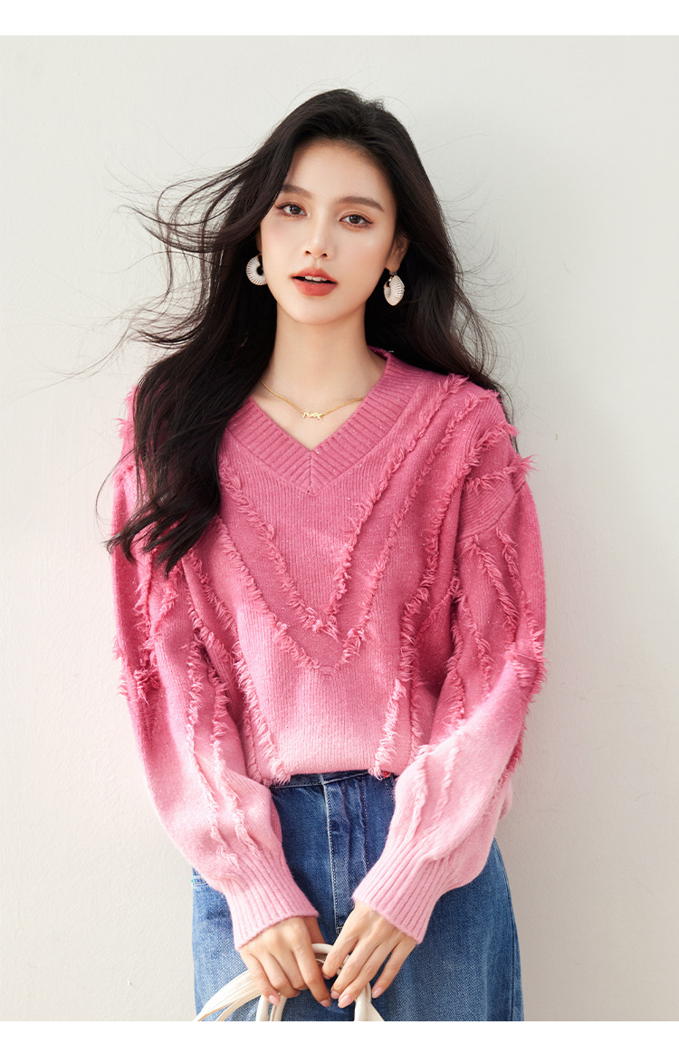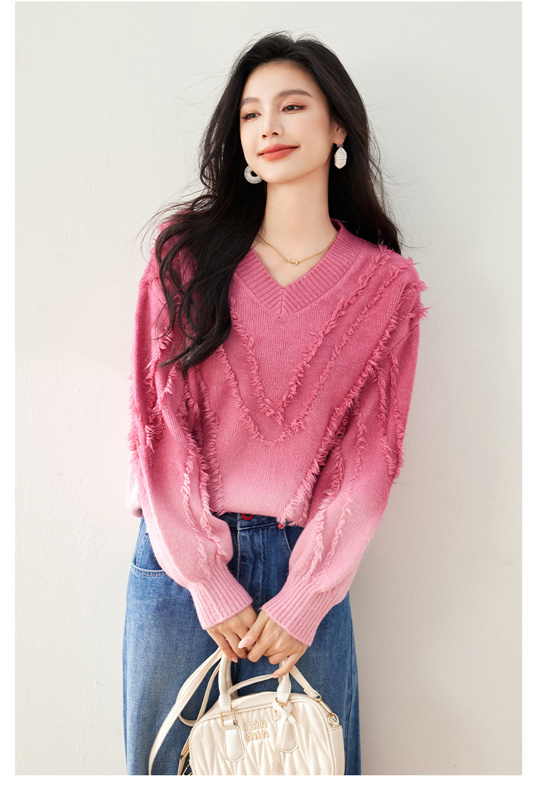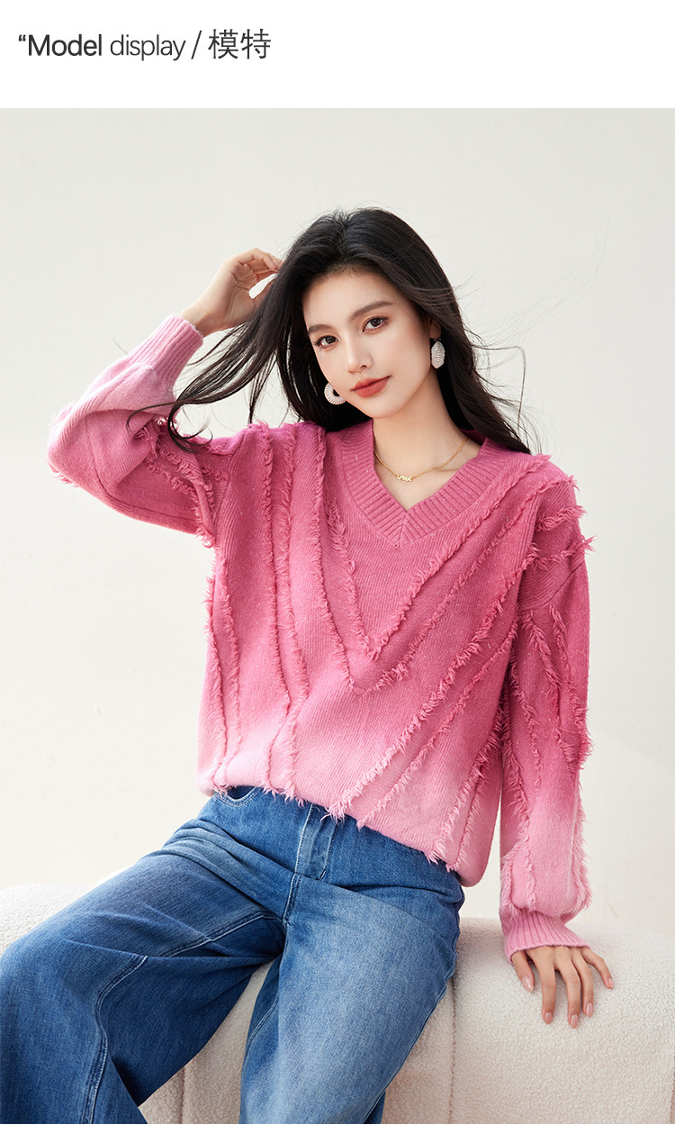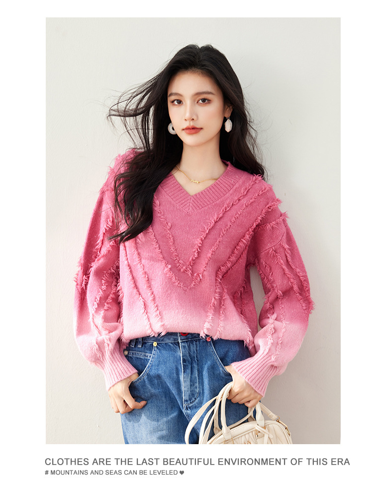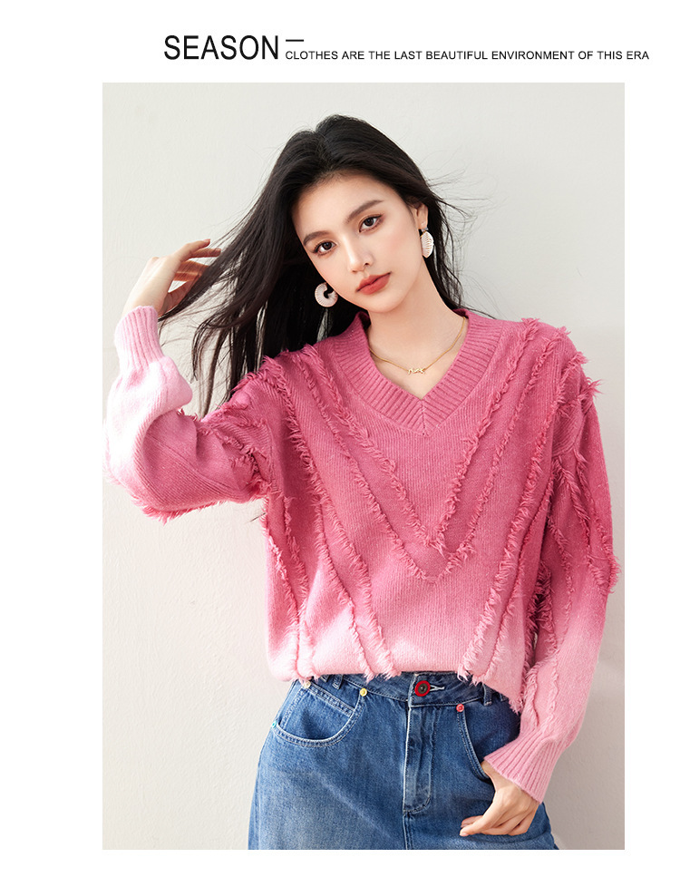 *o-ha-you*【FLKO30530】秋季舒適微胖mm漸變色慵懶風V領毛衣冬季新款寬鬆顯瘦針織衫
