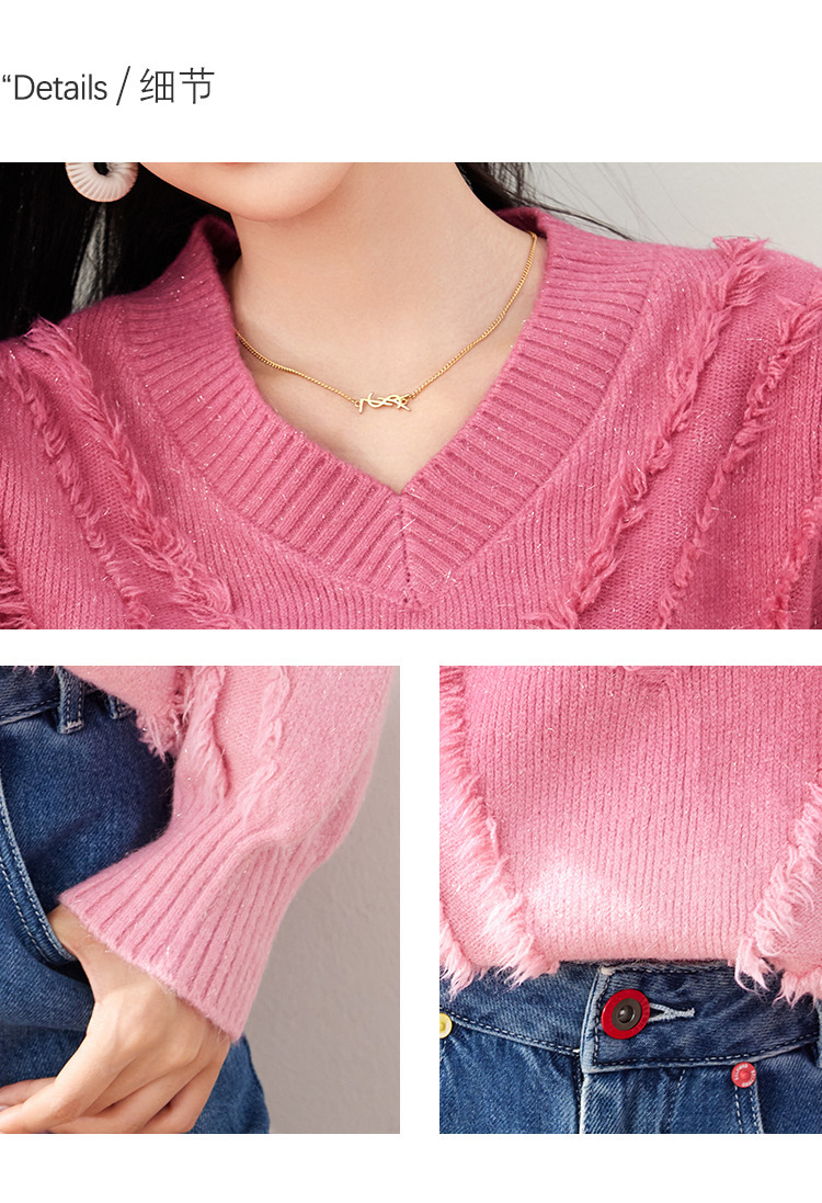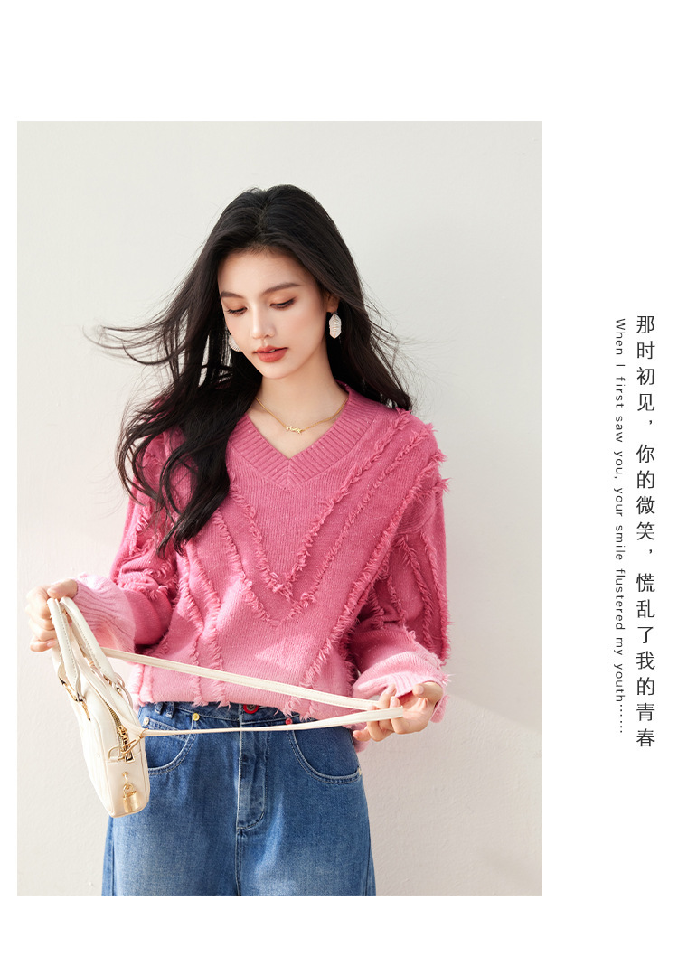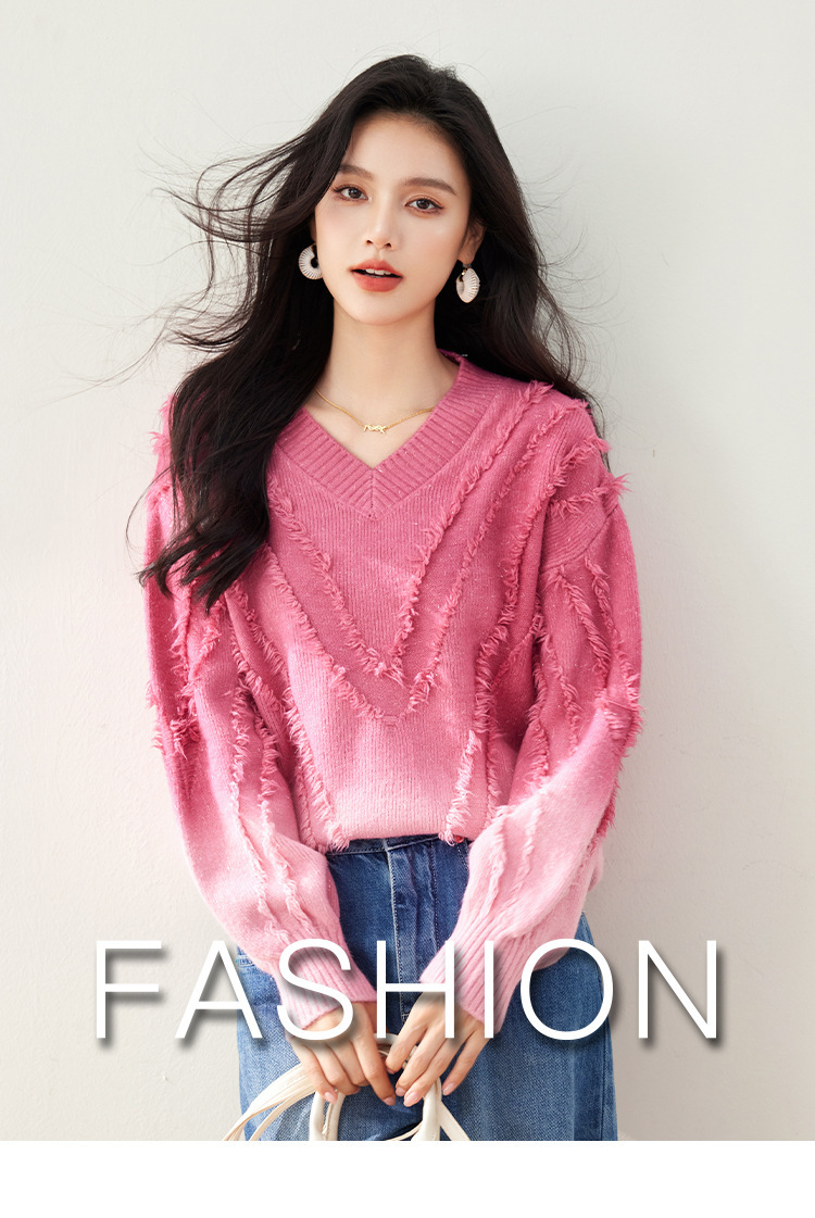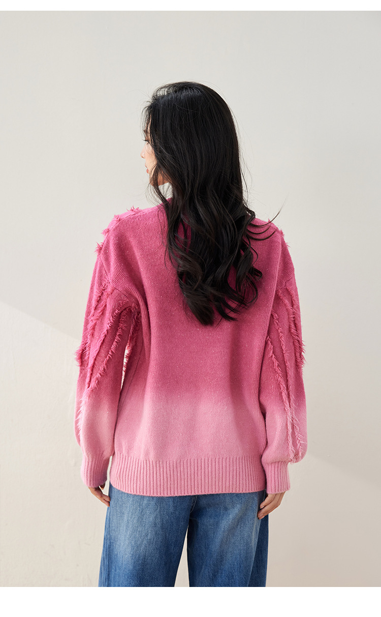 *o-ha-you*【FLKO30530】秋季舒適微胖mm漸變色慵懶風V領毛衣冬季新款寬鬆顯瘦針織衫