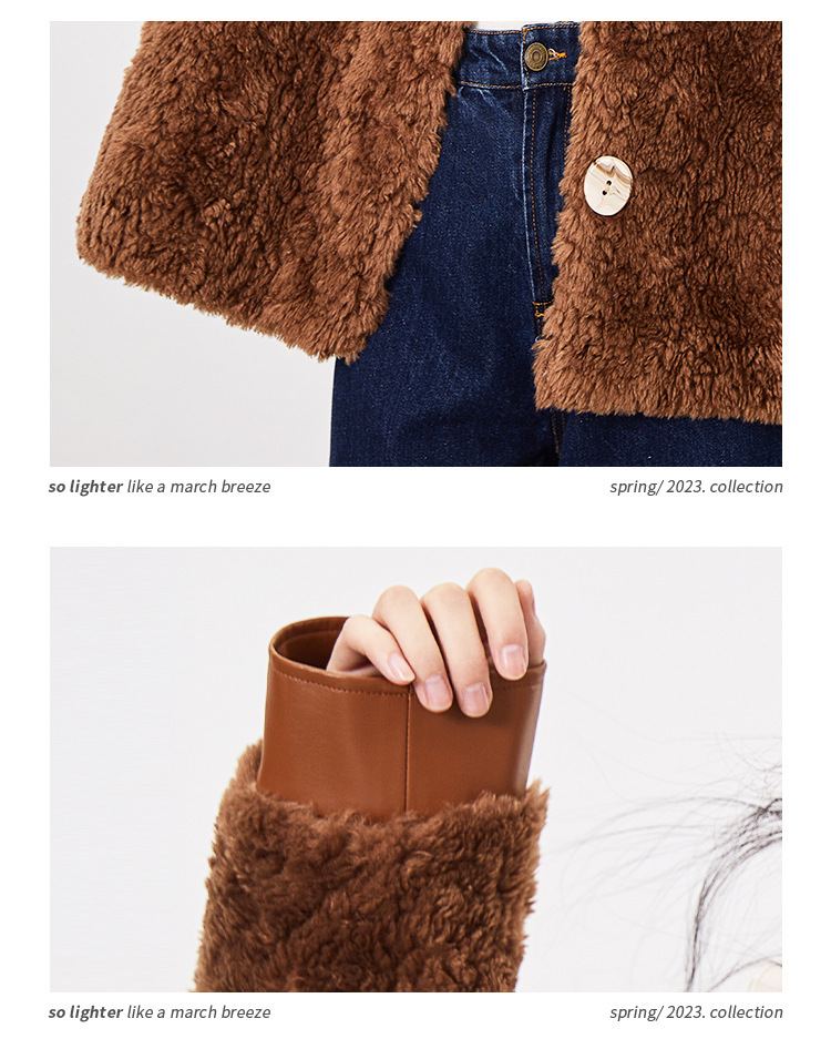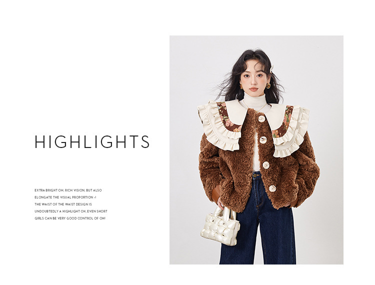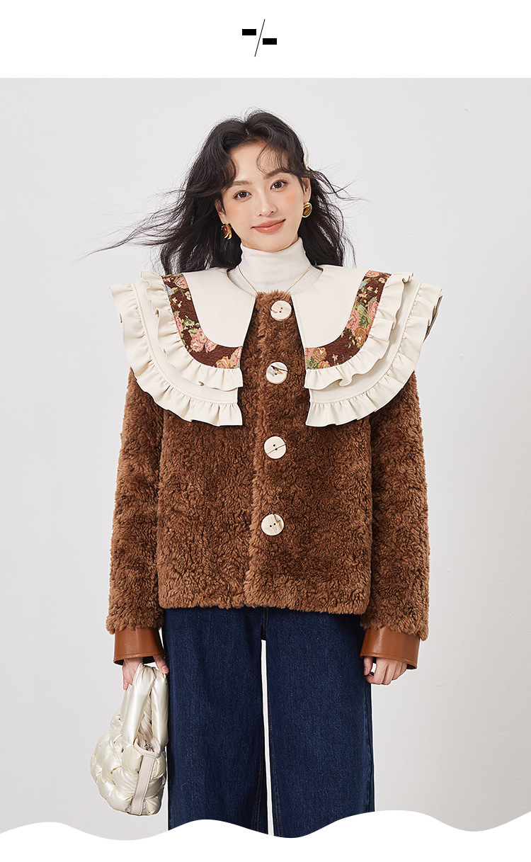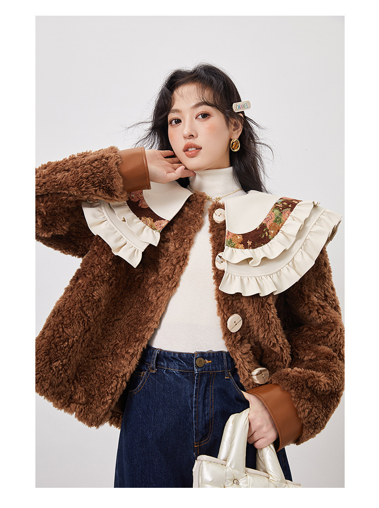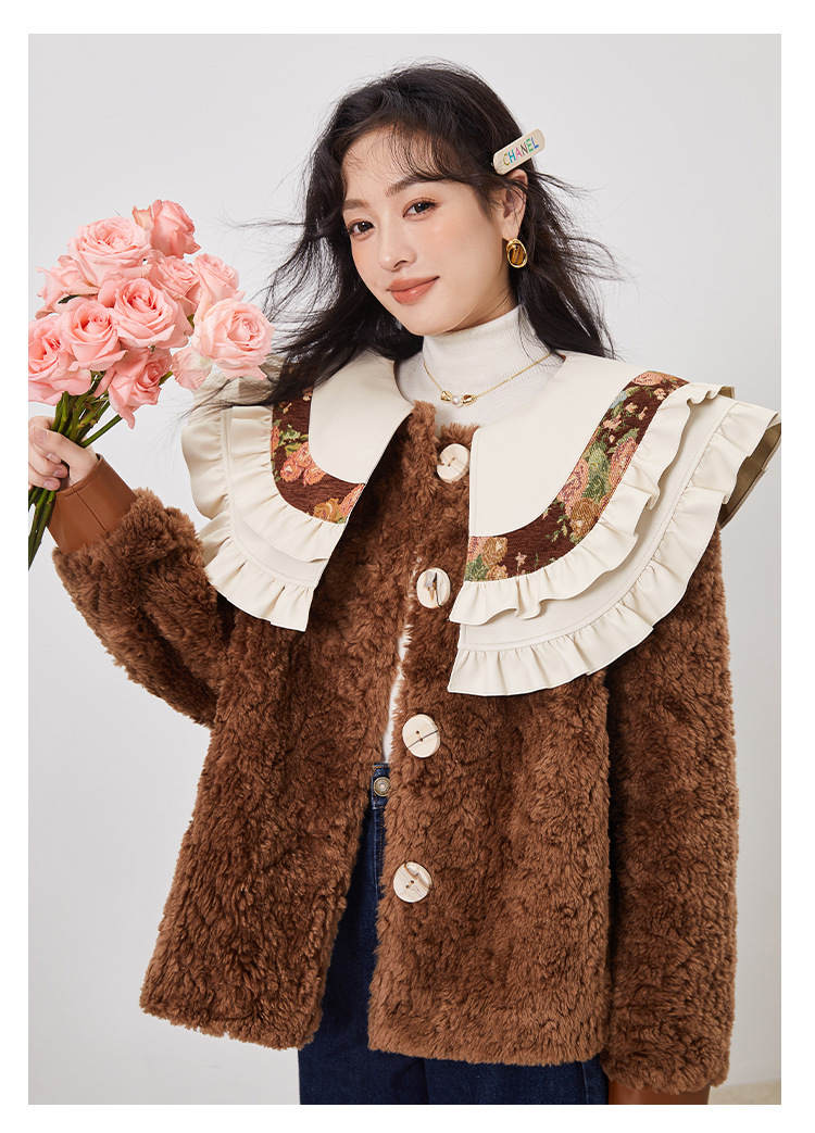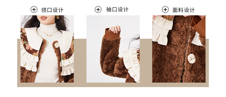 *o-ha-you*【FLKS10089】2023冬復古法式荷葉邊仿羊羔毛皮草美拉德咖皮毛一體外套