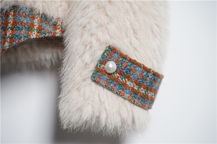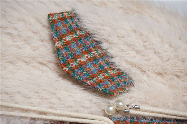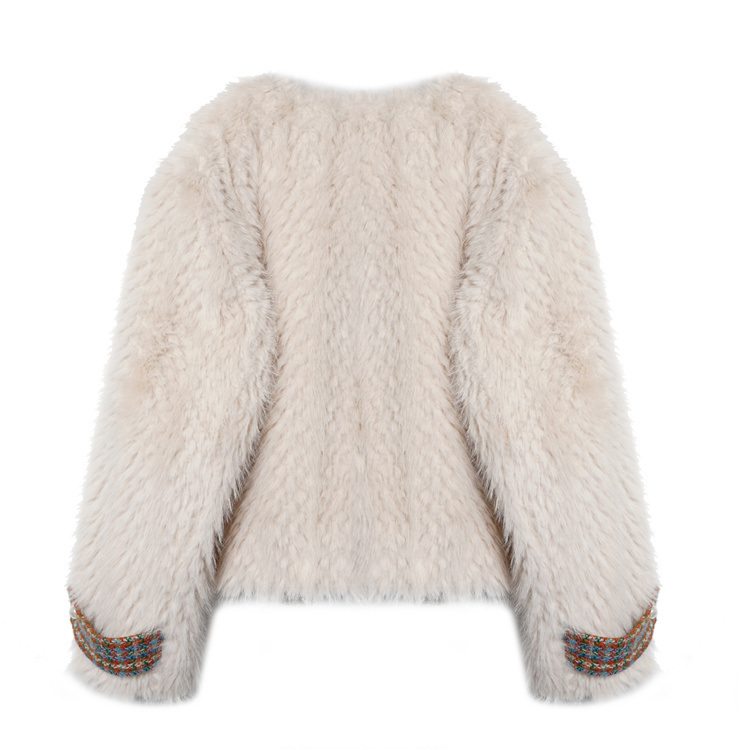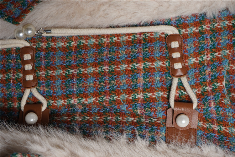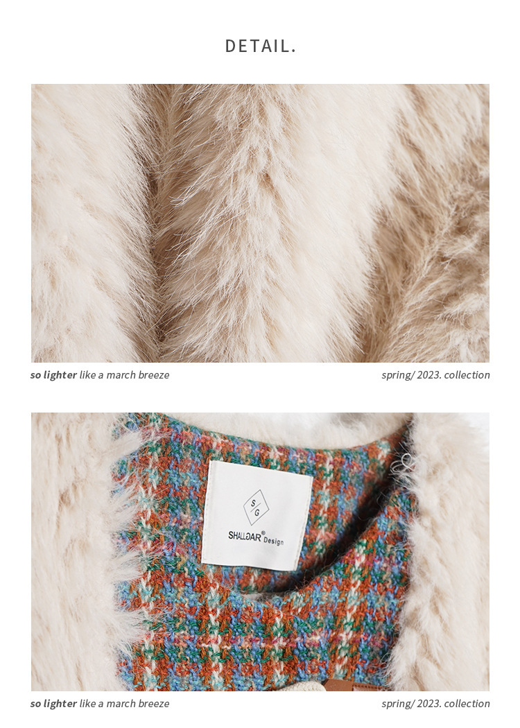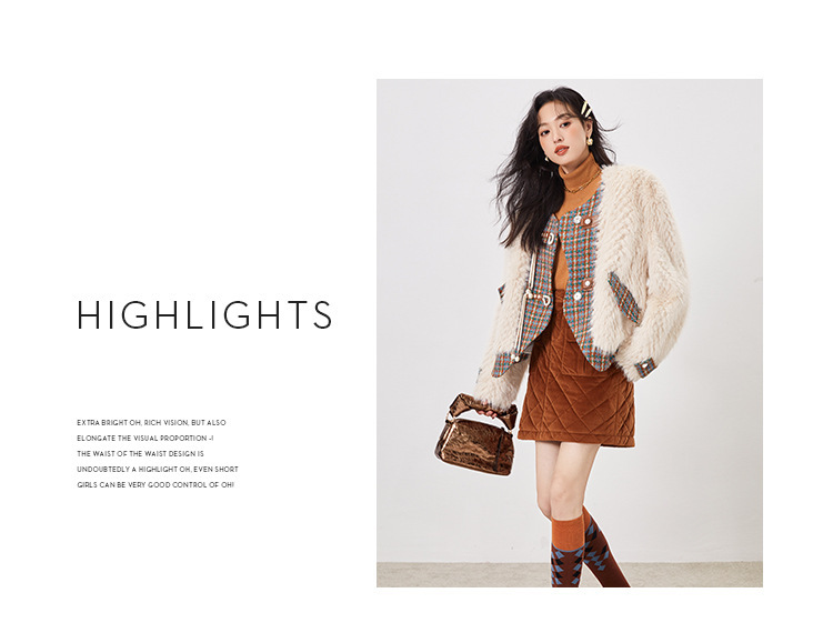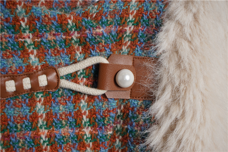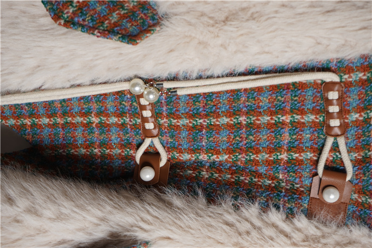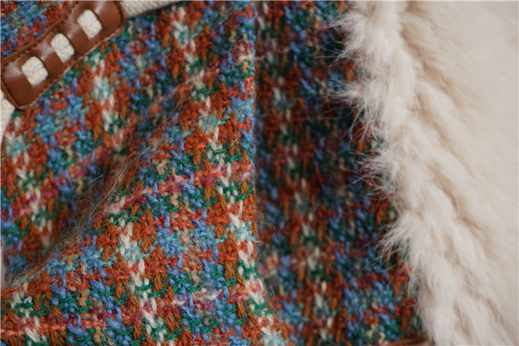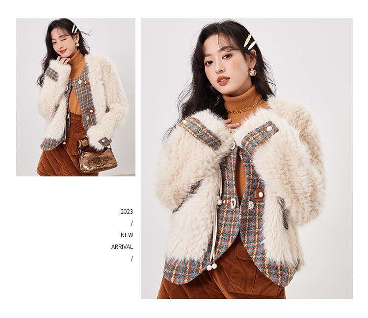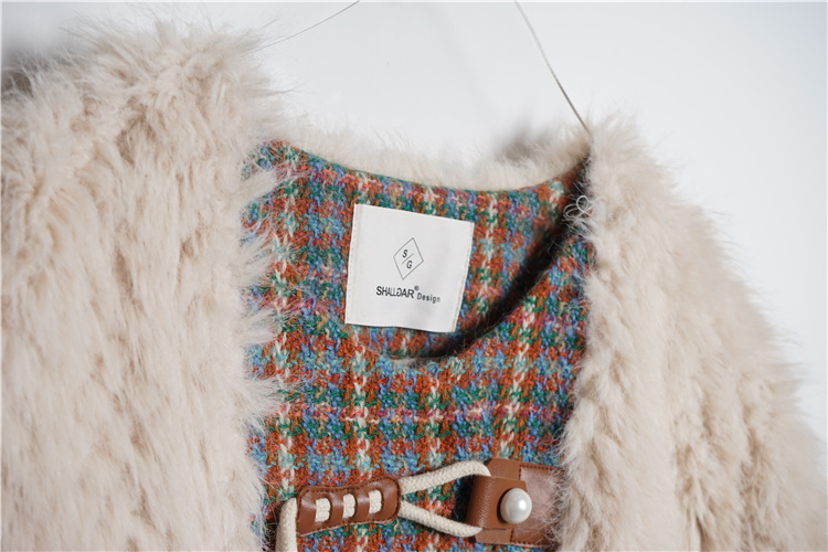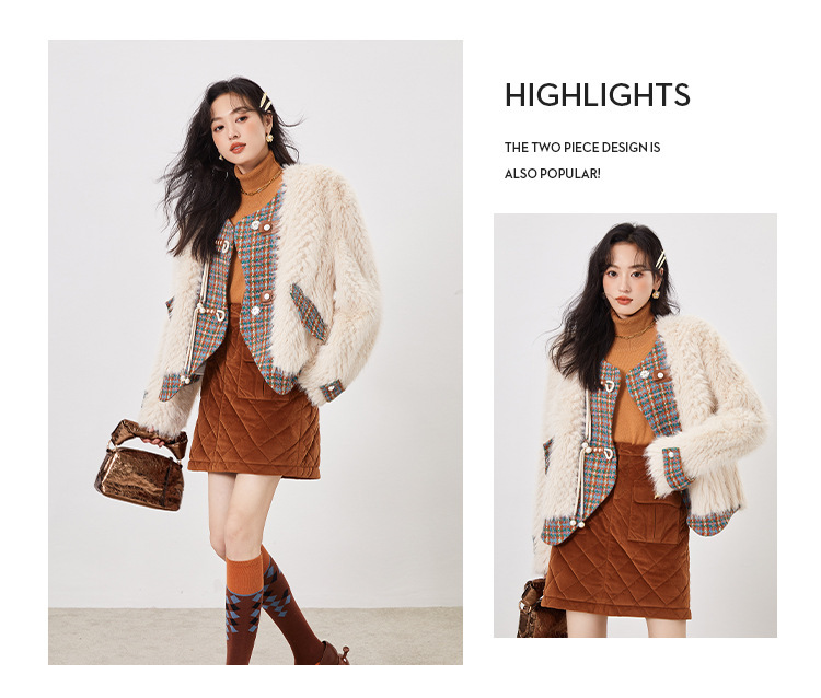 *o-ha-you*【FLKS10096】冬季復古法式粗花呢圓領毛絨外套拼接撞色環保毛絨絨皮草