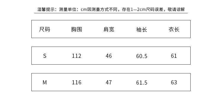 衣長/肩寬/袖長為平量,其他為一圈(單位:公分)