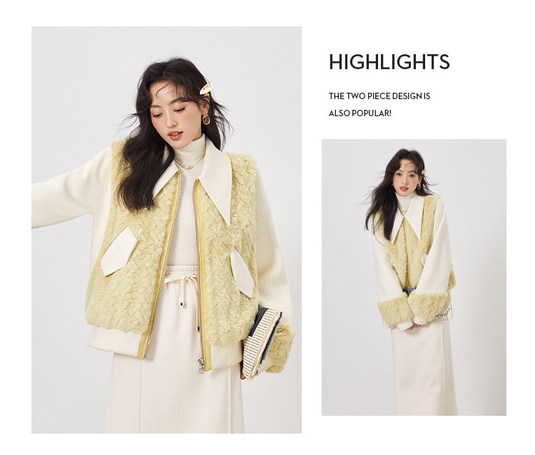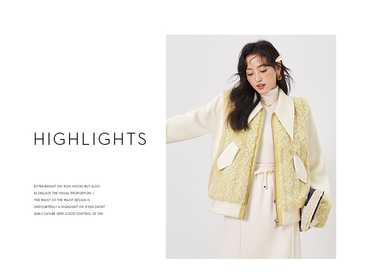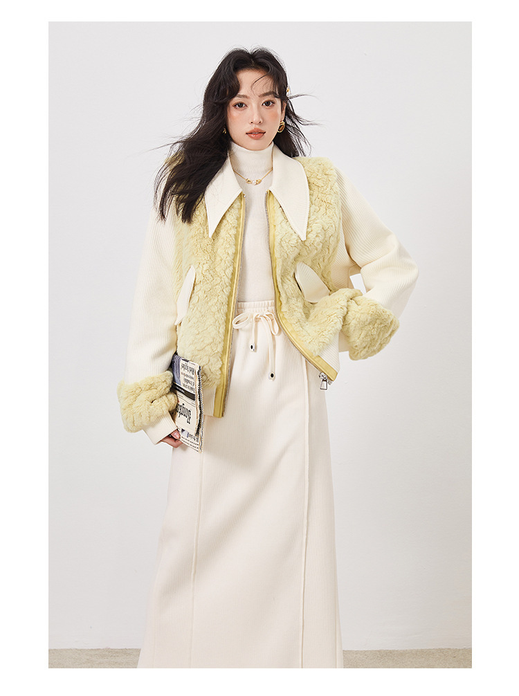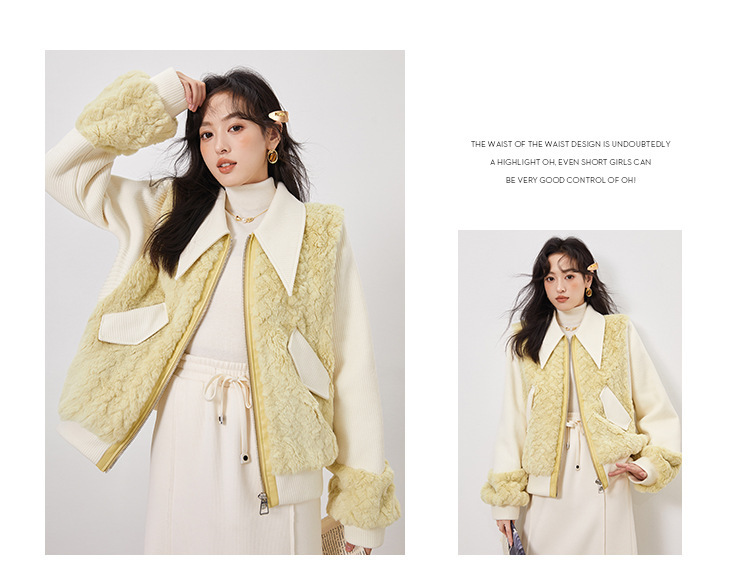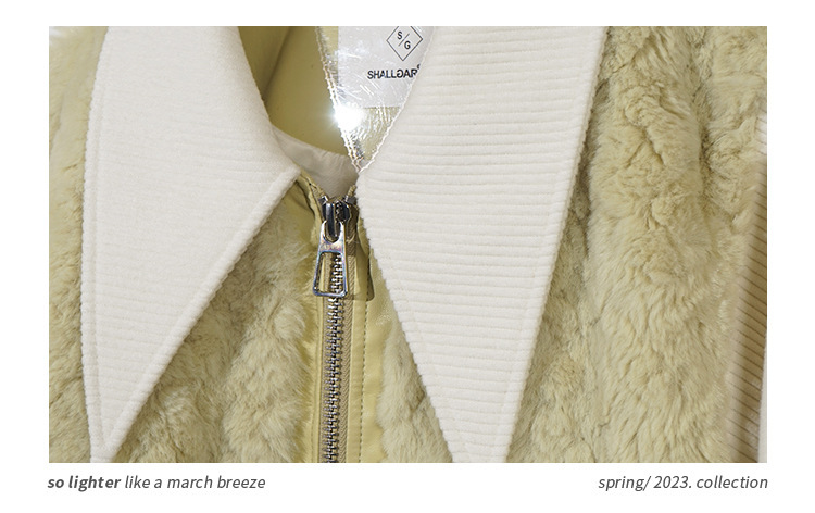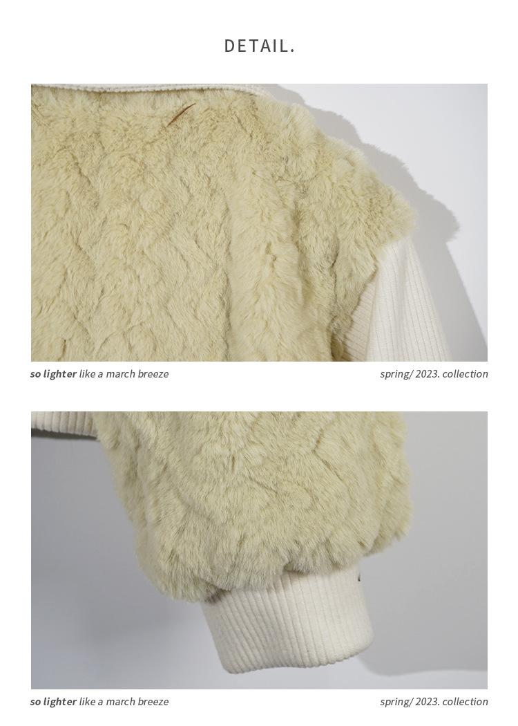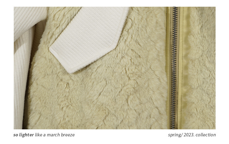 *o-ha-you*【FLKS10239】冬季復古拼接撞色尖角領拉鍊毛絨夾克仿獺兔環保皮草外套