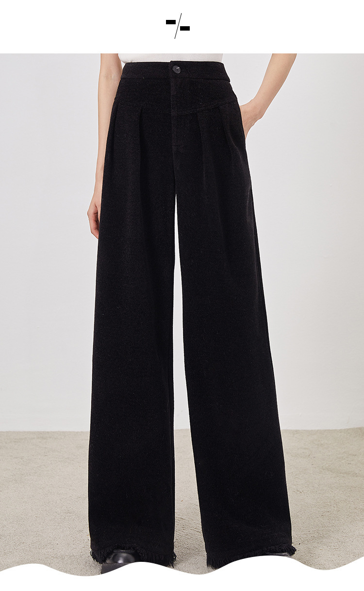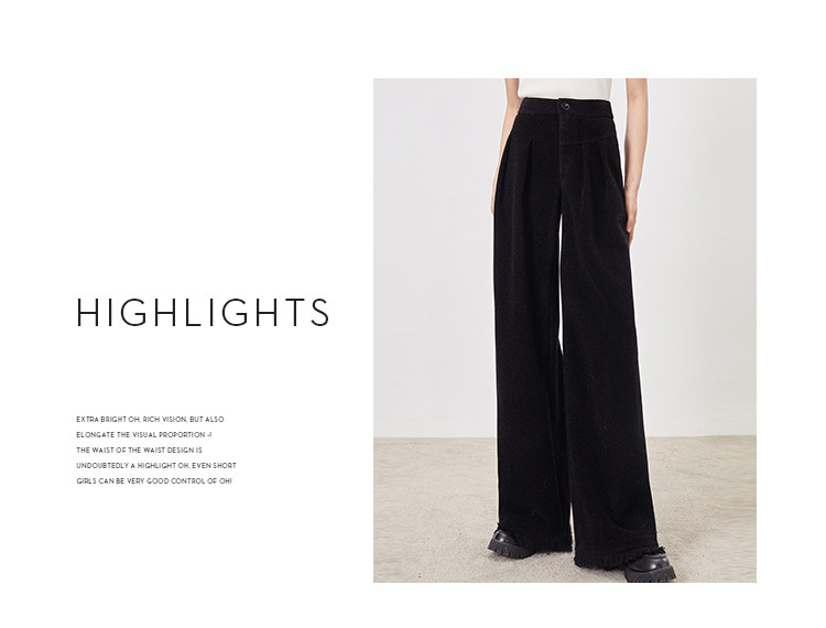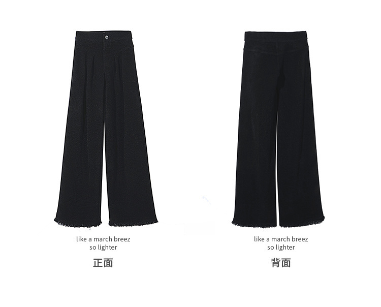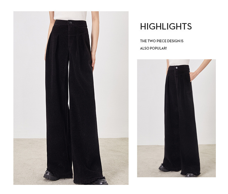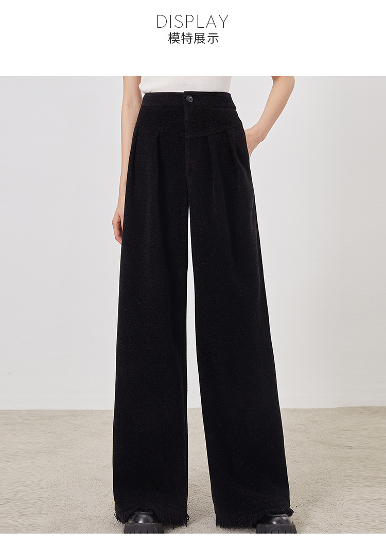 *o-ha-you*【FLKS10252】冬季復古法式高腰流蘇邊長褲亮絲黑色寬褲百搭休閒褲