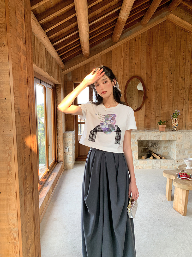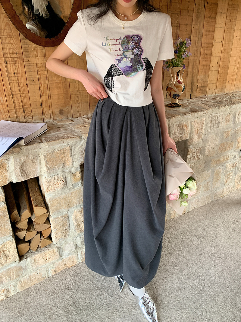 *o-ha-you*【FLKS10714】小眾設計感高腰褶皺長裙深灰色不對稱半身裙不規則抽褶裙