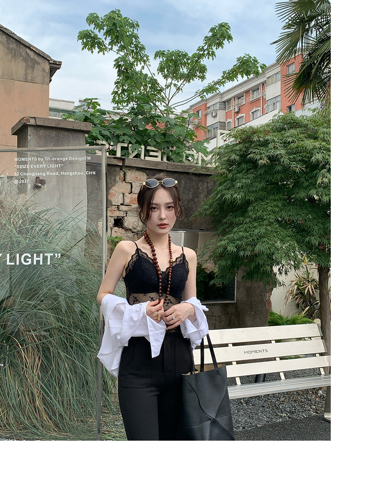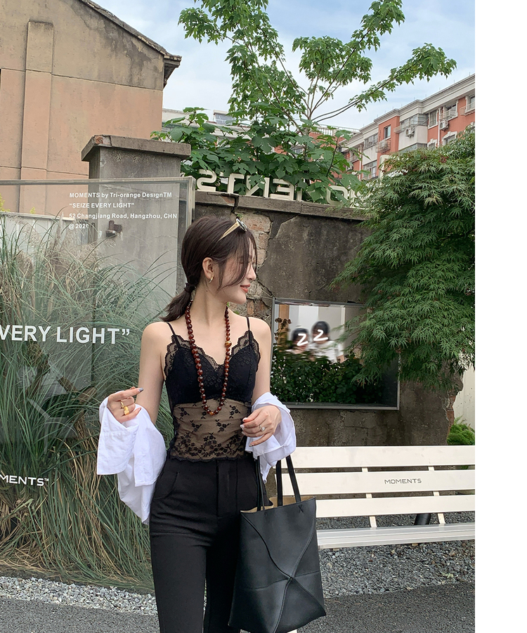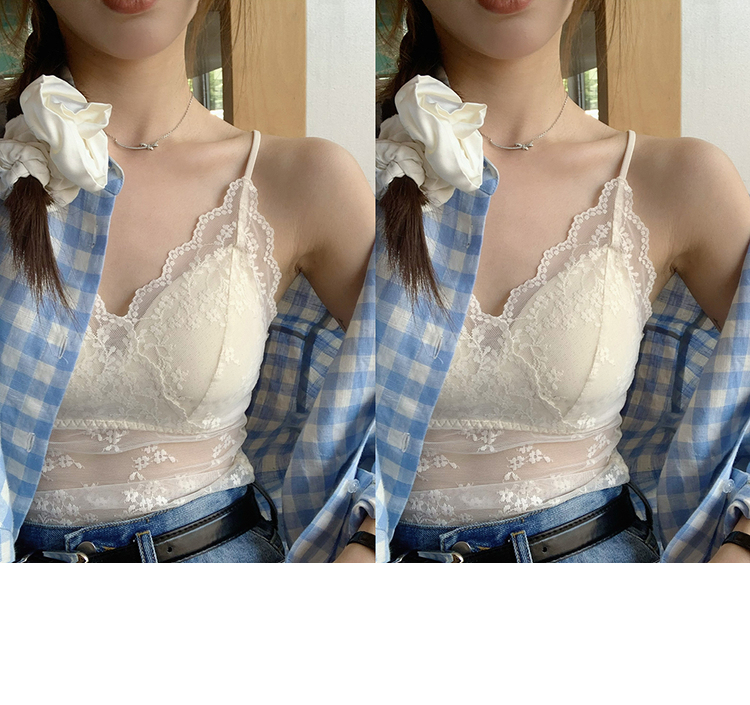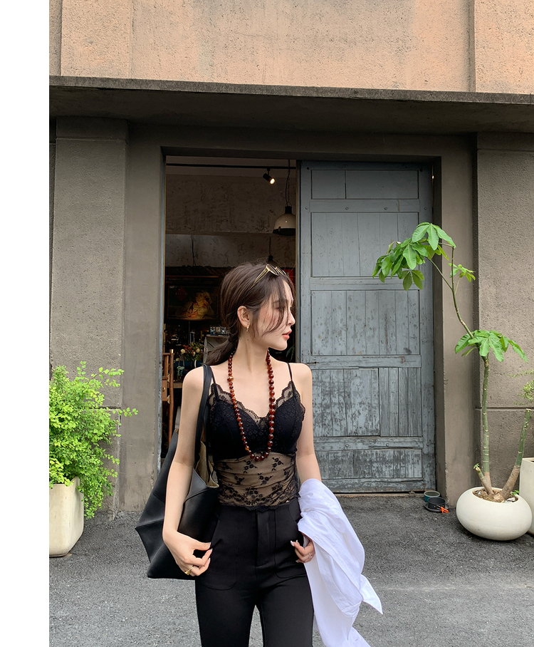 *o-ha-you*【FMMB2042001】半透蕾絲吊帶薄款性感透視一體杯胸墊修身顯瘦背心-2色