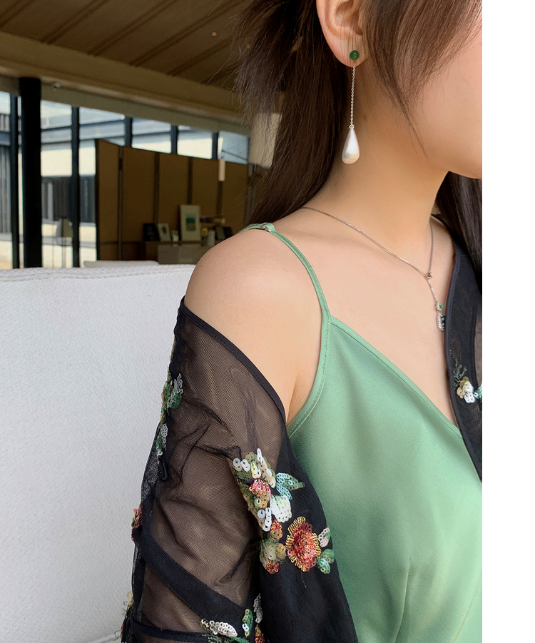 *o-ha-you*【FMMJ2041059】【滴翠】新中式國風綠瑪瑙水滴吊墜925銀針耳環流蘇耳墜