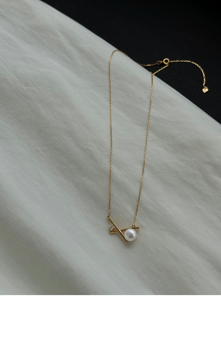 *o-ha-you*【FMMJ2042068】《玫瑰的故事》黃亦玫同款X交叉平衡S925純銀天然淡水珍珠水鑽項鍊