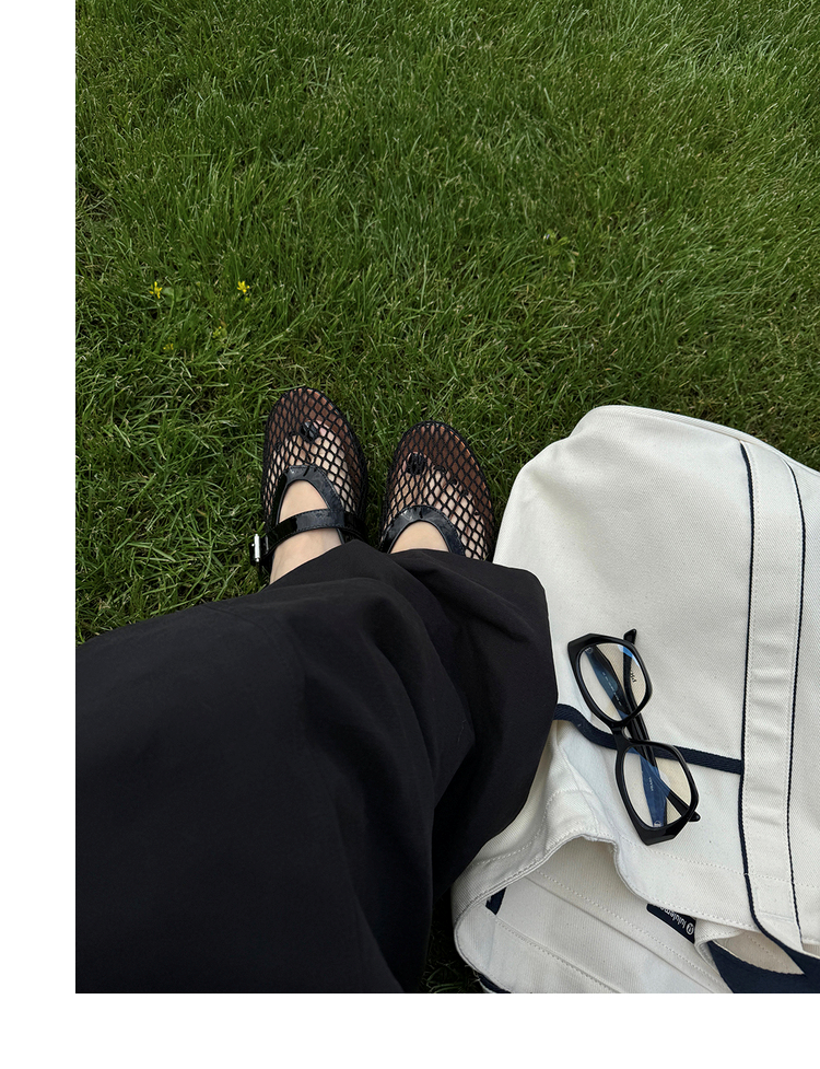 *o-ha-you*【FMMS2041010】【鏤空瑪莉珍】一字扣帶圓頭透氣鏤空漁網鞋單鞋-如有需要請先諮詢