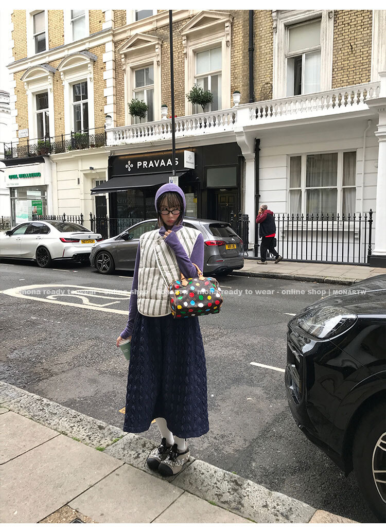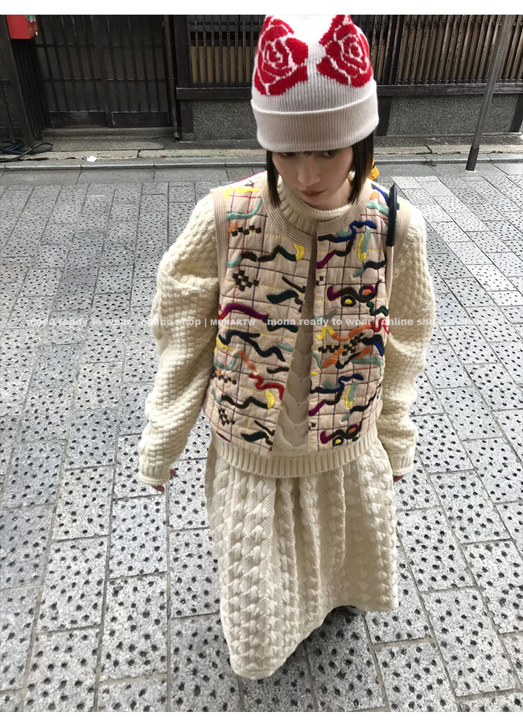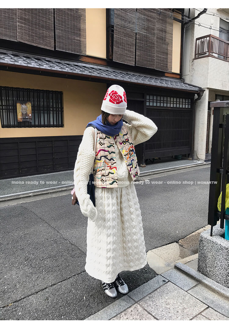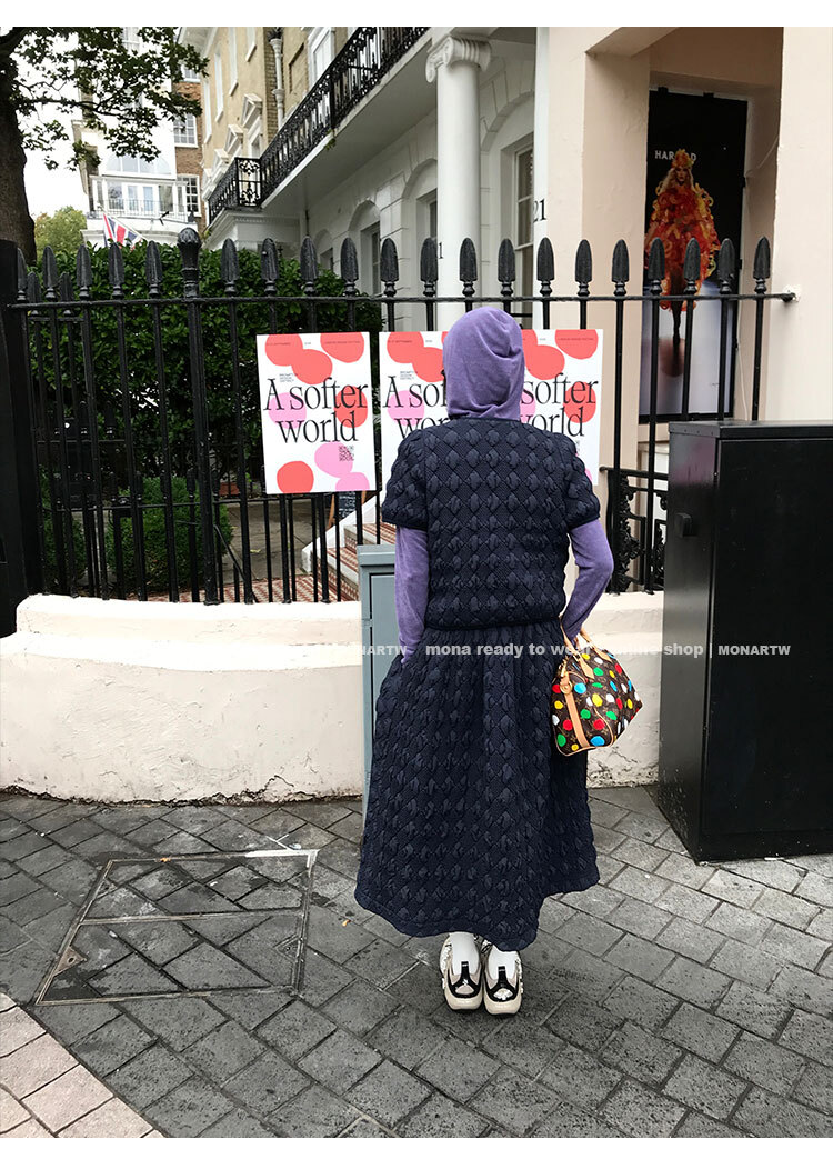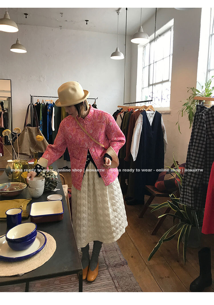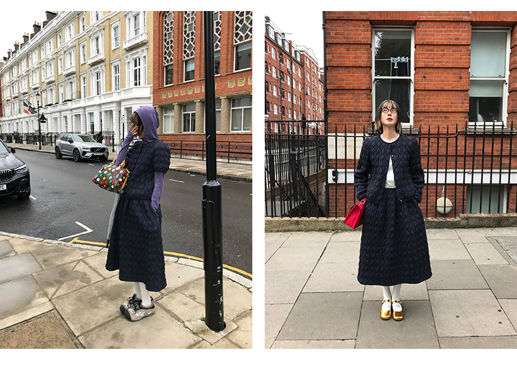 絎縫工藝在裙身上延續,與上衣形成呼應