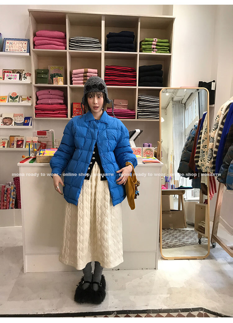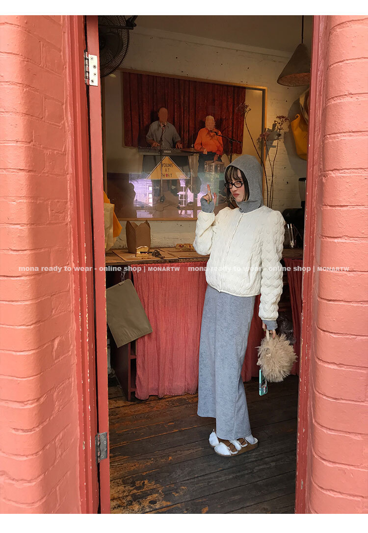 採用牛津菱形格絎棉材質,手感柔軟,輕盈保暖
