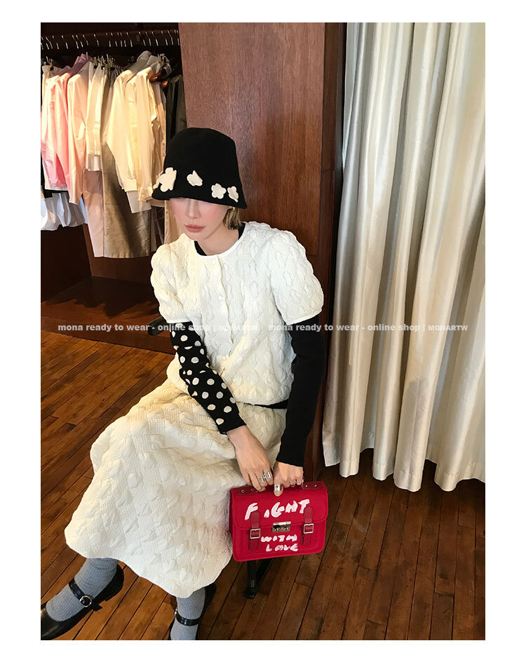 短袖立體直身袖型,輪廓拿捏的剛剛好,造型感十 足
