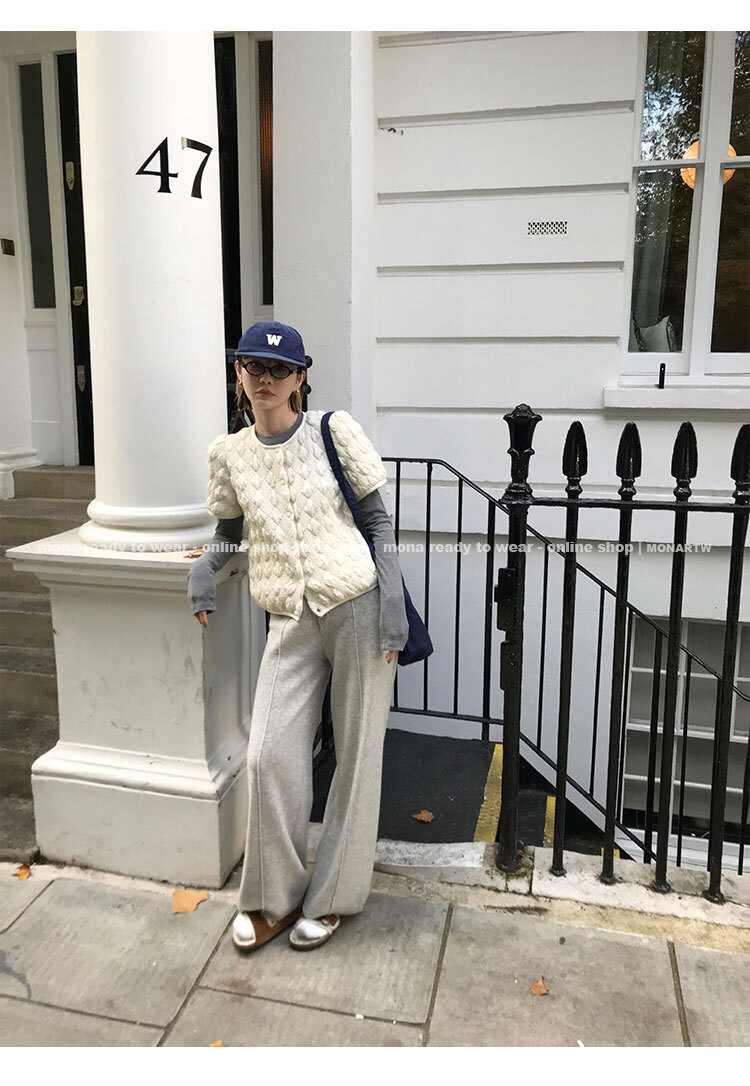 圓領設計,隨性舒適,袖口和下擺採用彈性包條收束,
