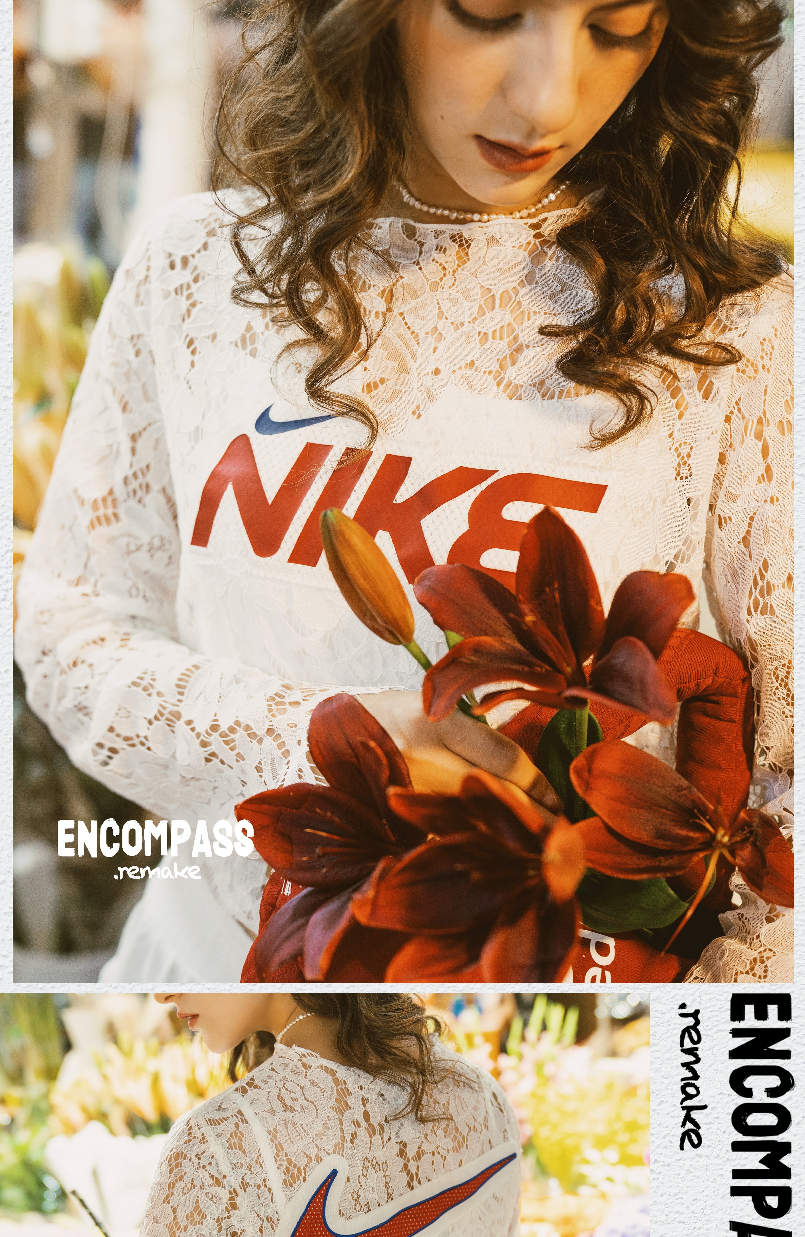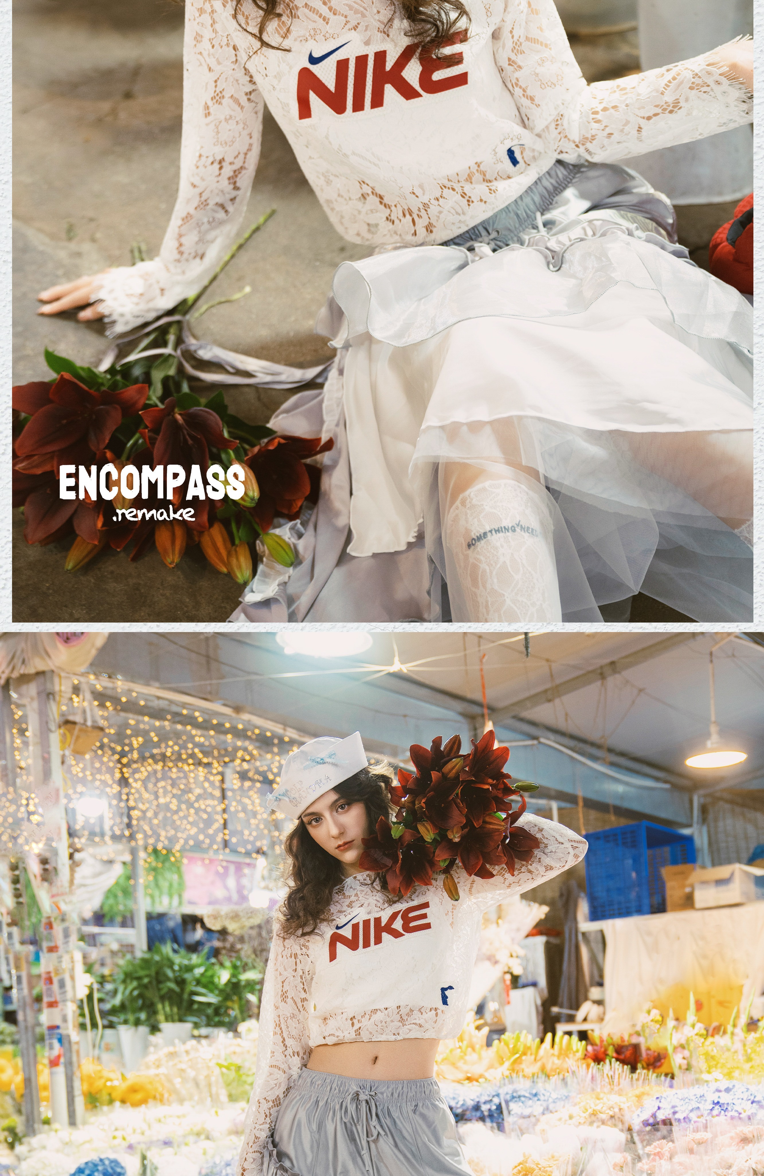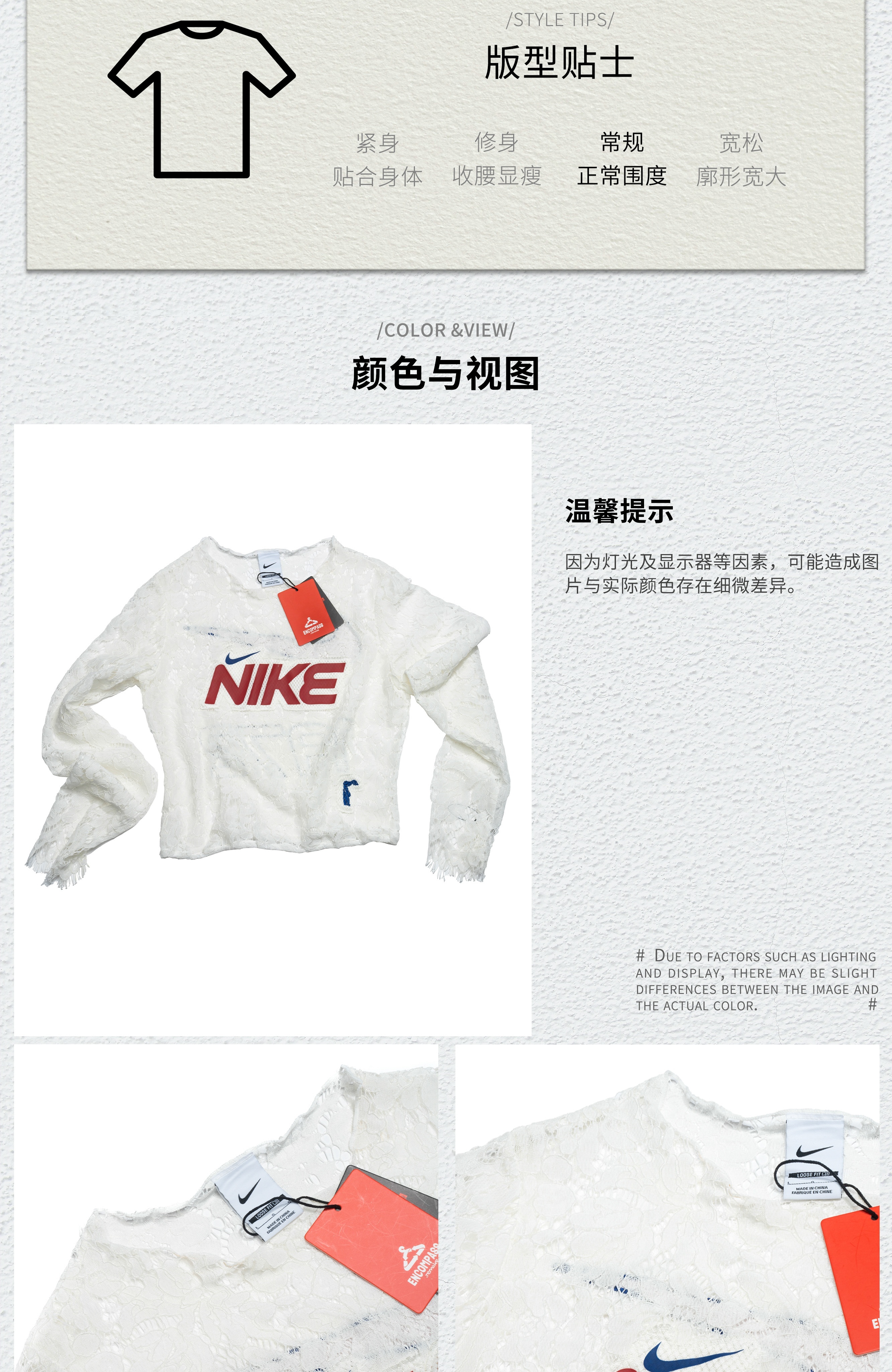 *o-ha-you*【FMN0008】重新解構NIKE Remake Jerseyfit 蕾絲風 半透明 長袖T恤