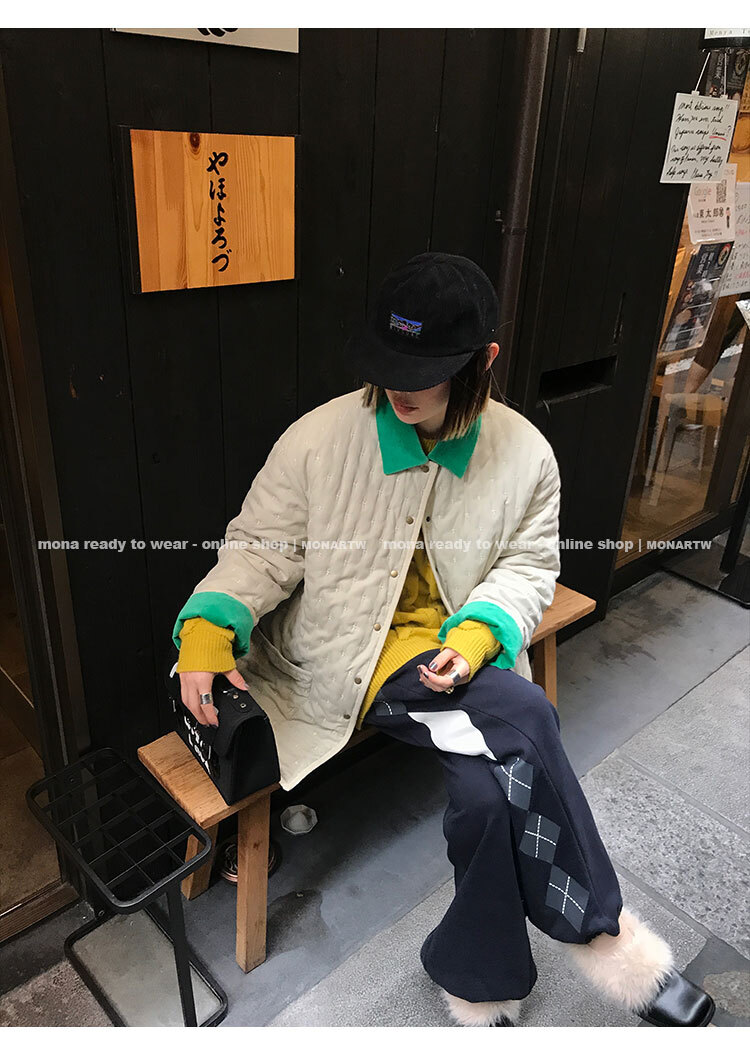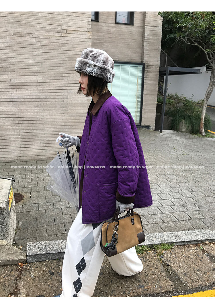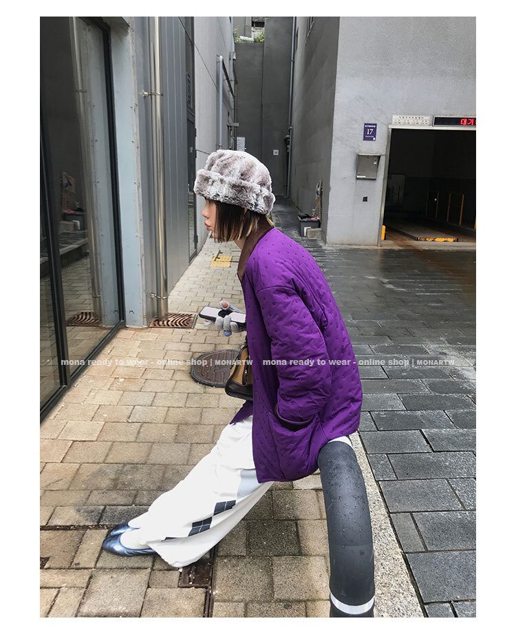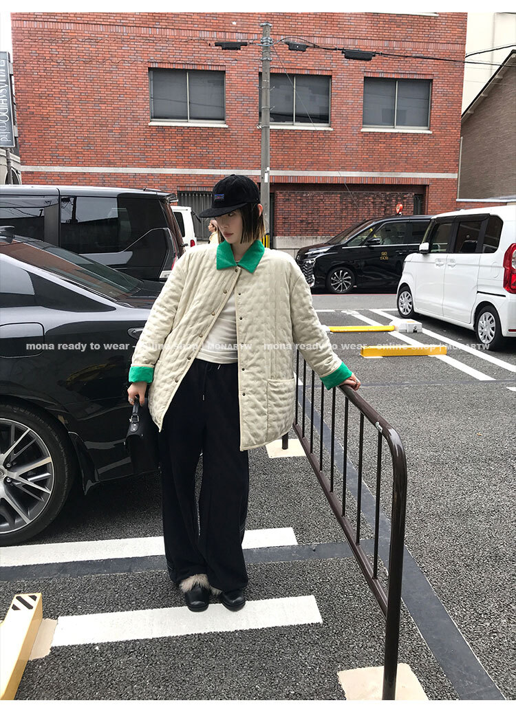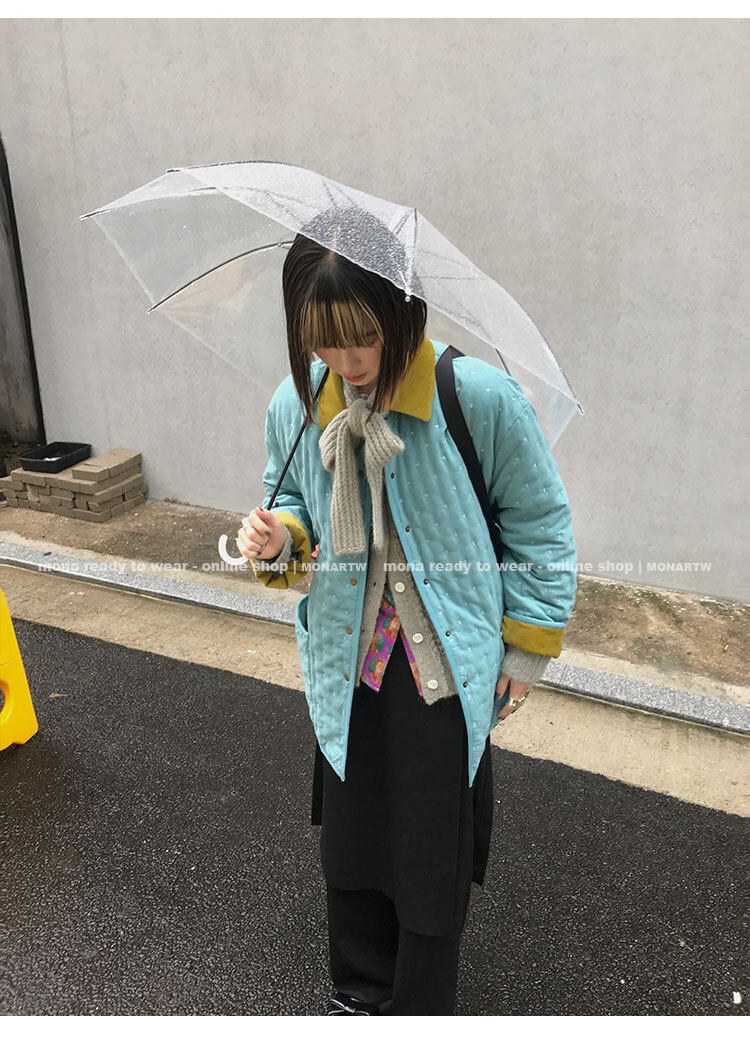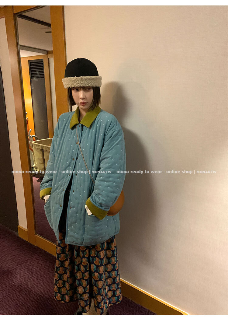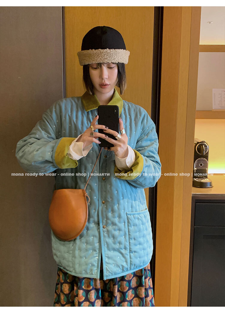 *o-ha-you*【FMN13334】復古風 翻領撞色設計百搭 棉衣棉服外套女小個子 秋冬新款-3色