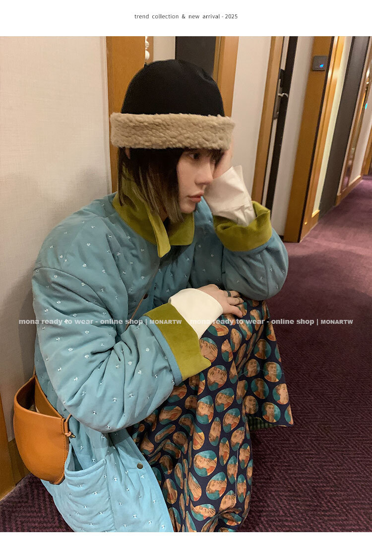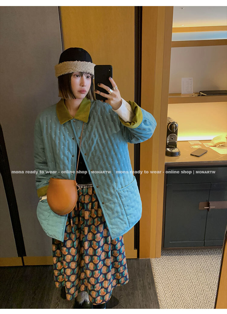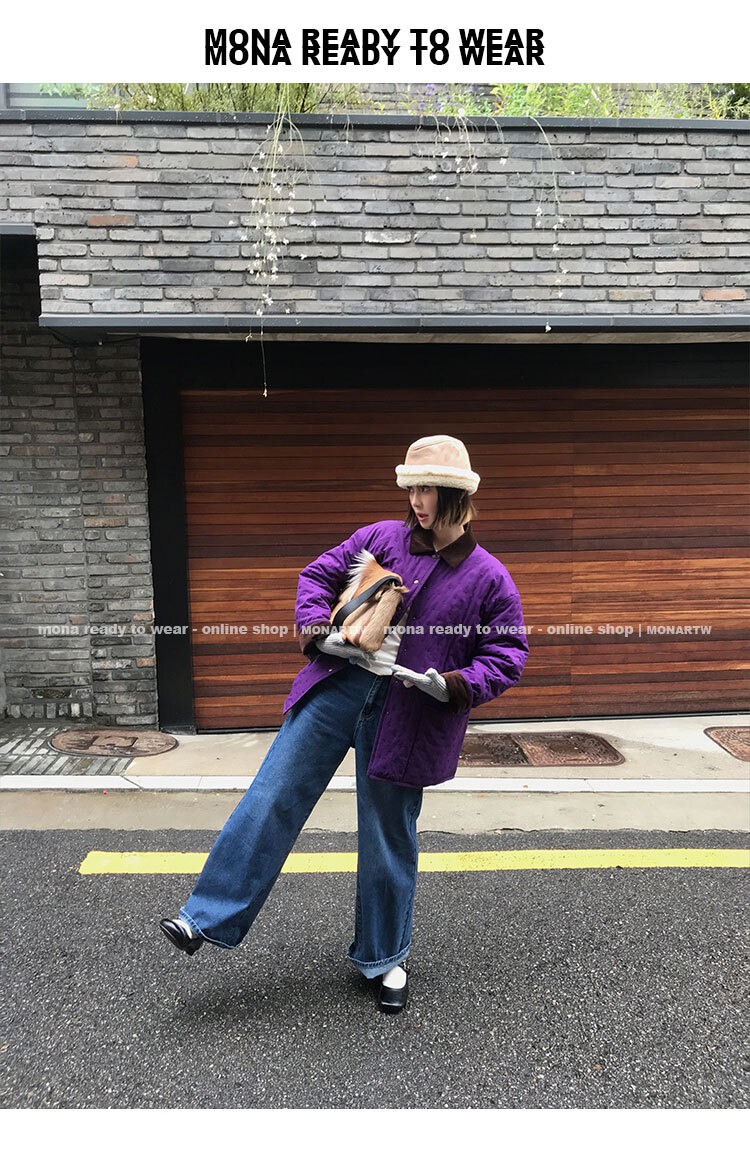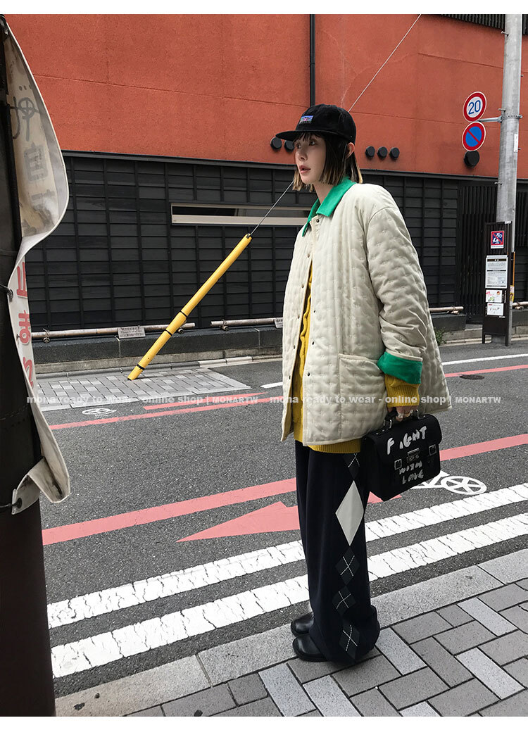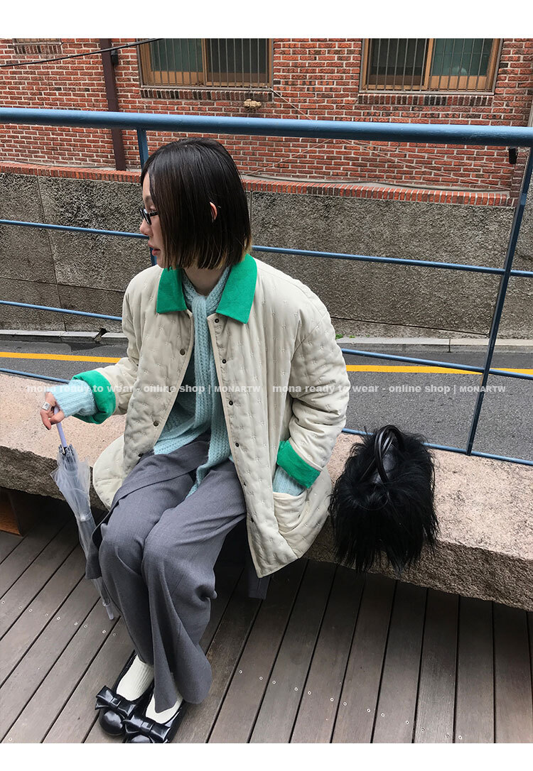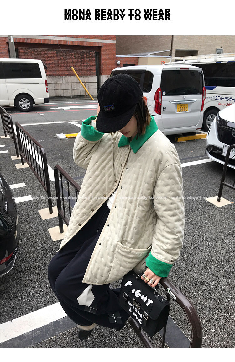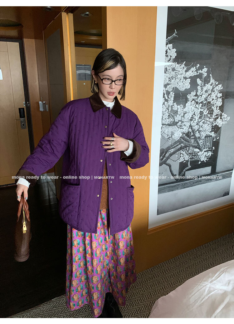 *o-ha-you*【FMN13334】復古風 翻領撞色設計百搭 棉衣棉服外套女小個子 秋冬新款-3色