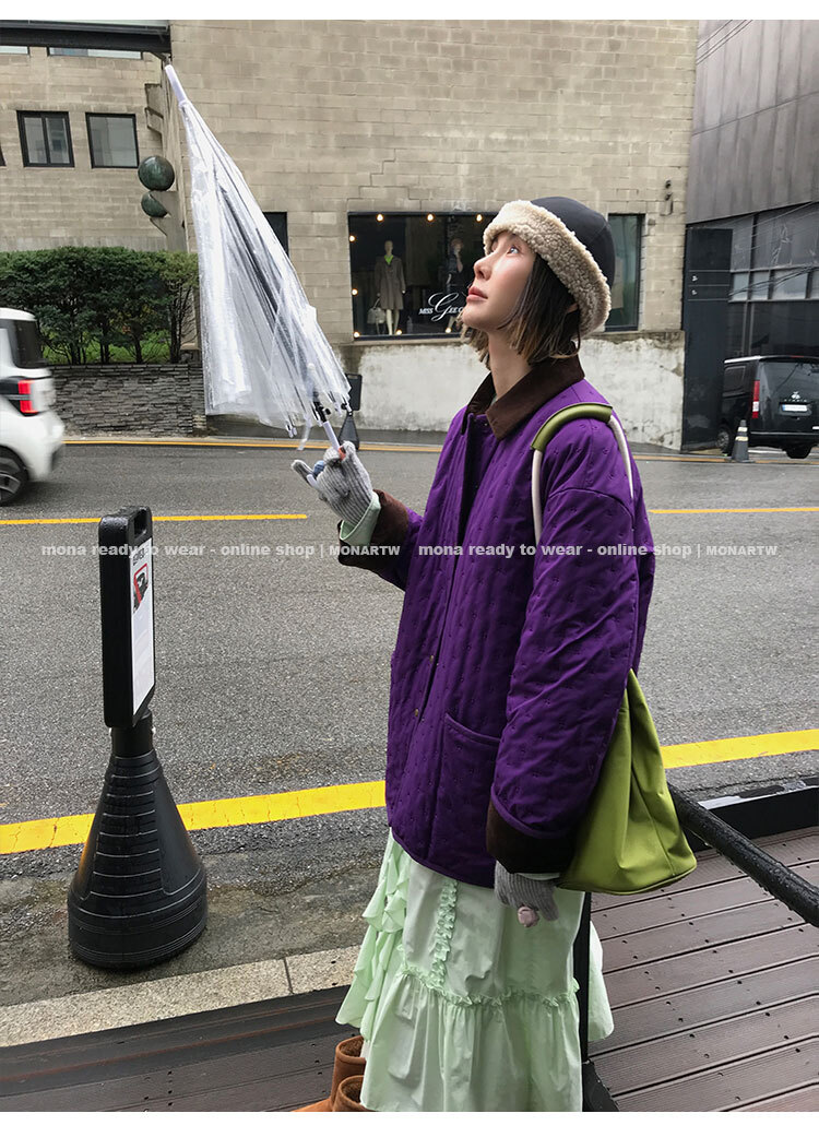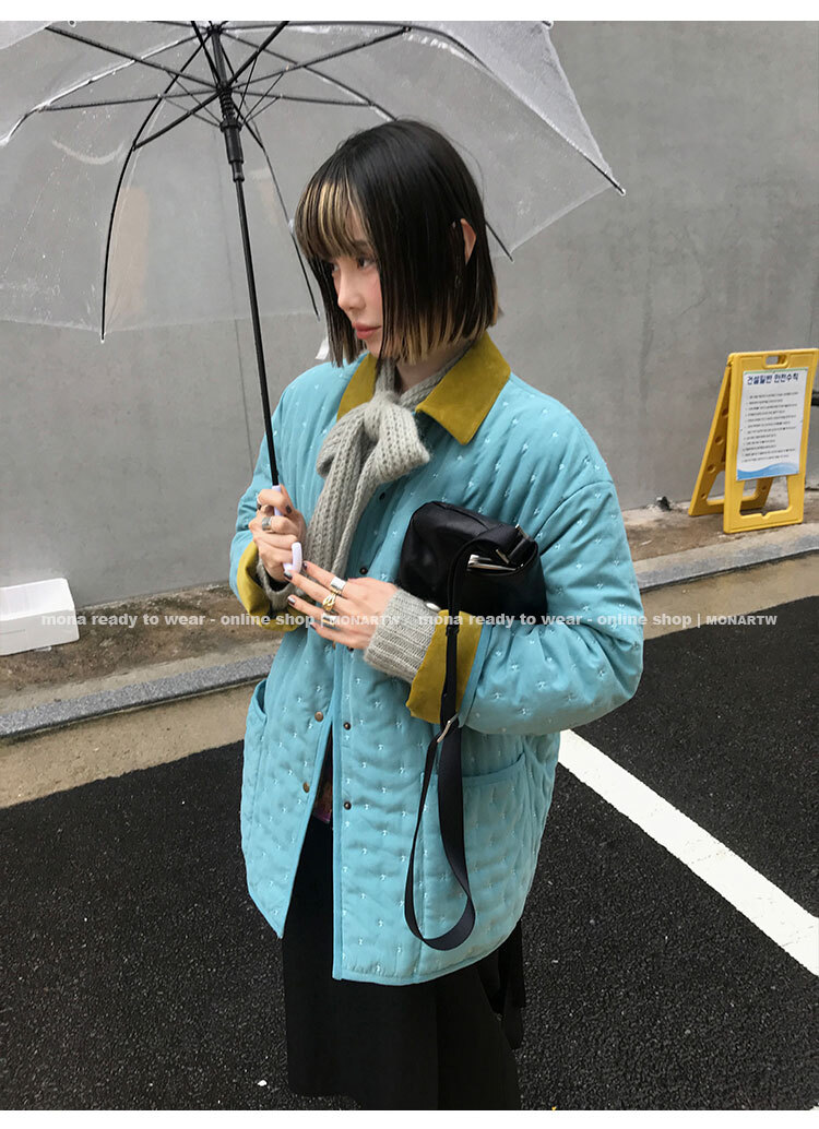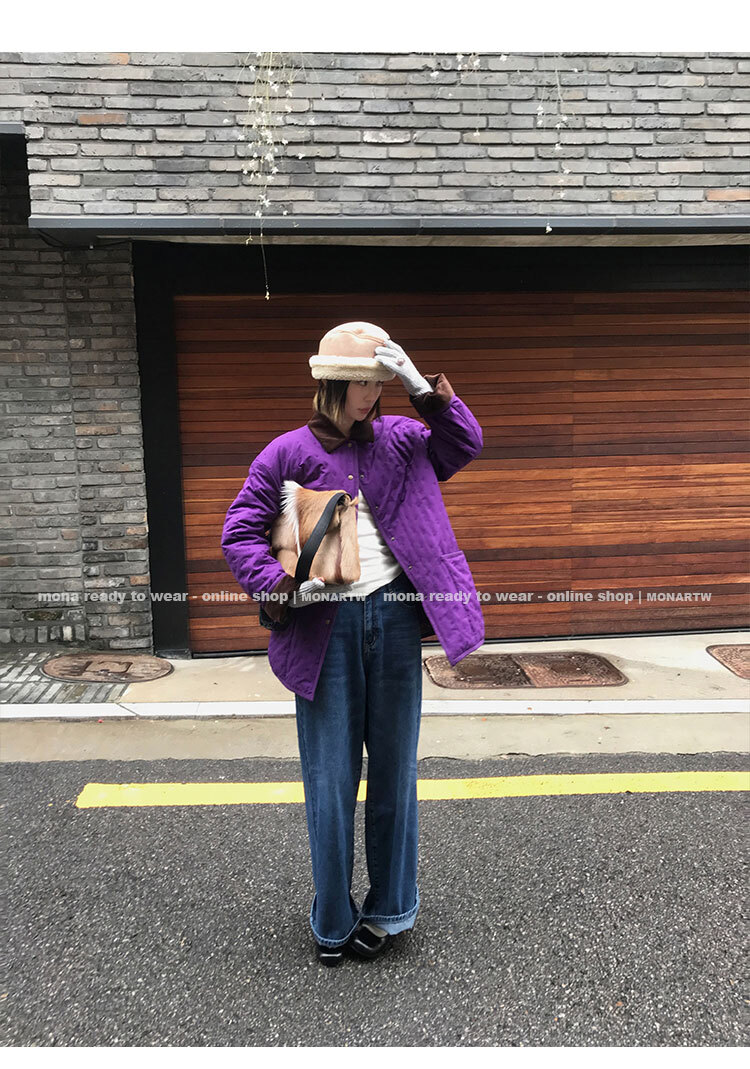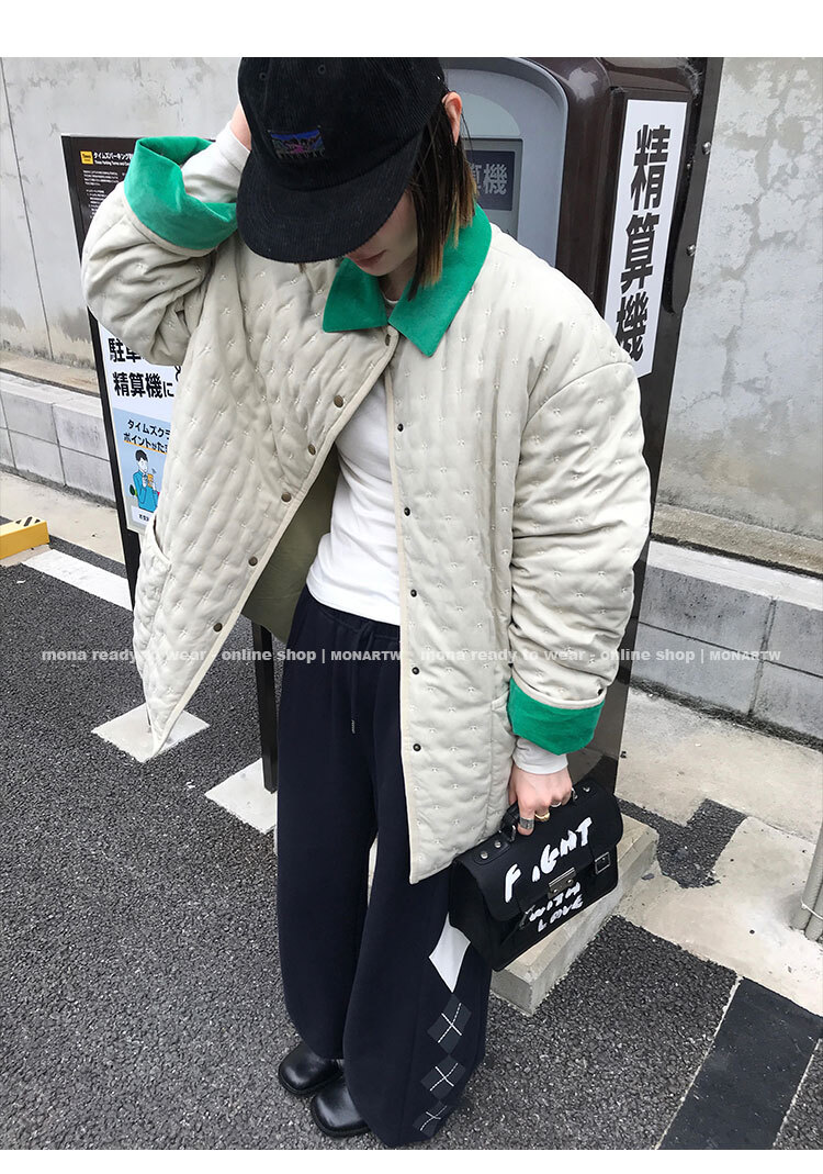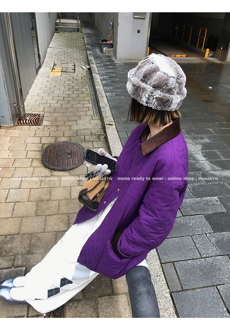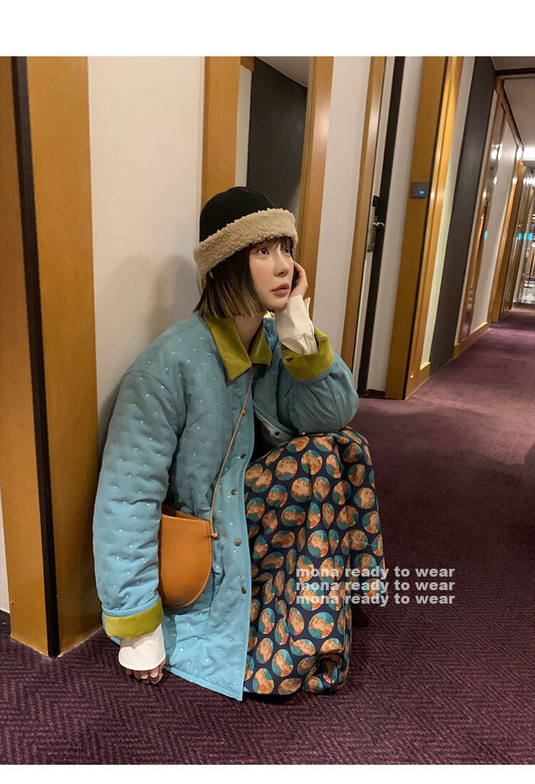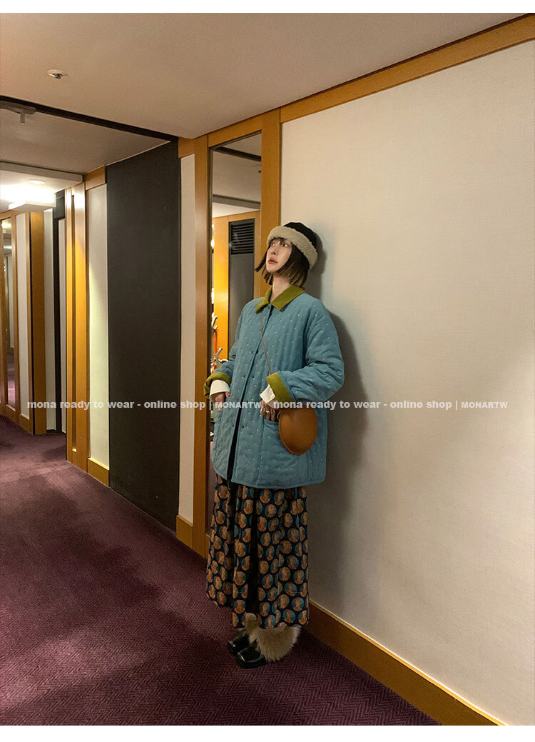 *o-ha-you*【FMN13334】復古風 翻領撞色設計百搭 棉衣棉服外套女小個子 秋冬新款-3色