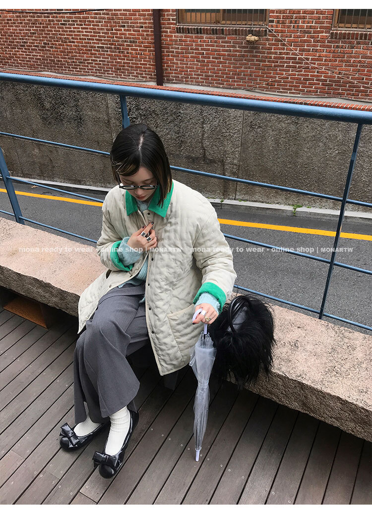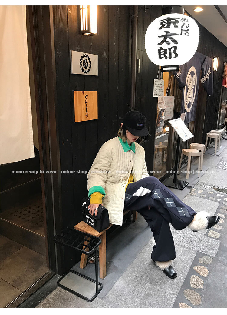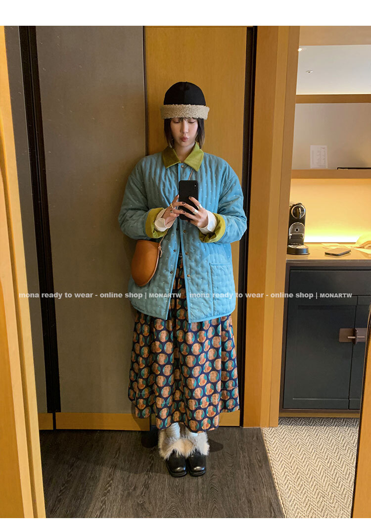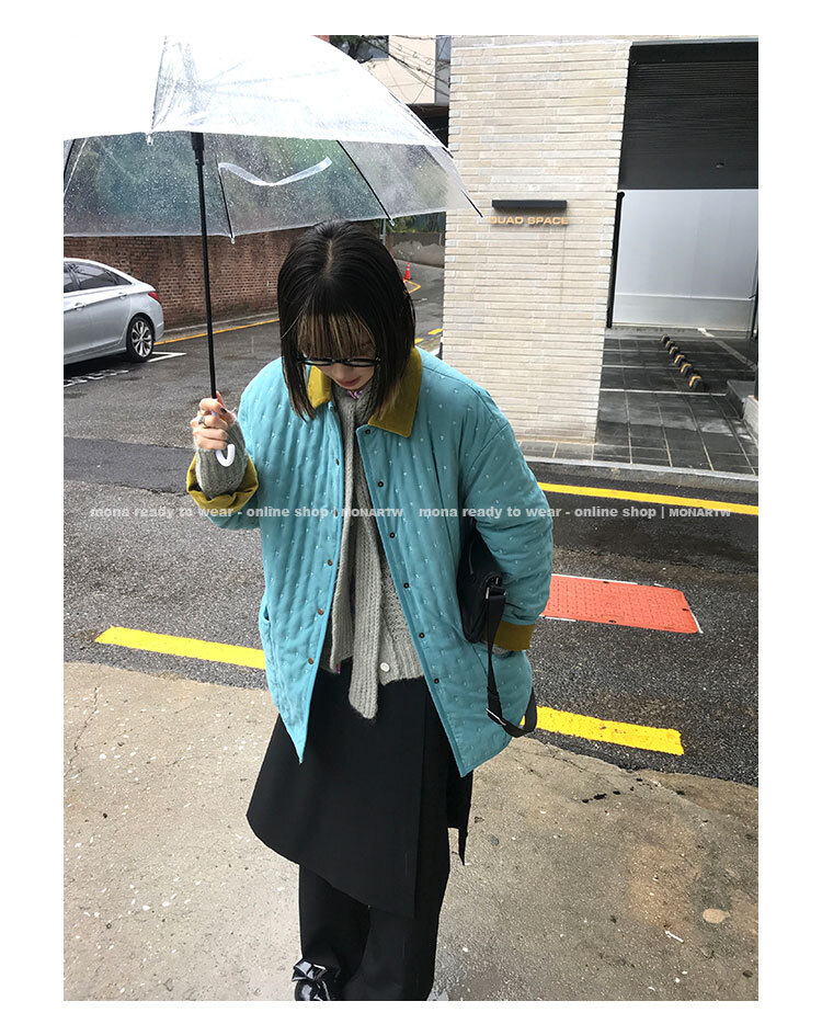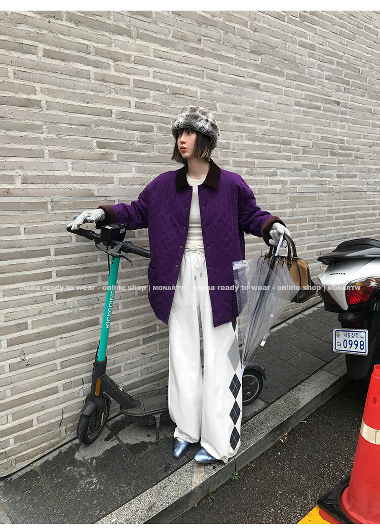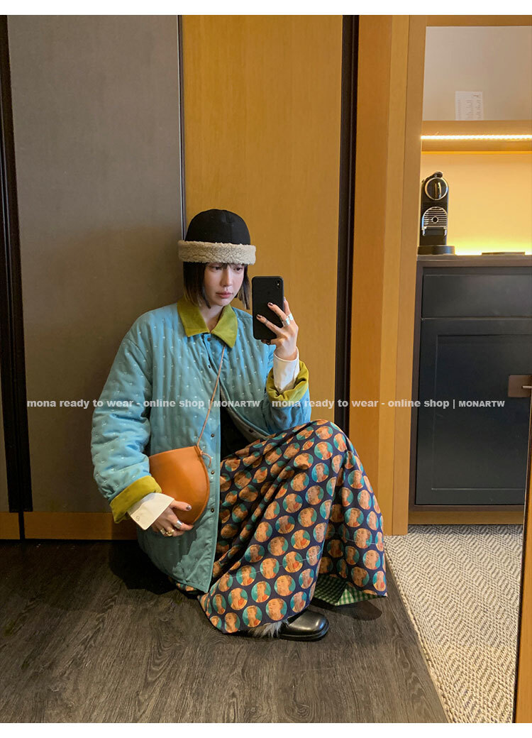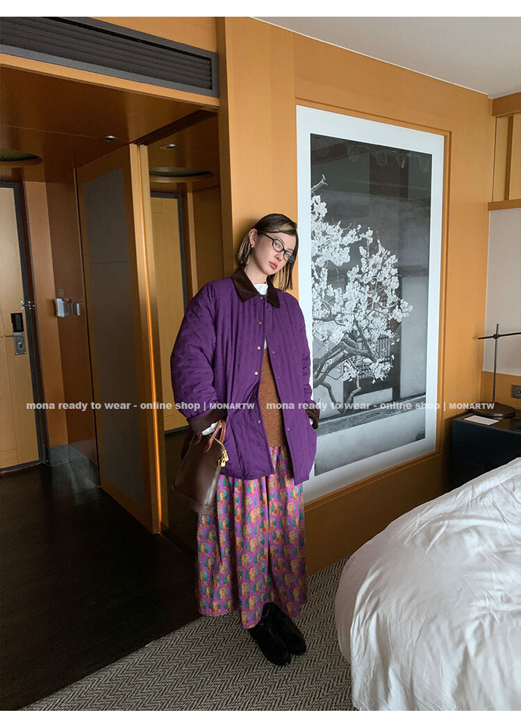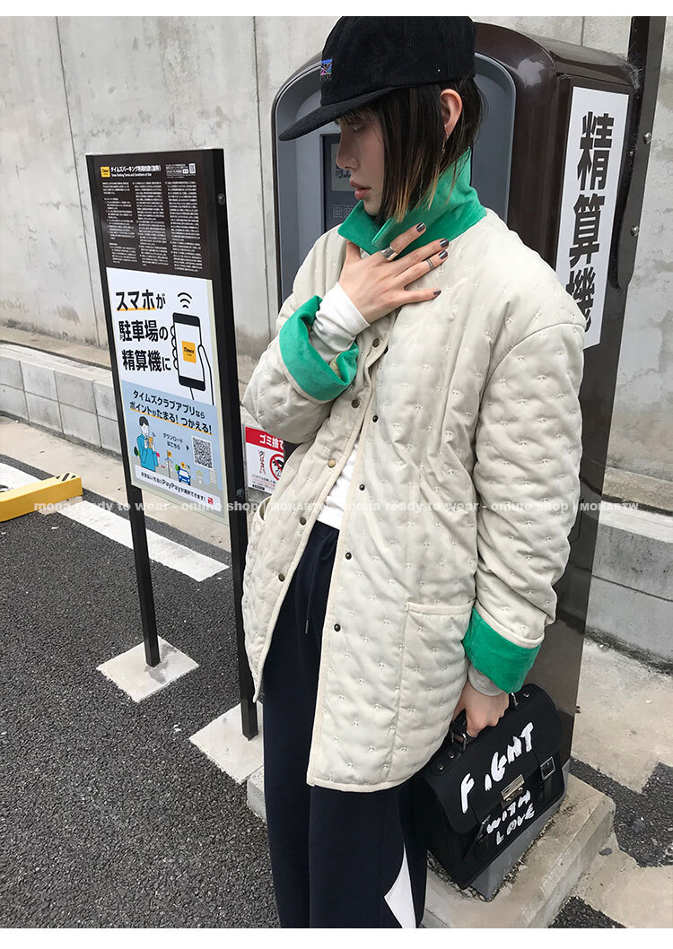 *o-ha-you*【FMN13334】復古風 翻領撞色設計百搭 棉衣棉服外套女小個子 秋冬新款-3色