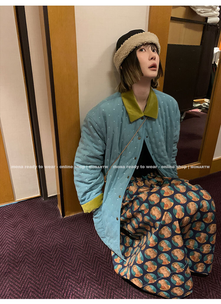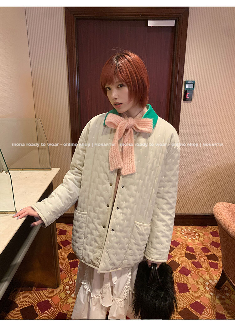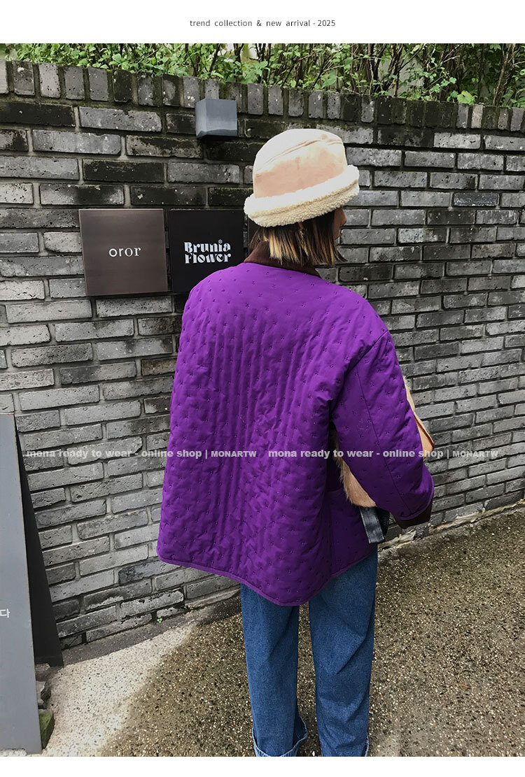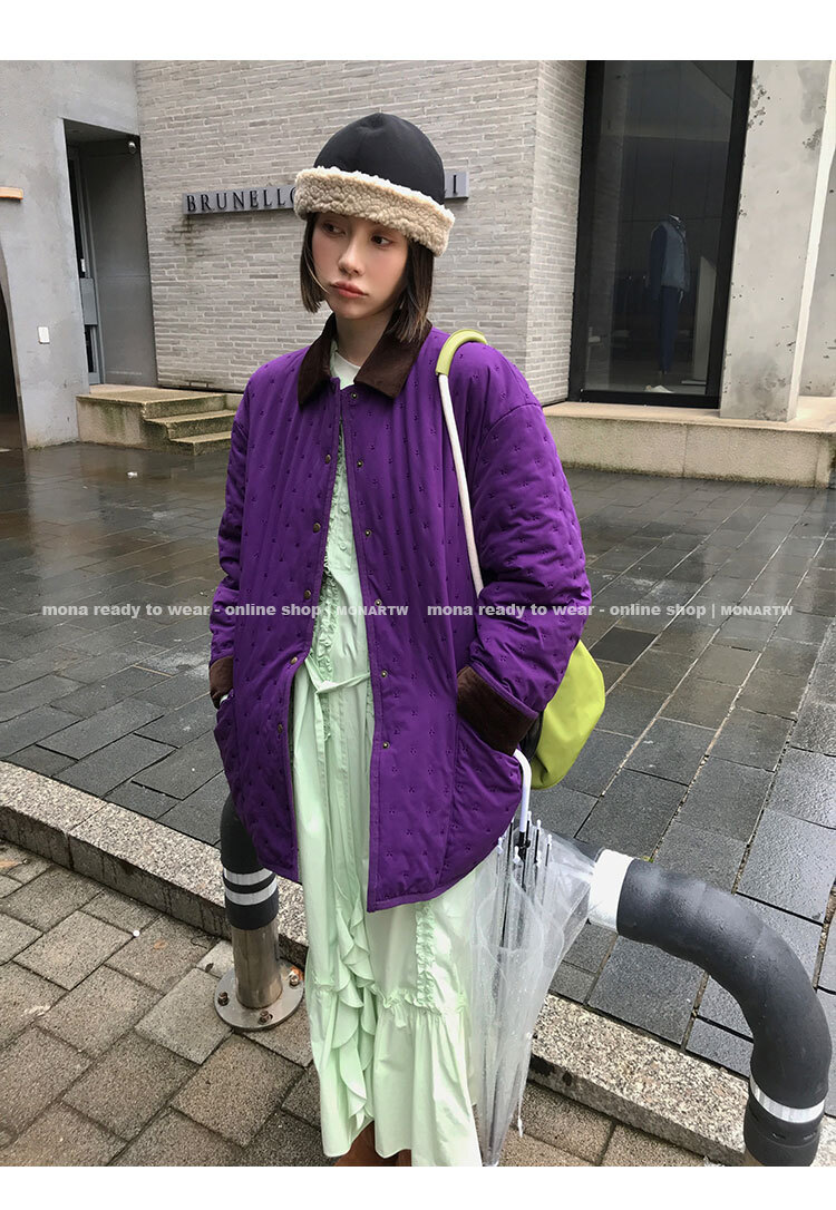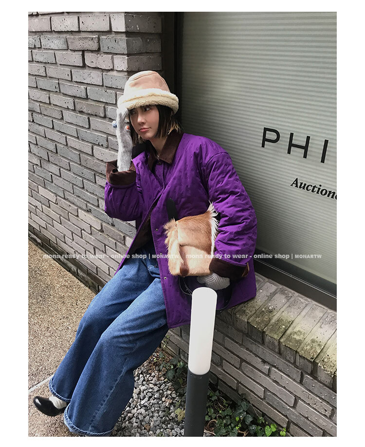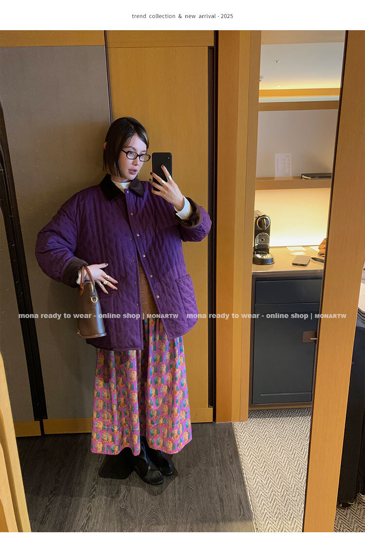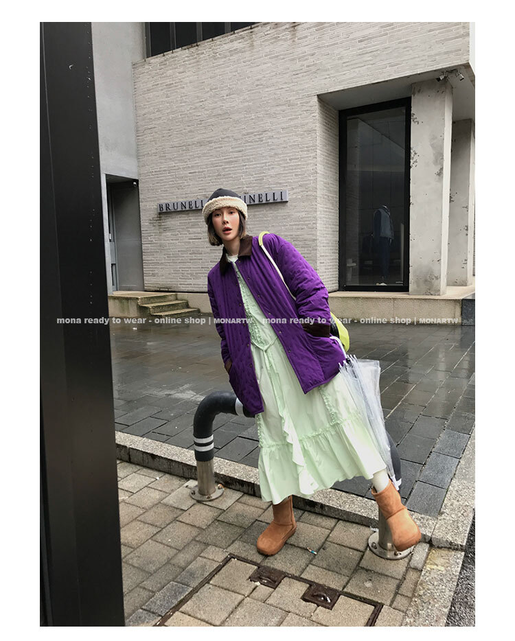 *o-ha-you*【FMN13334】復古風 翻領撞色設計百搭 棉衣棉服外套女小個子 秋冬新款-3色
