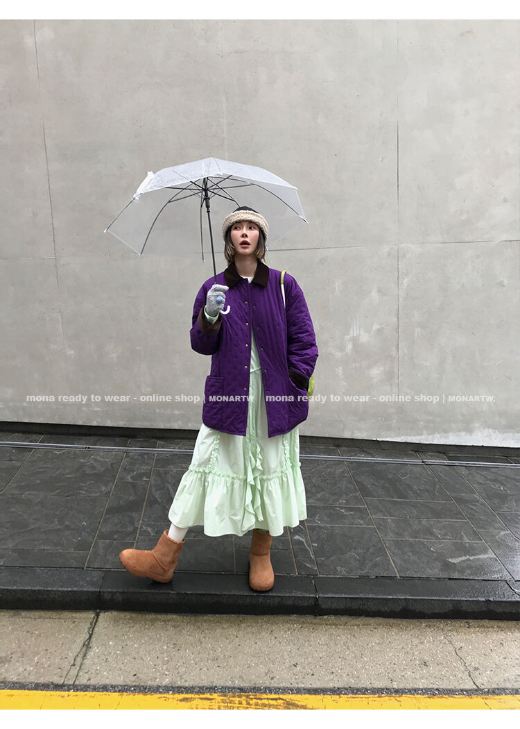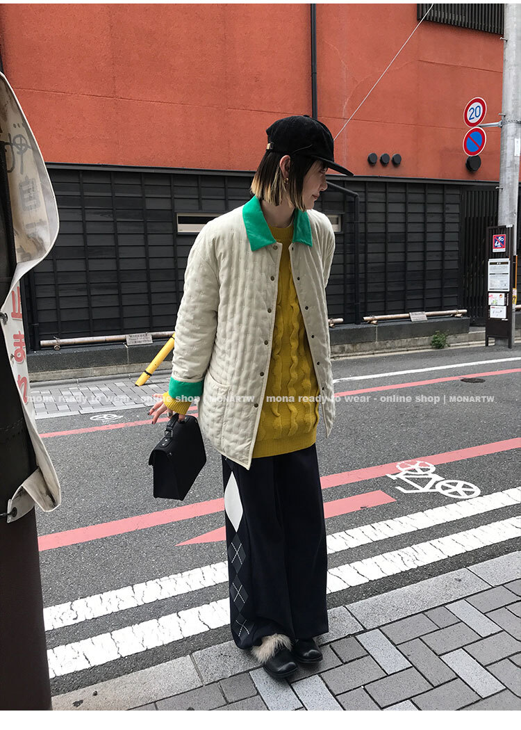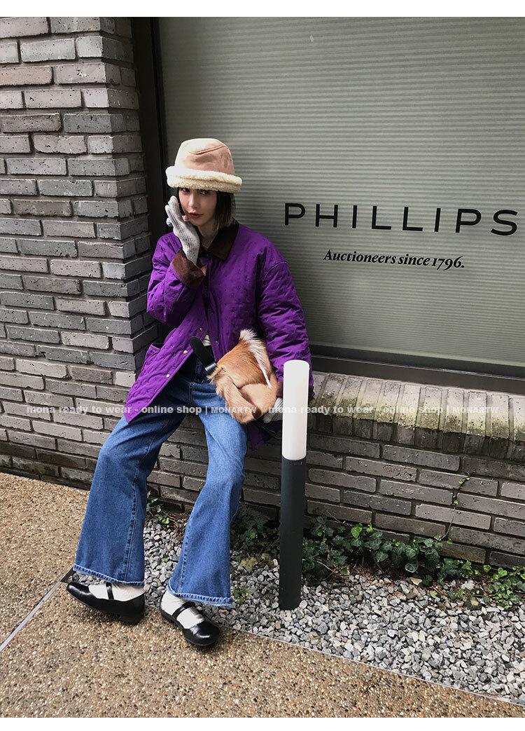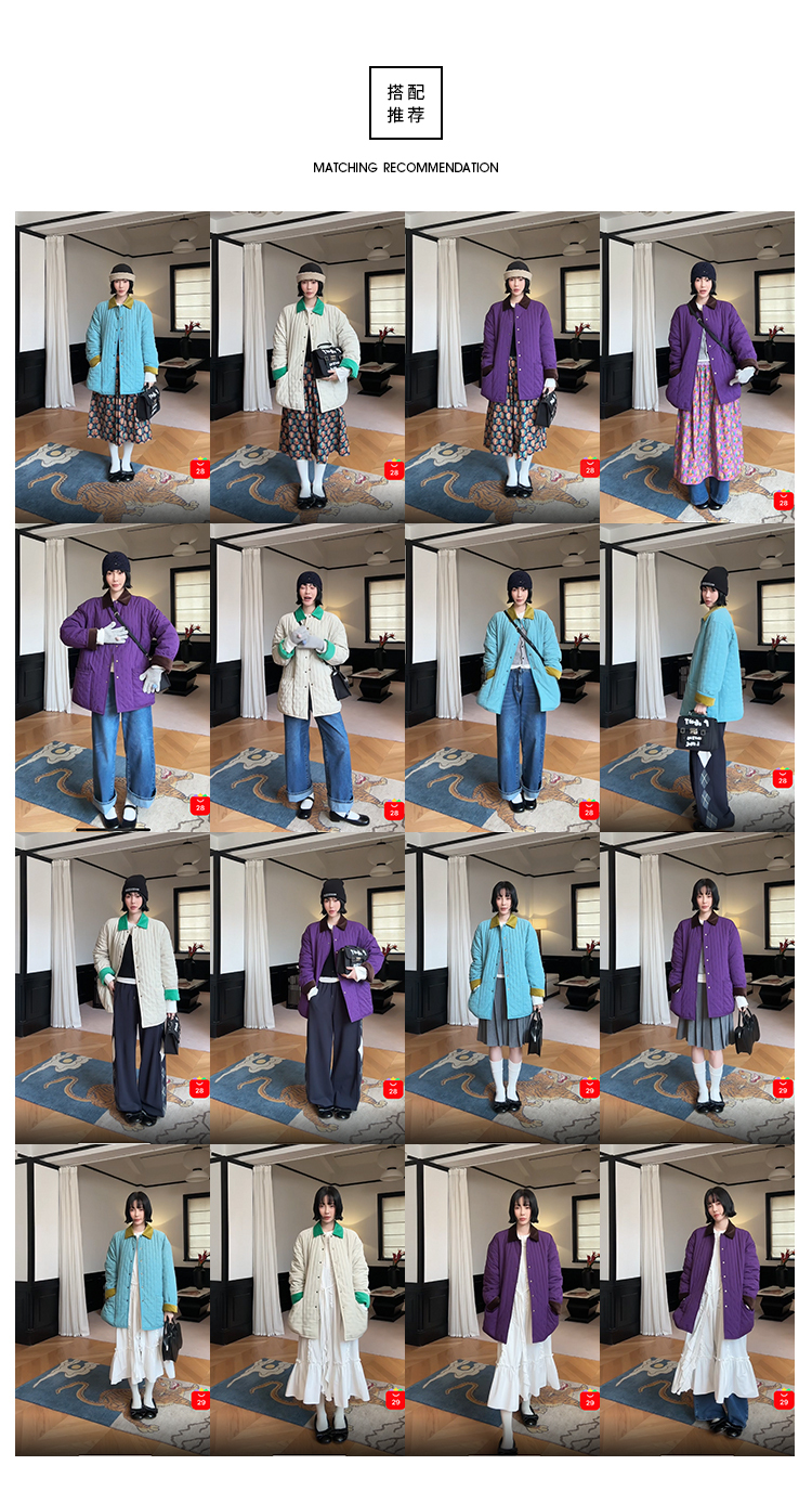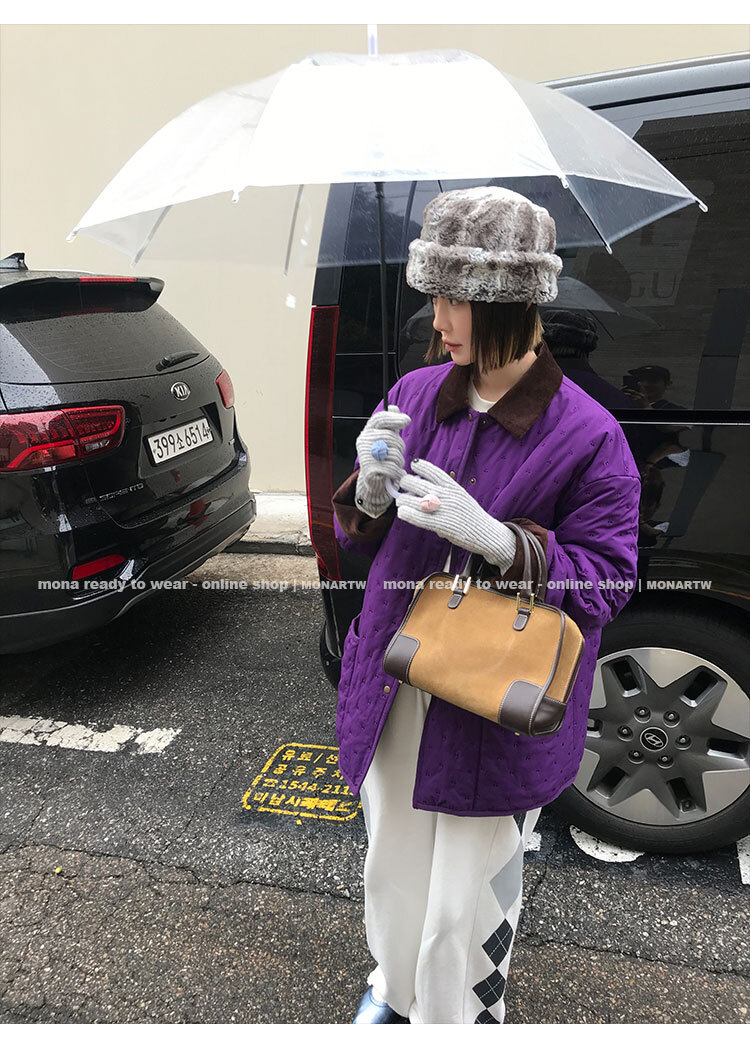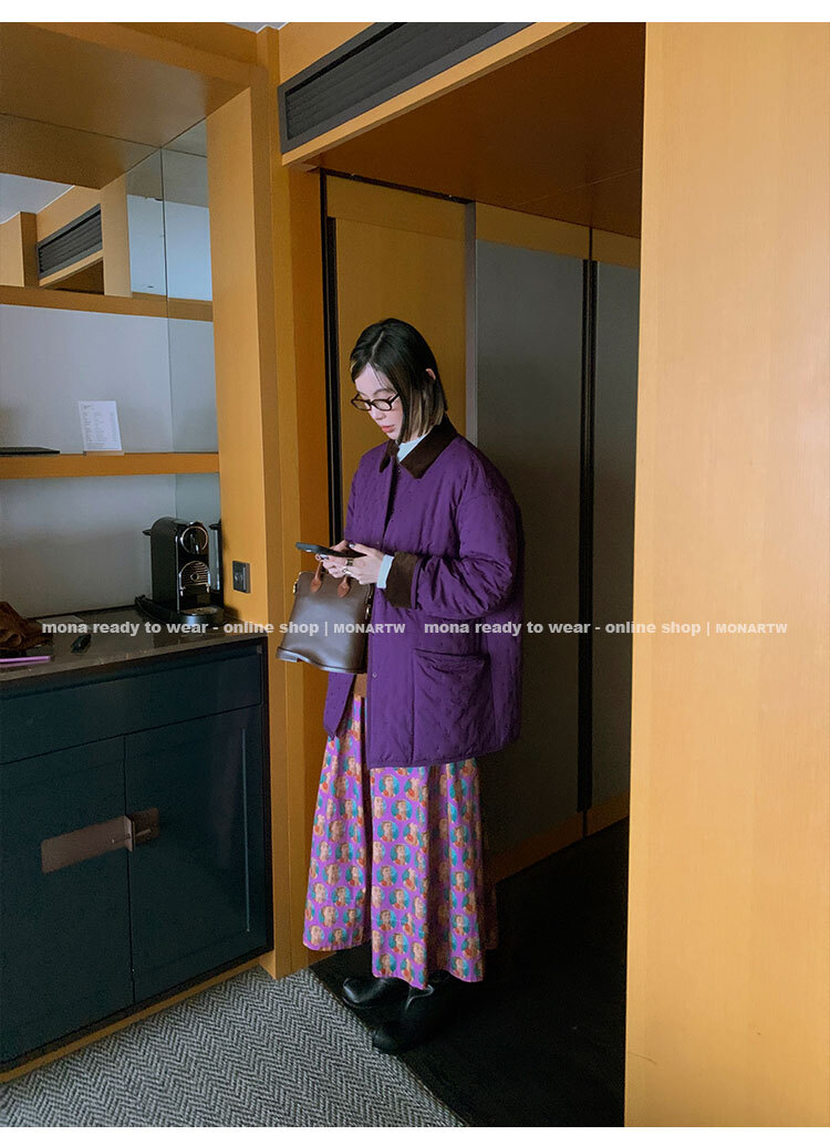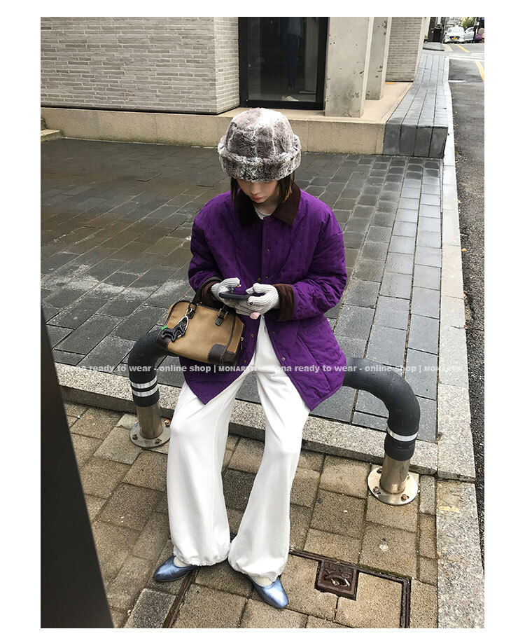 *o-ha-you*【FMN13334】復古風 翻領撞色設計百搭 棉衣棉服外套女小個子 秋冬新款-3色