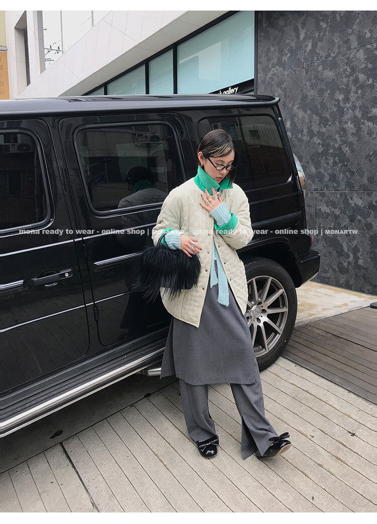 與袖口平絨的絨面質感形成呼應,強化整體造型的協調性