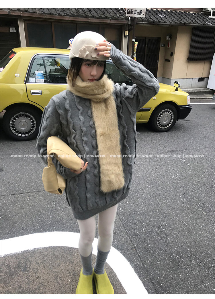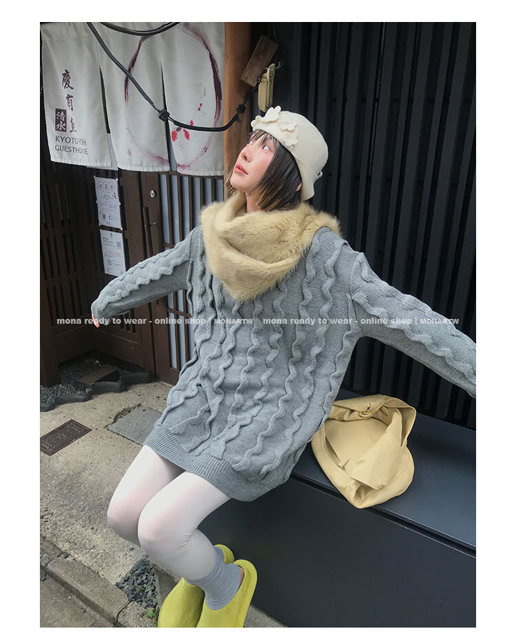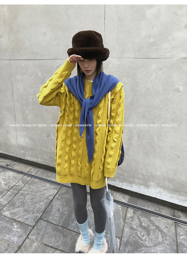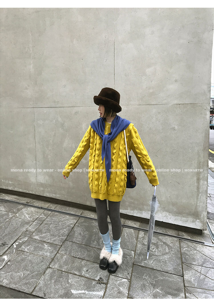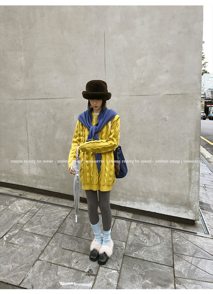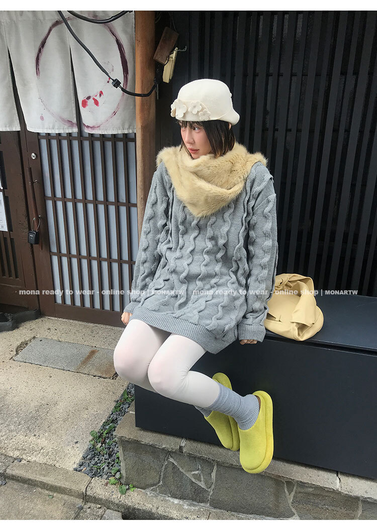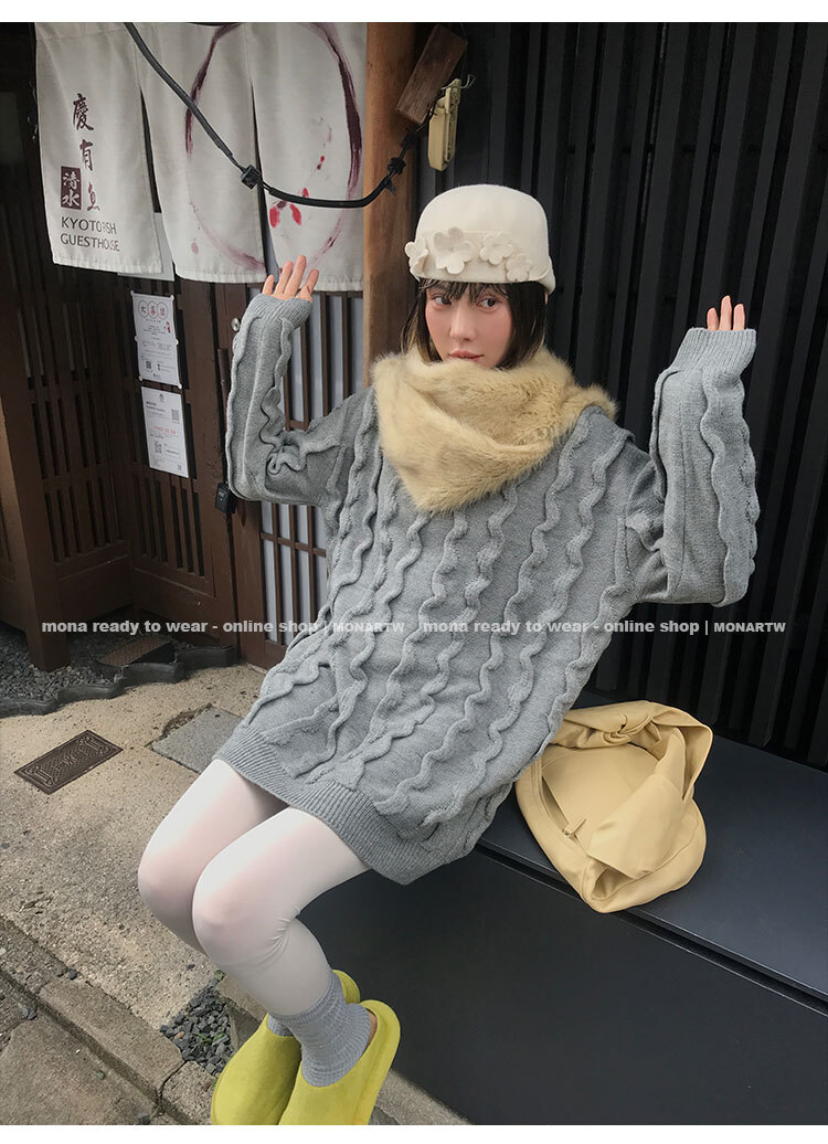 寬鬆輪廓毛衣,衣長做到膝蓋以上的位置