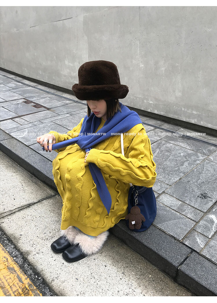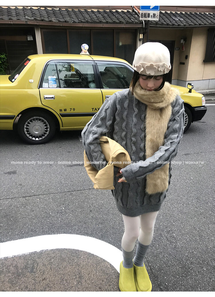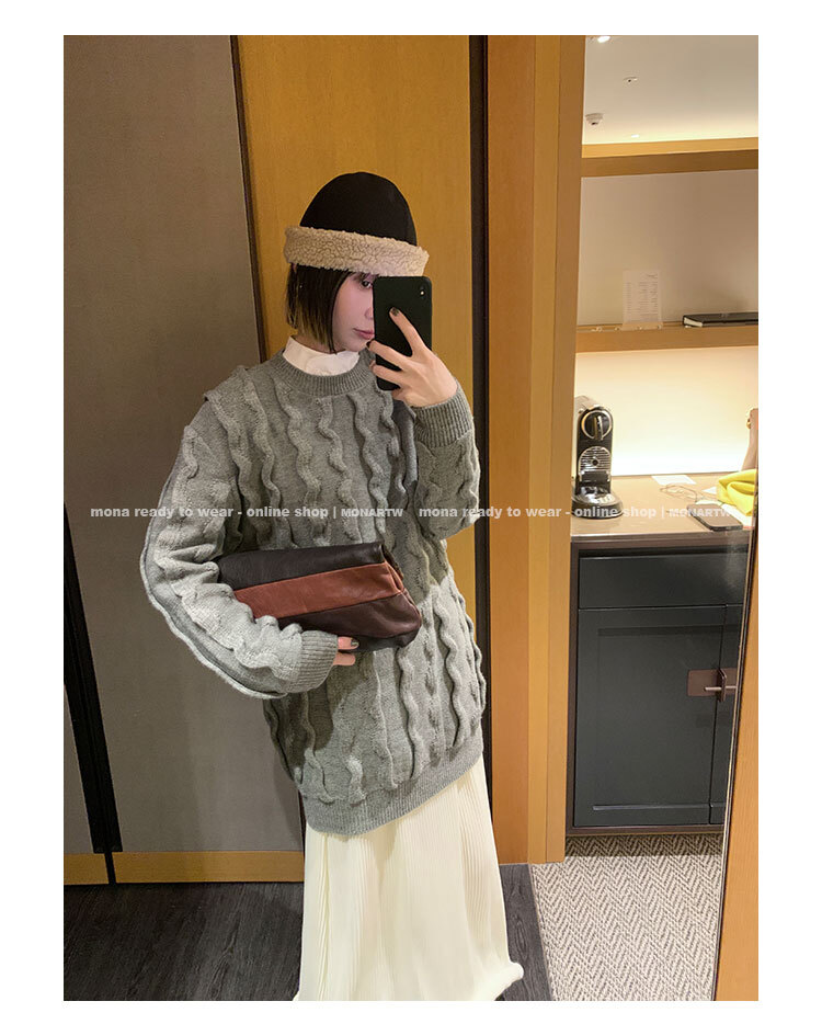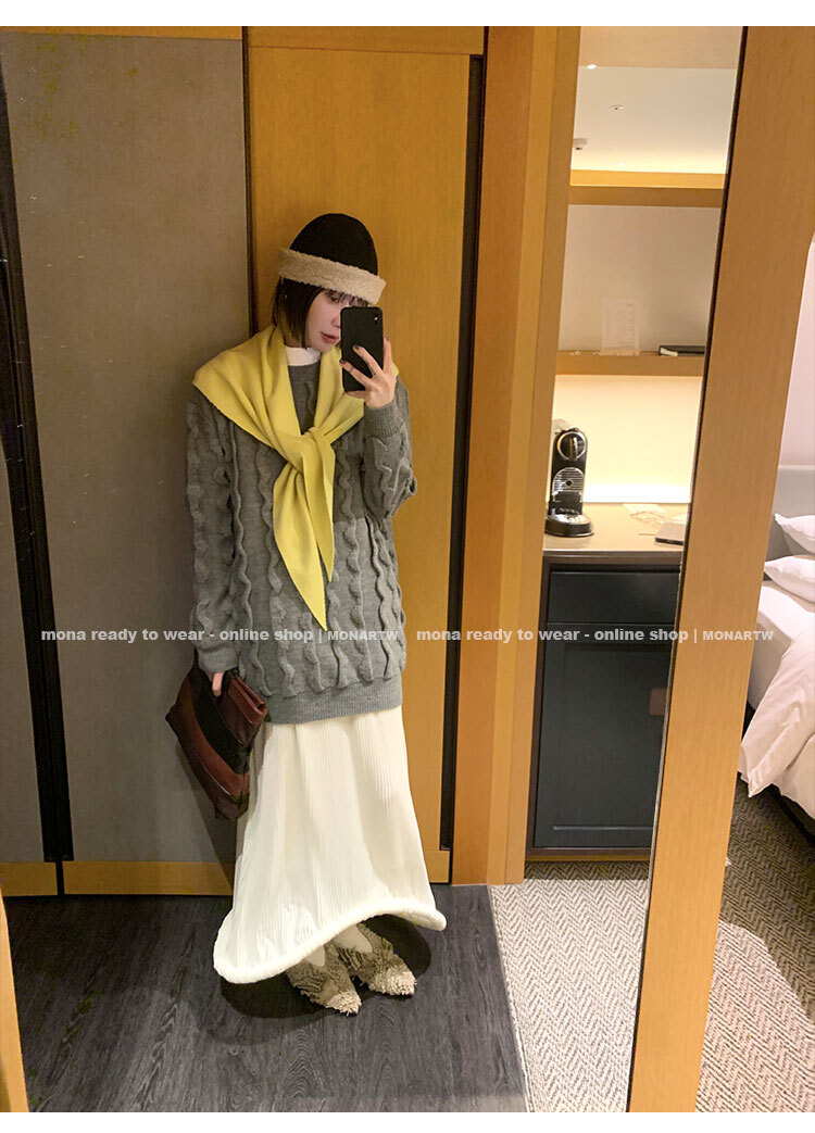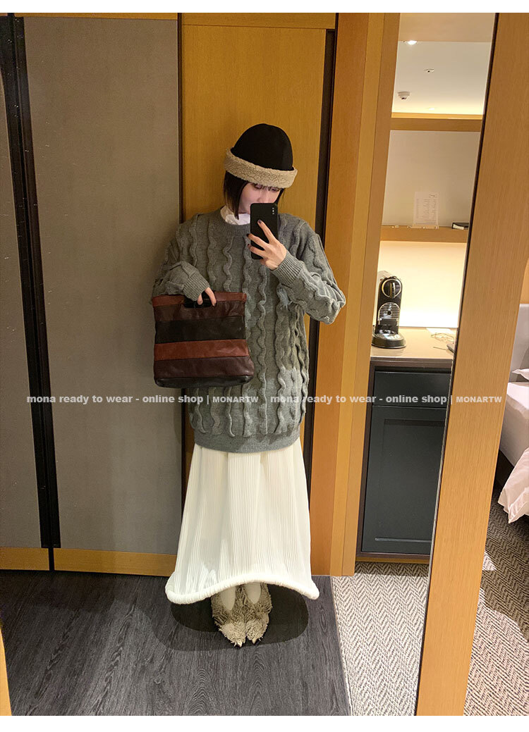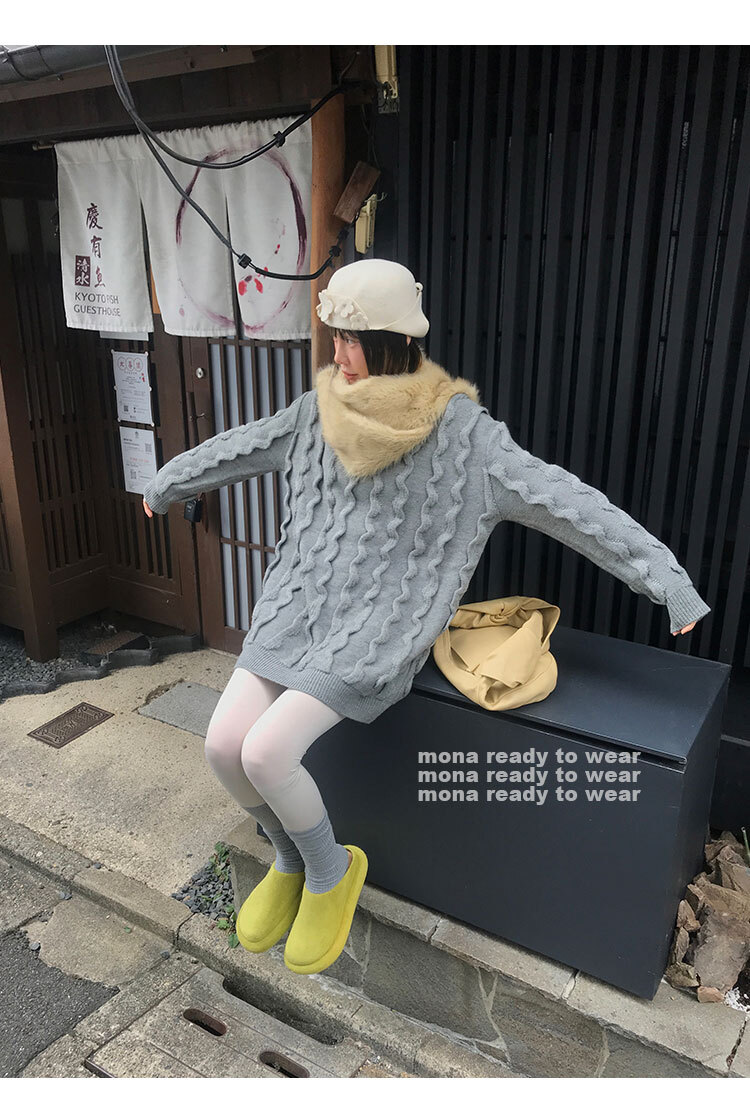寬鬆輪廓毛衣,衣長做到膝蓋以上的位置