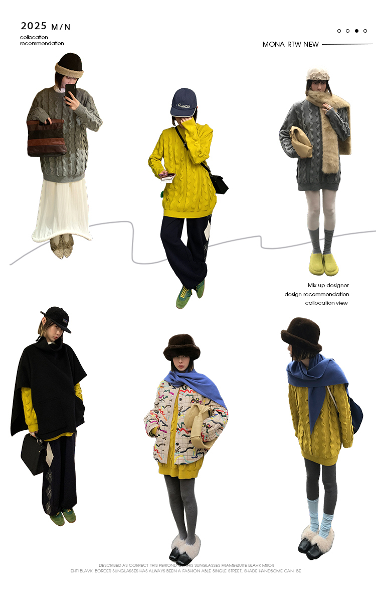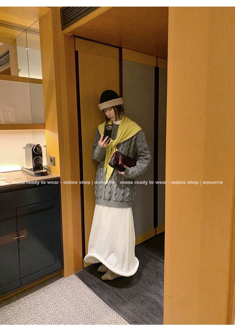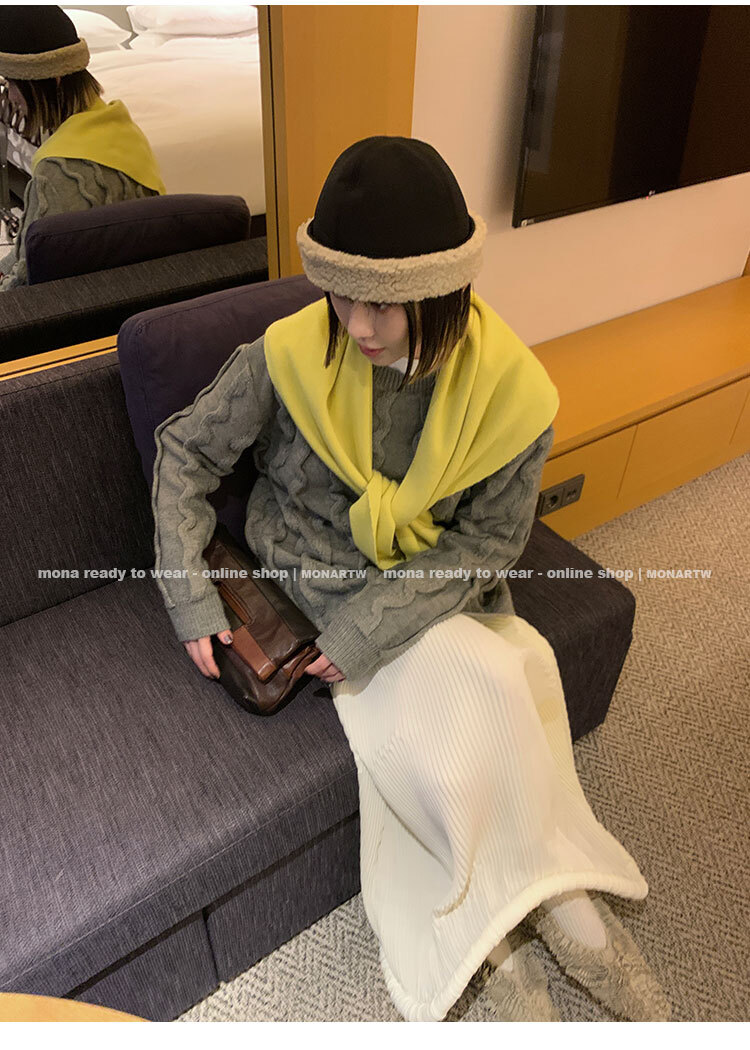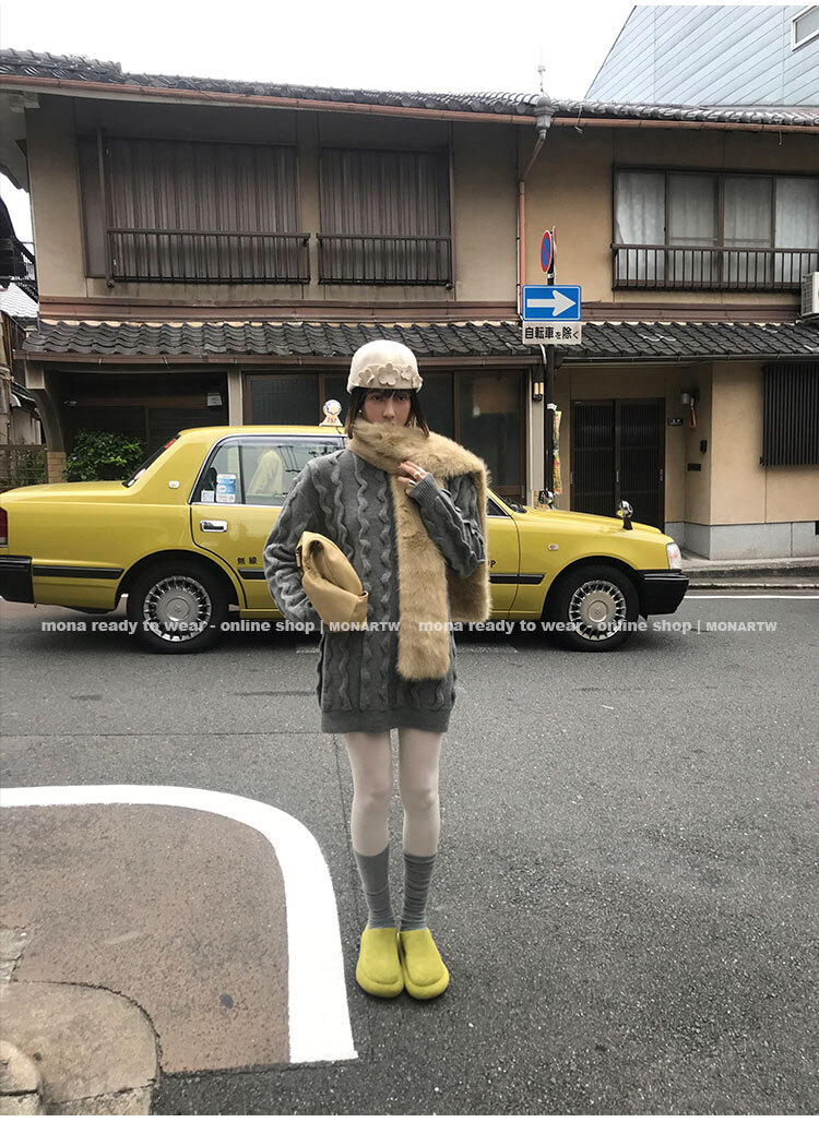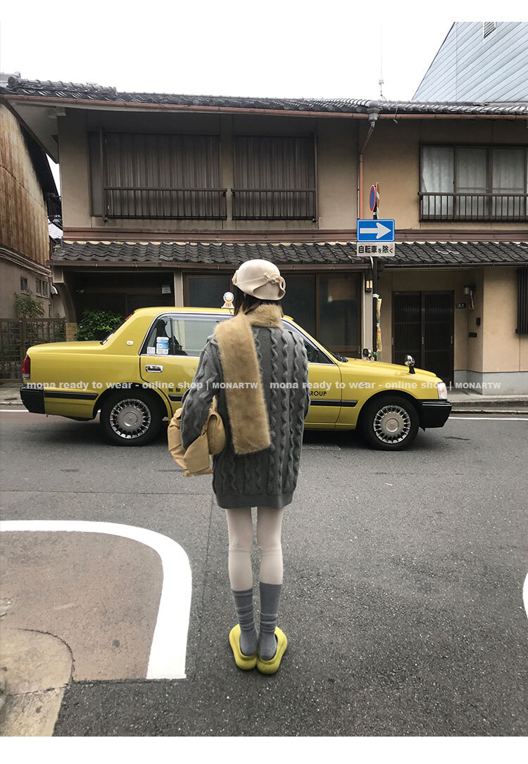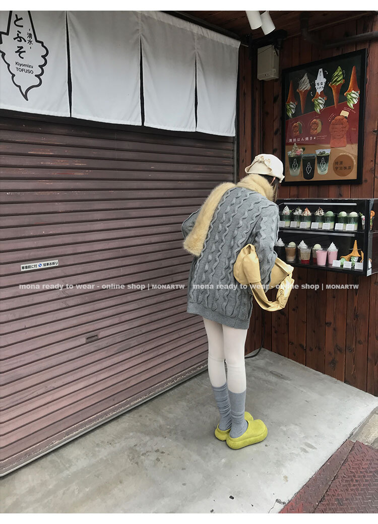 寬鬆輪廓毛衣,衣長做到膝蓋以上的位置