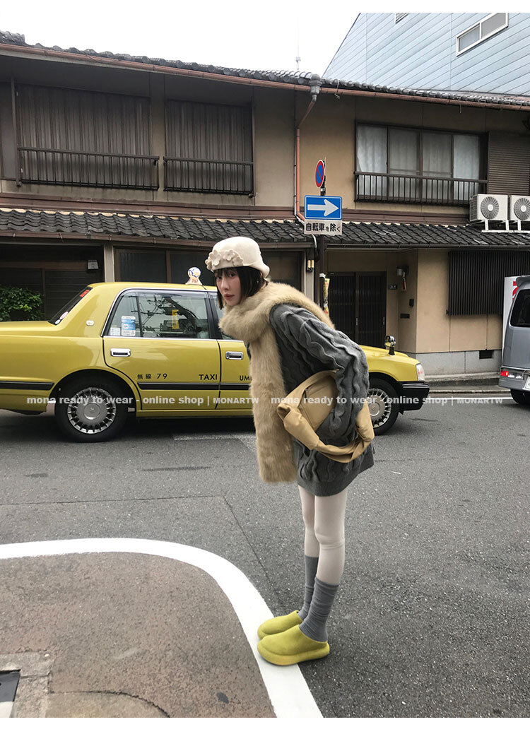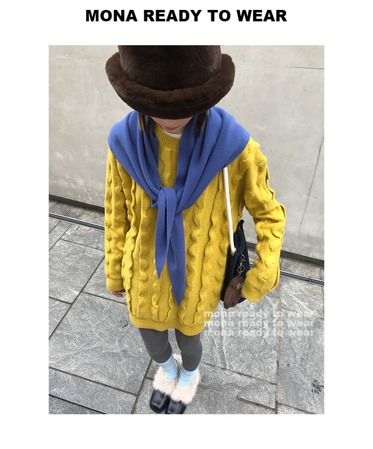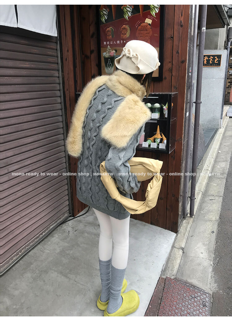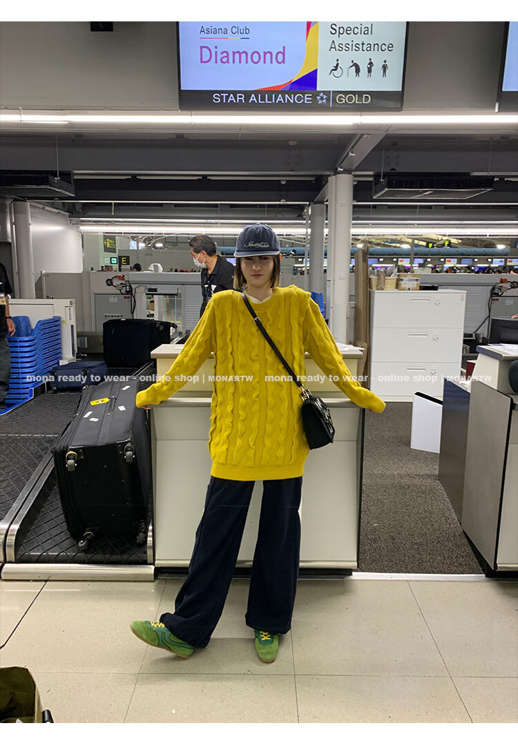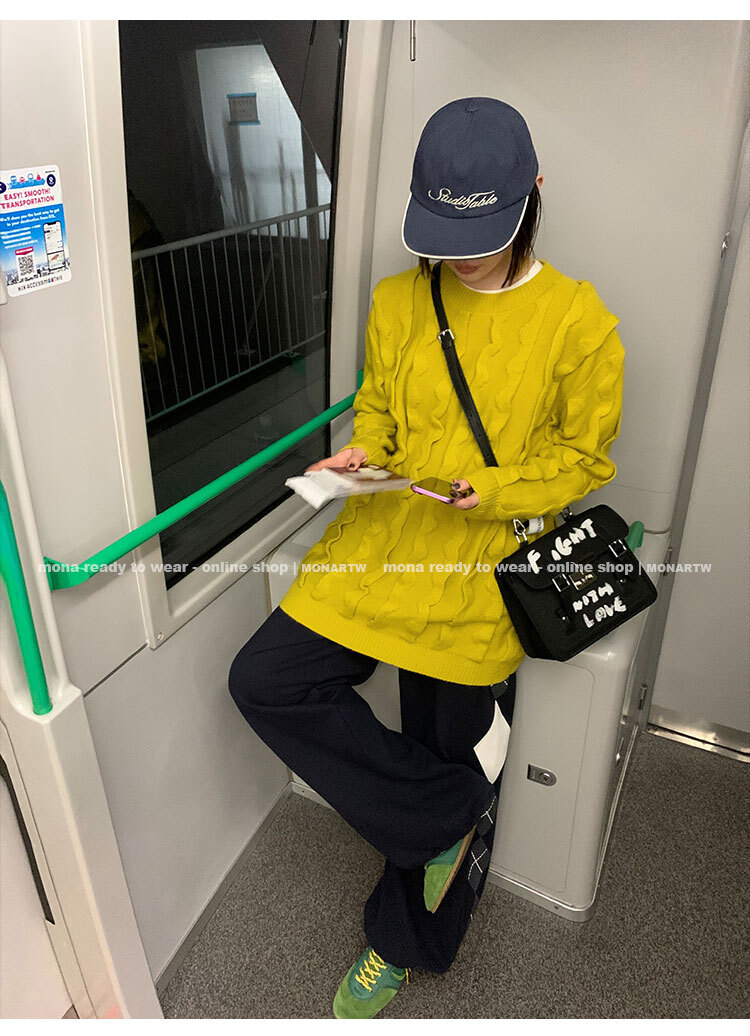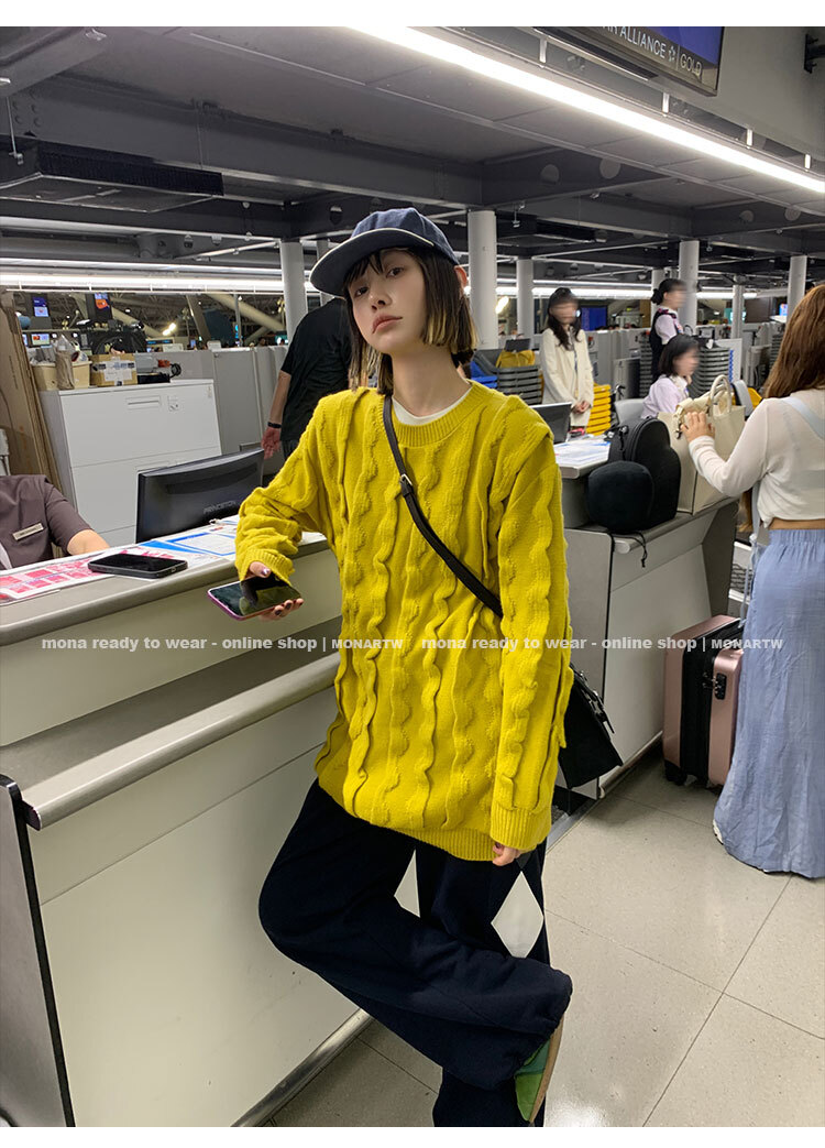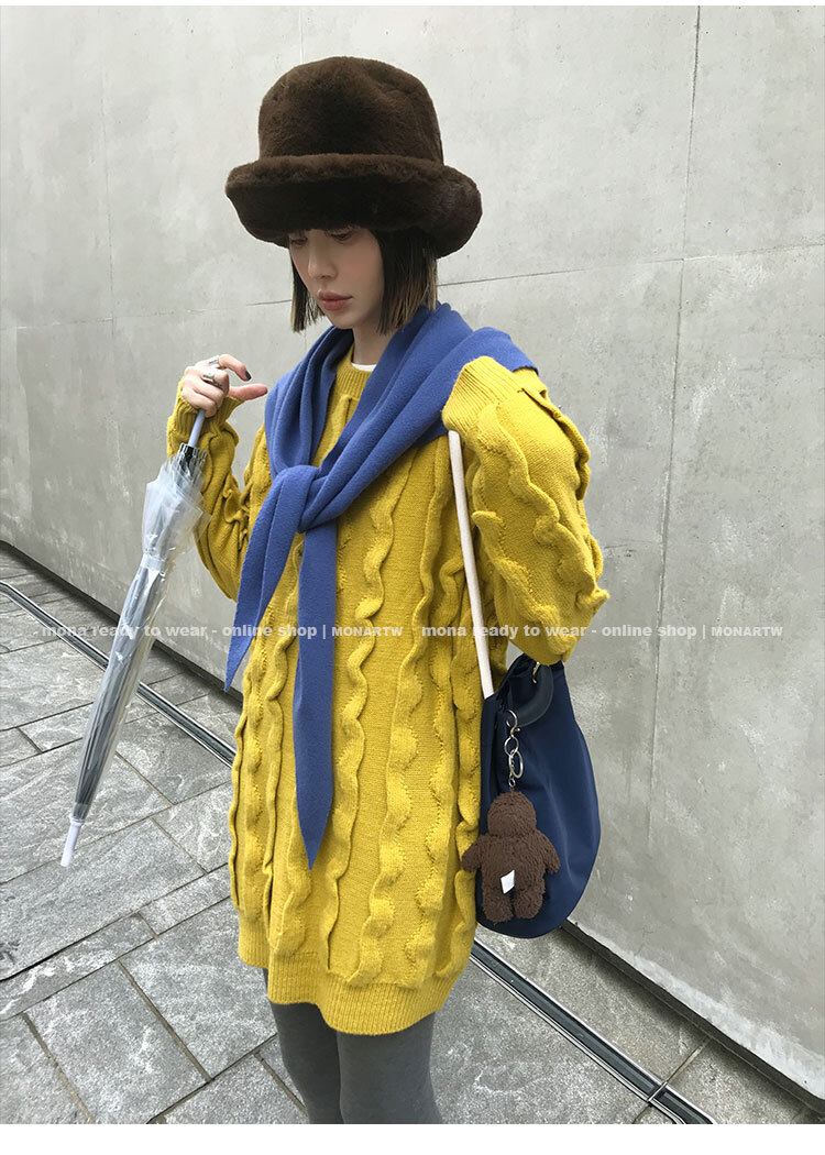 寬鬆輪廓毛衣,衣長做到膝蓋以上的位置