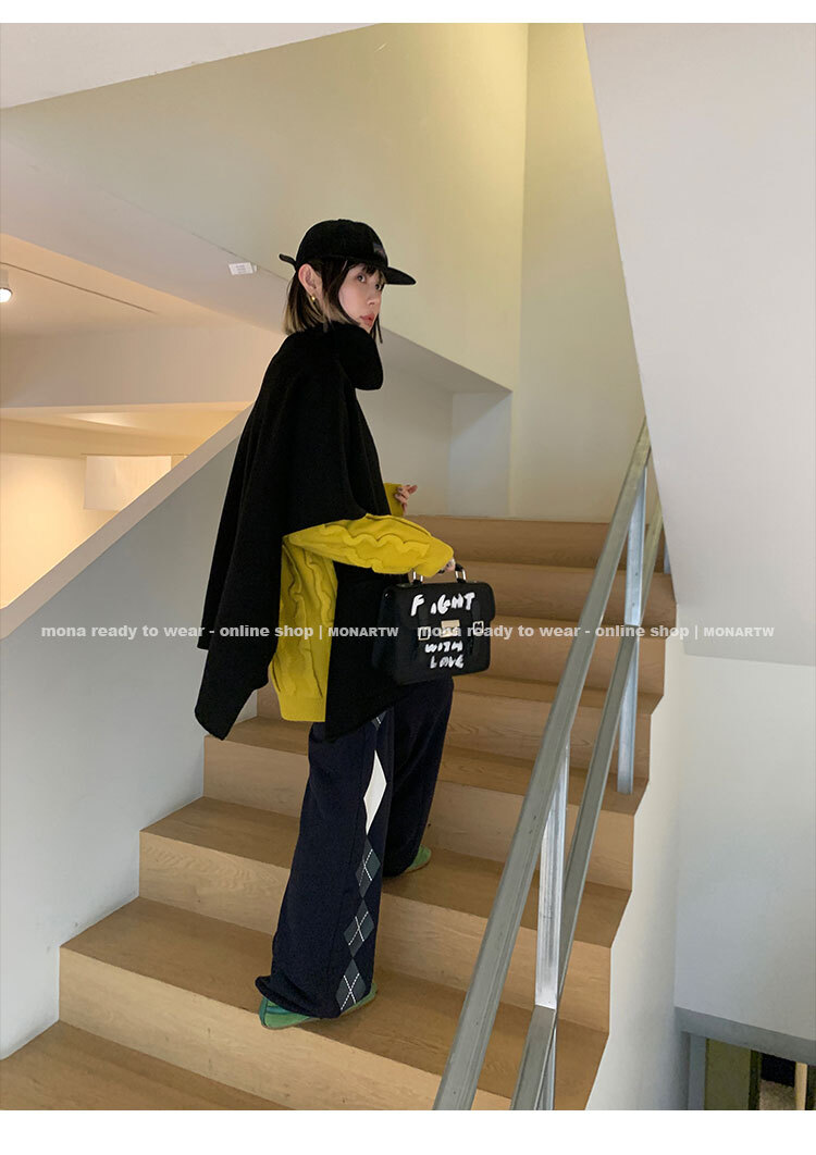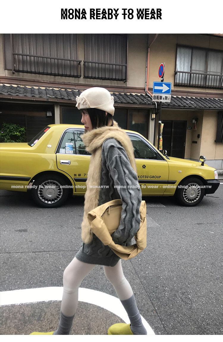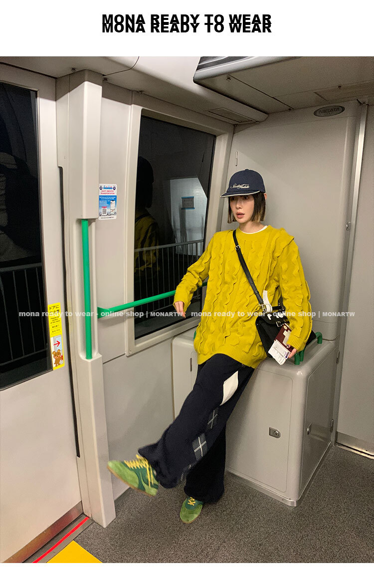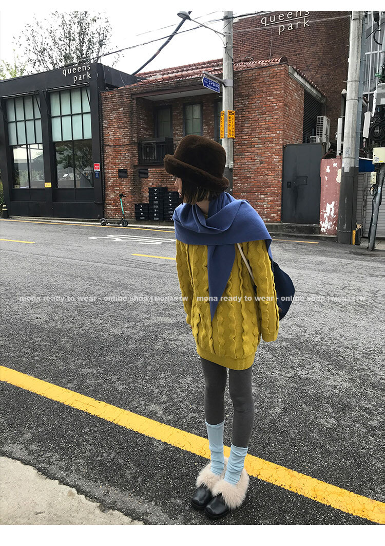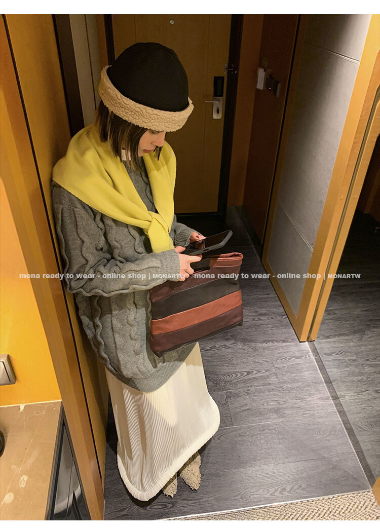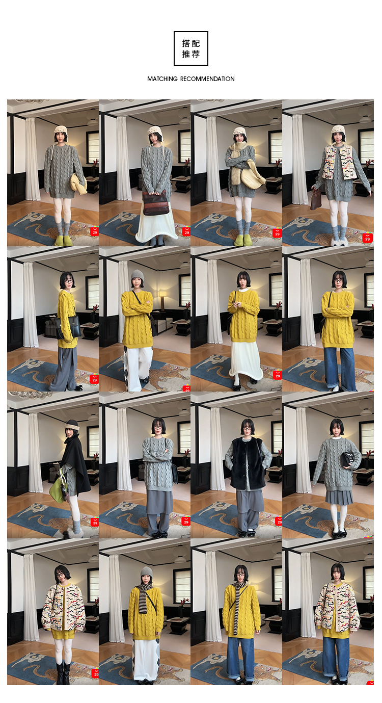 寬鬆輪廓毛衣,衣長做到膝蓋以上的位置