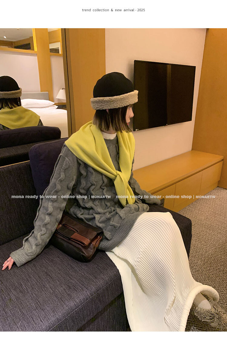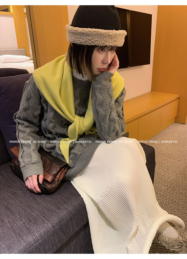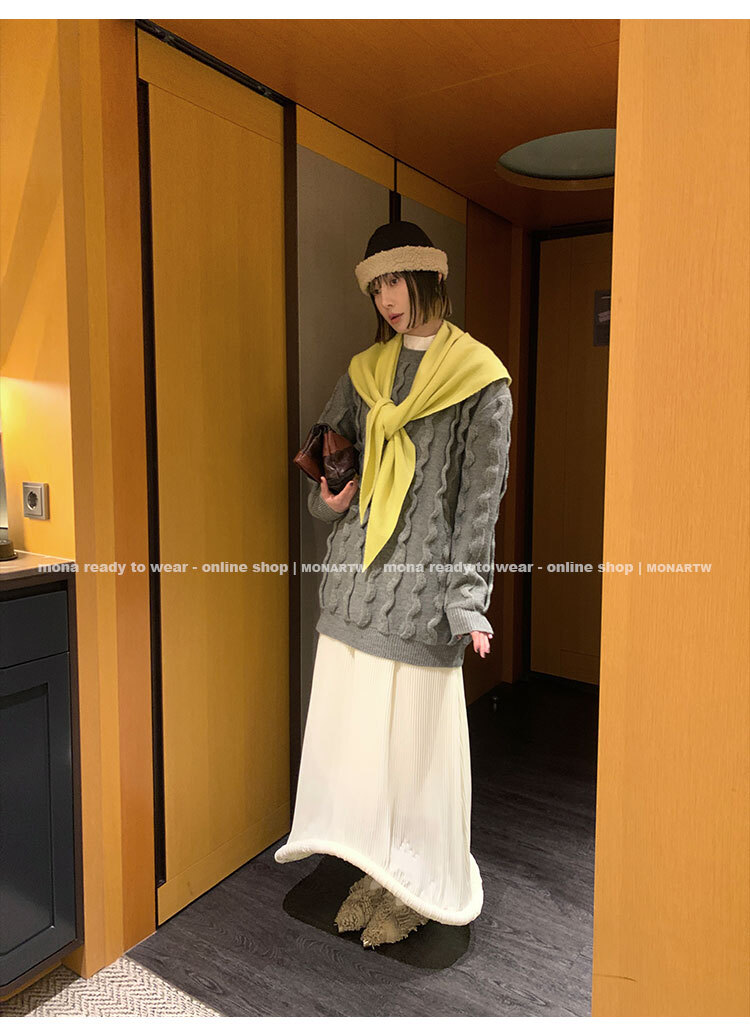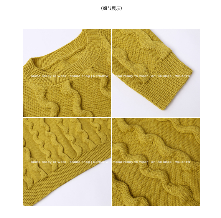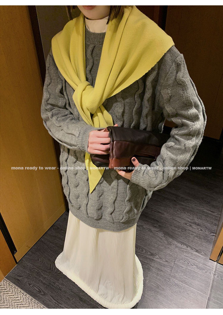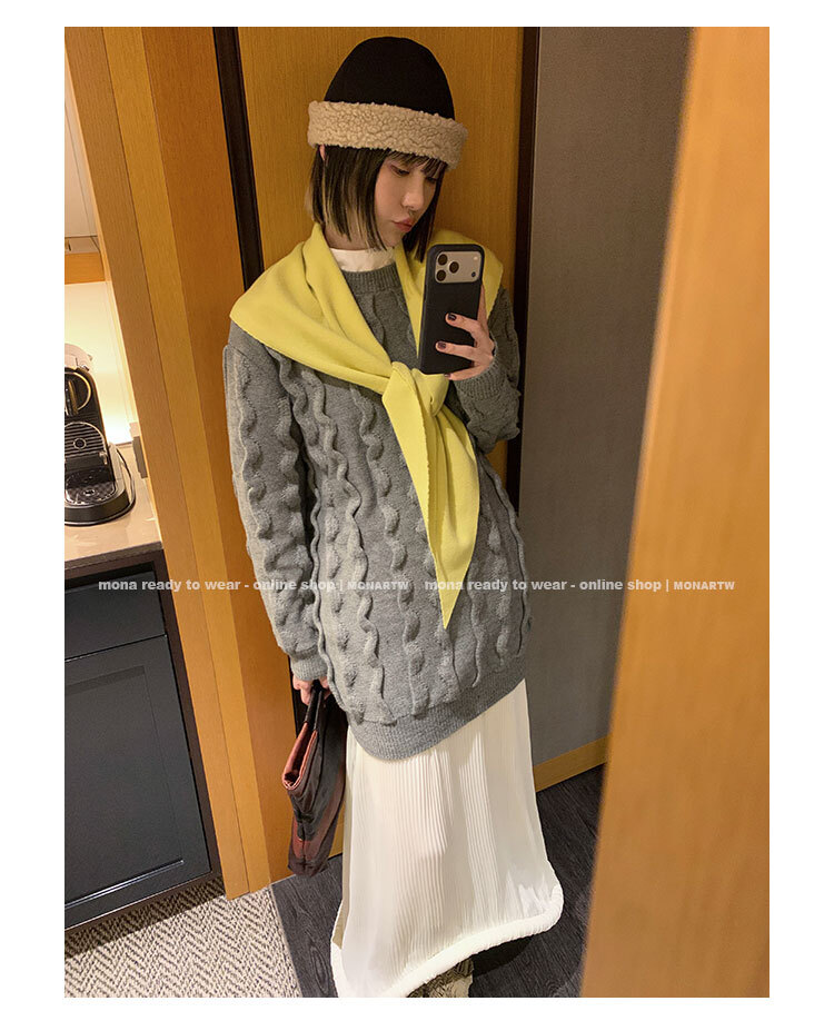 立體絞花設計,357針的細密織法搭配 3股紗交織