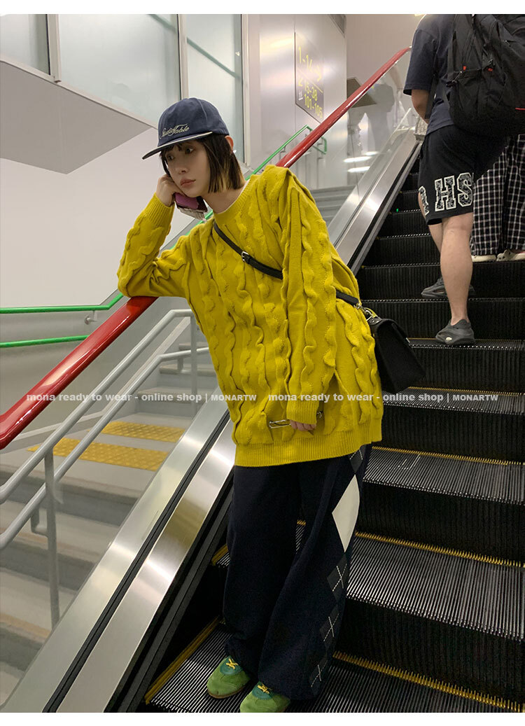 *o-ha-you*【FMN3202】15羊毛 簡約慵懶寬鬆休閒 復古打底套頭毛衣女小個子 新款-2色